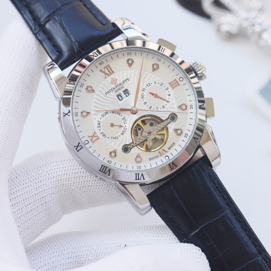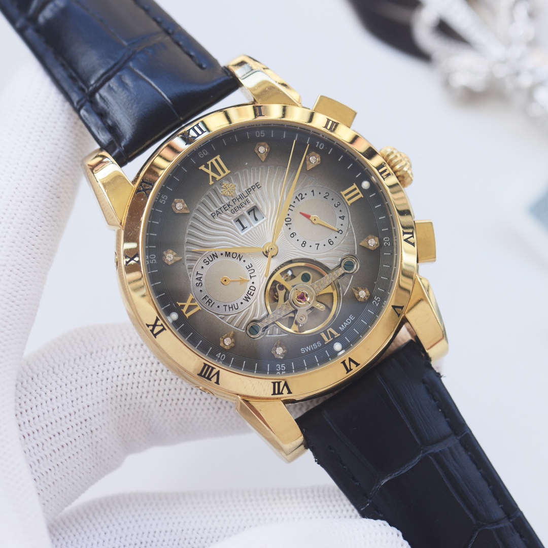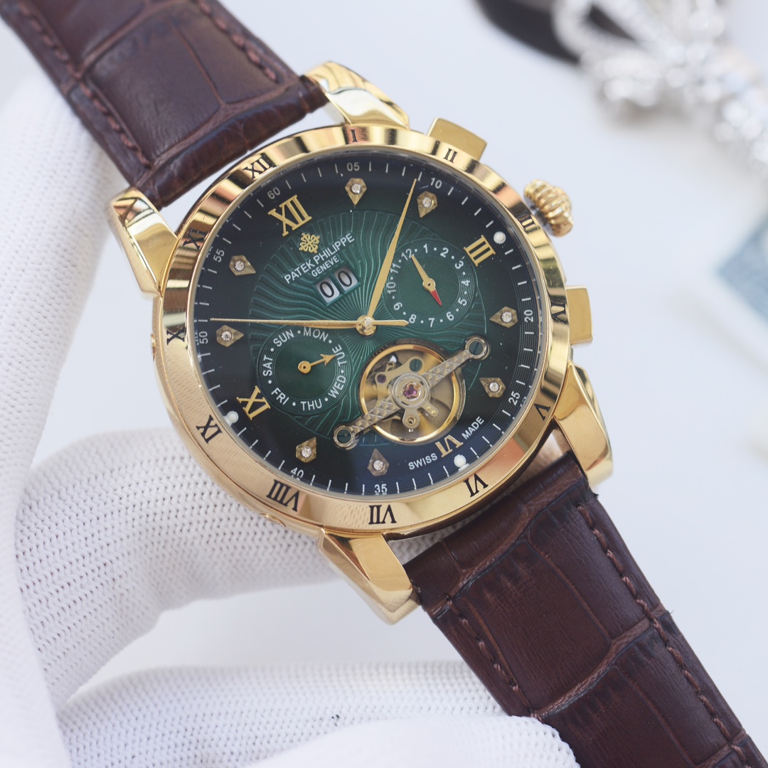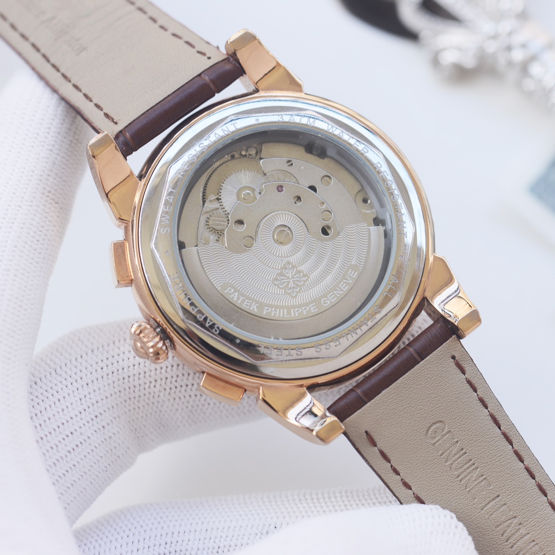 这款手表是AAAAA 1:1 质量 (非常棒). 使用了和原版一模一样的材料. 商标部分也保持了和百达翡丽/Patek Philippe一样. 图片拍摄是实物手表拍摄, 您所收到的实物保证和我们图片一模一样.