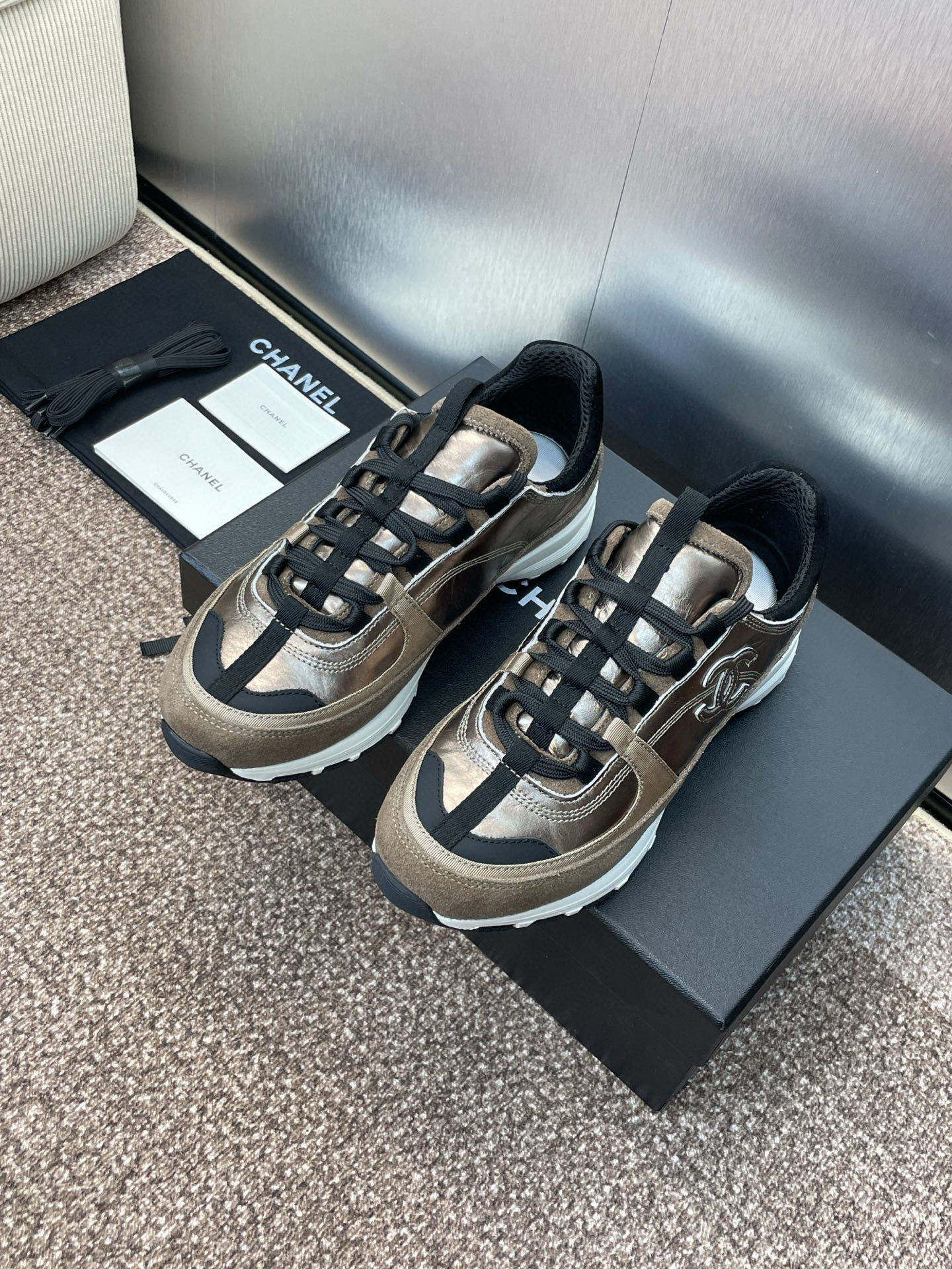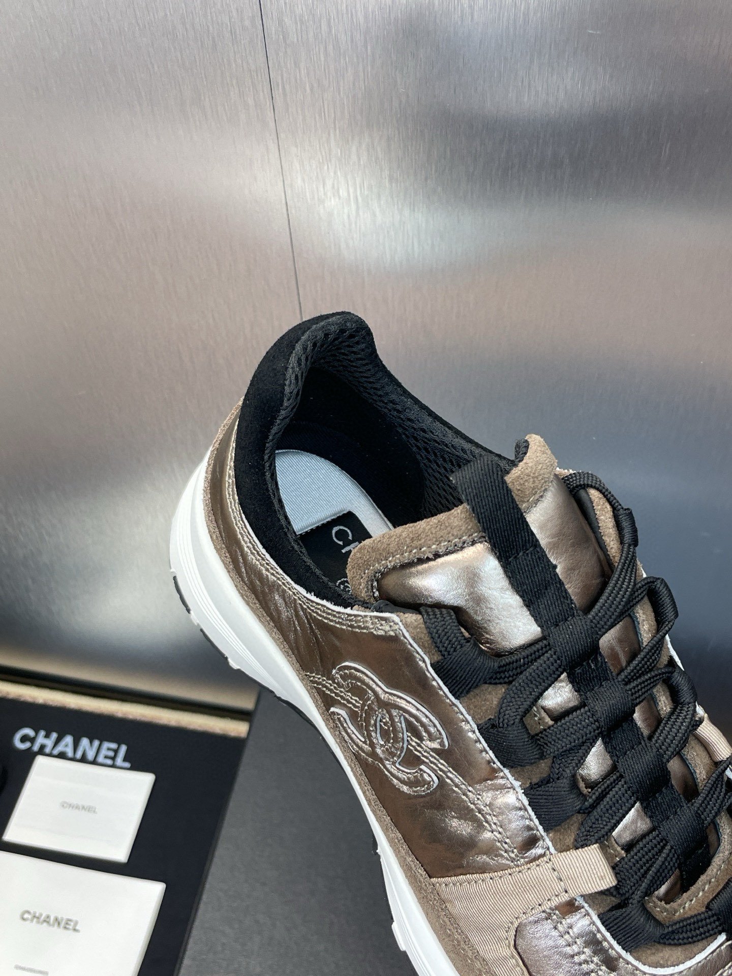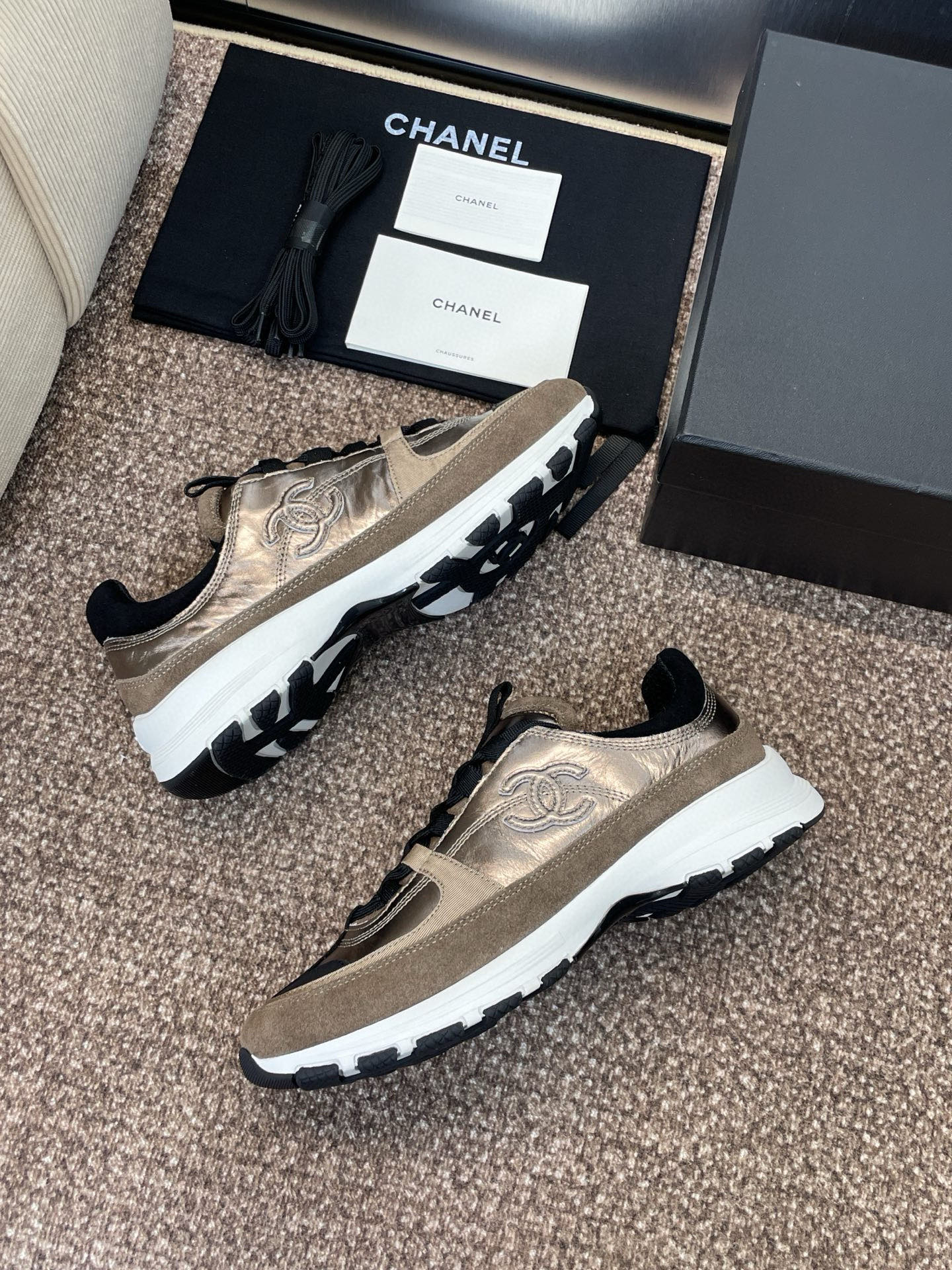 这款鞋子是AAAAA 1:1 质量 (非常棒). 使用了和原版一模一样的材料. 商标部分也保持了和香奈儿/Chanel一样. 图片拍摄是实物鞋子拍摄, 您所收到的实物保证和我们图片一模一样.