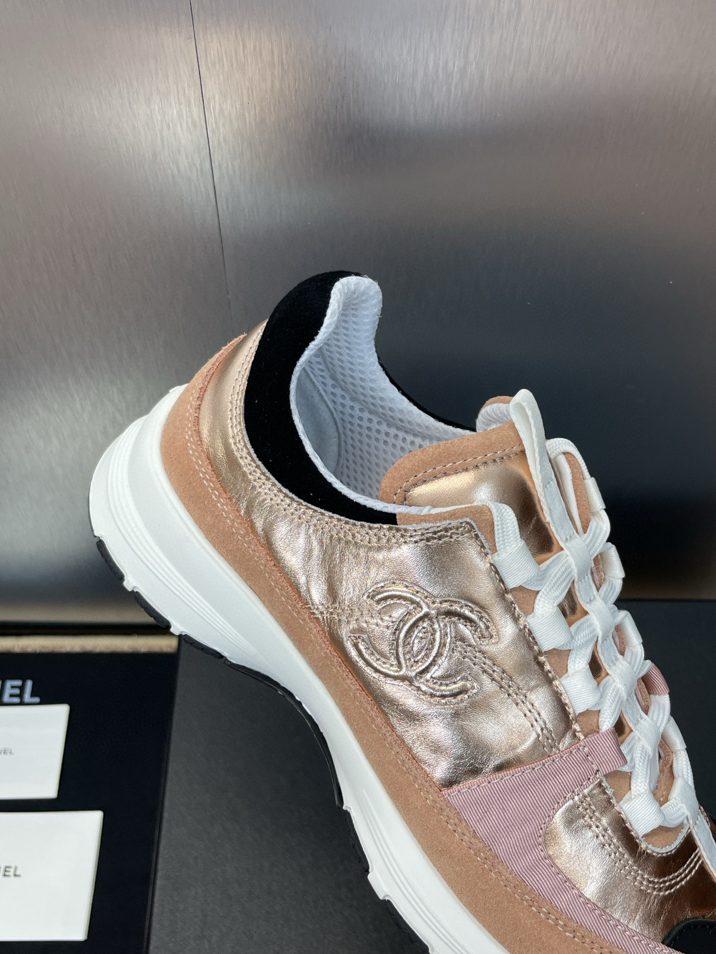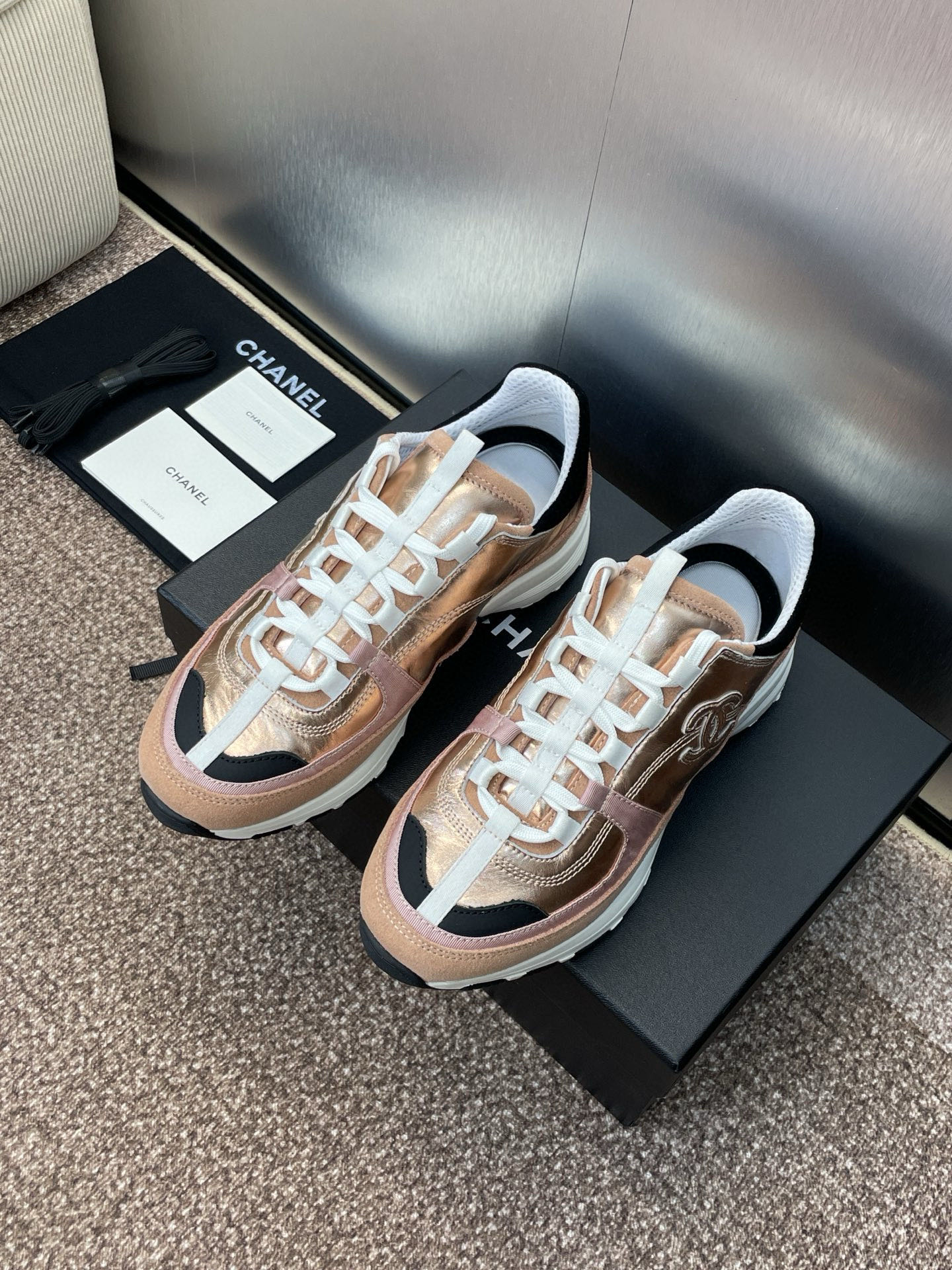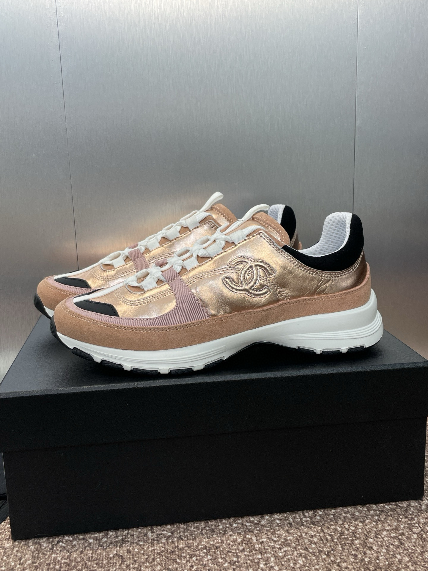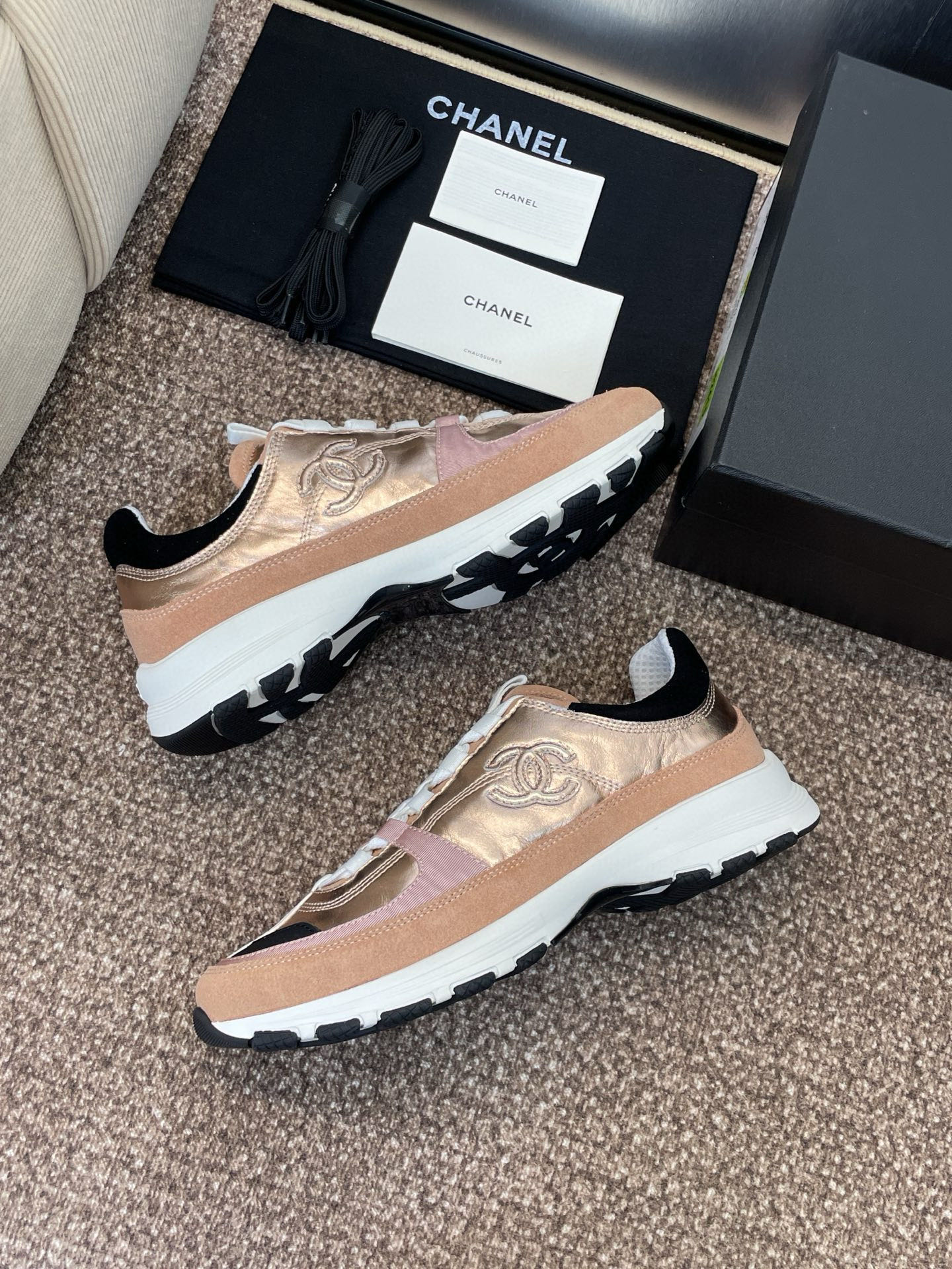 这款鞋子是AAAAA 1:1 质量 (非常棒). 使用了和原版一模一样的材料. 商标部分也保持了和香奈儿/Chanel一样. 图片拍摄是实物鞋子拍摄, 您所收到的实物保证和我们图片一模一样.