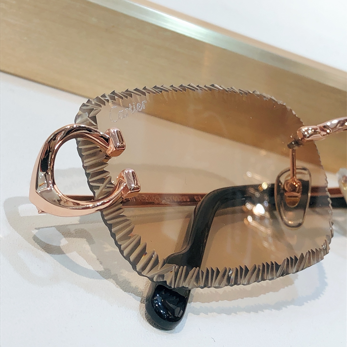 这款太阳眼镜是AAAAA 1:1 质量 (非常棒). 使用了和原版一模一样的材料. 商标部分也保持了和卡地亚/Cartier一样. 图片拍摄是实物太阳眼镜拍摄, 您所收到的实物保证和我们图片一模一样.