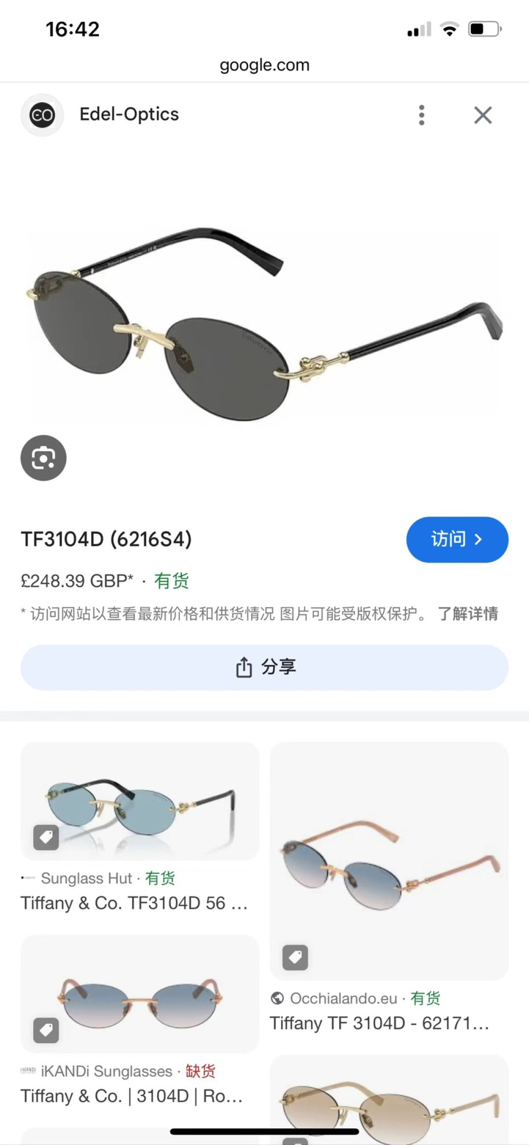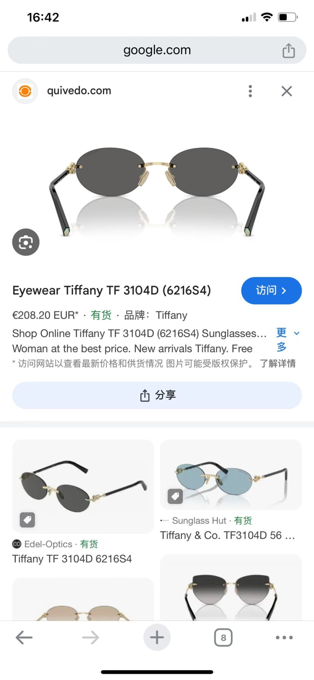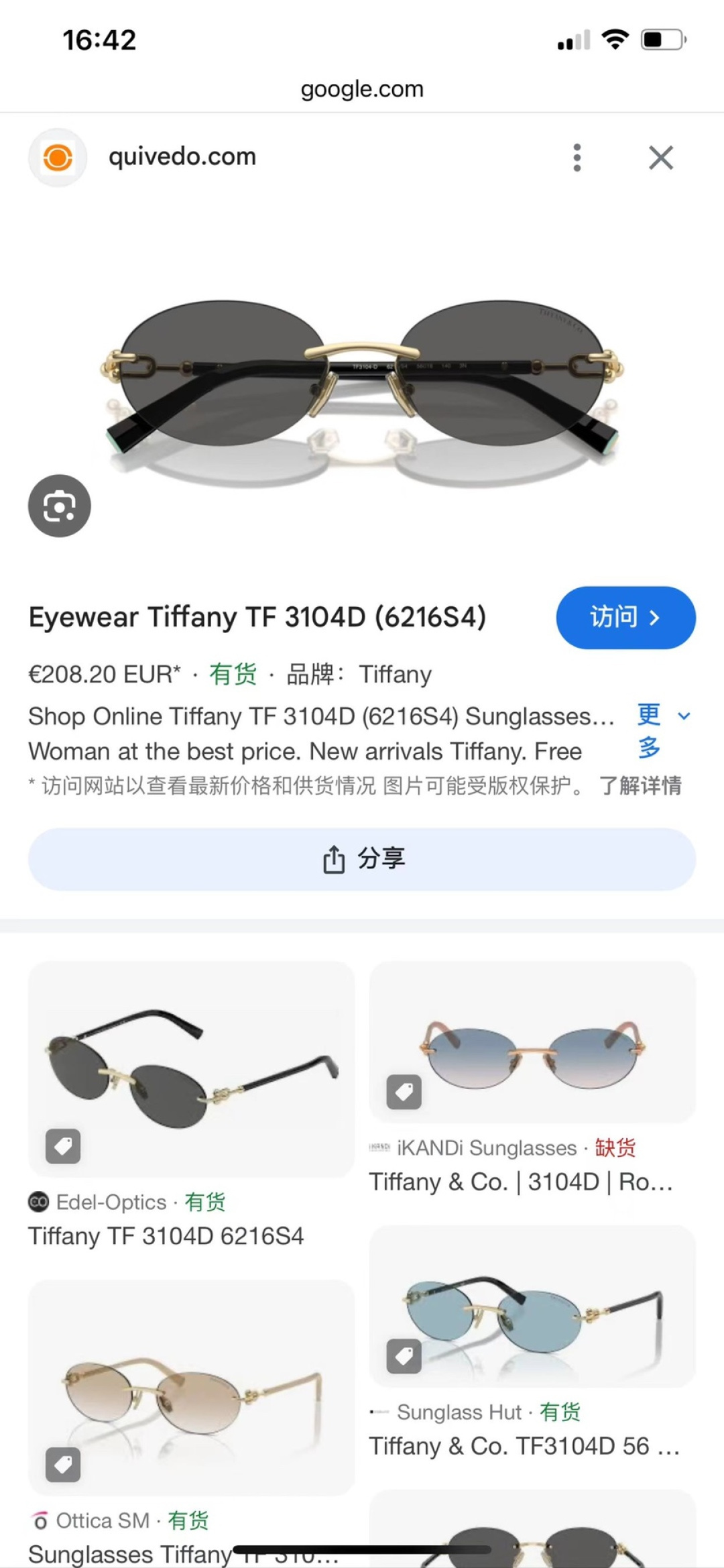 这款太阳眼镜是AAAAA 1:1 质量 (非常棒). 使用了和原版一模一样的材料. 商标部分也保持了和蒂芙尼/Tiffany一样. 图片拍摄是实物太阳眼镜拍摄, 您所收到的实物保证和我们图片一模一样.