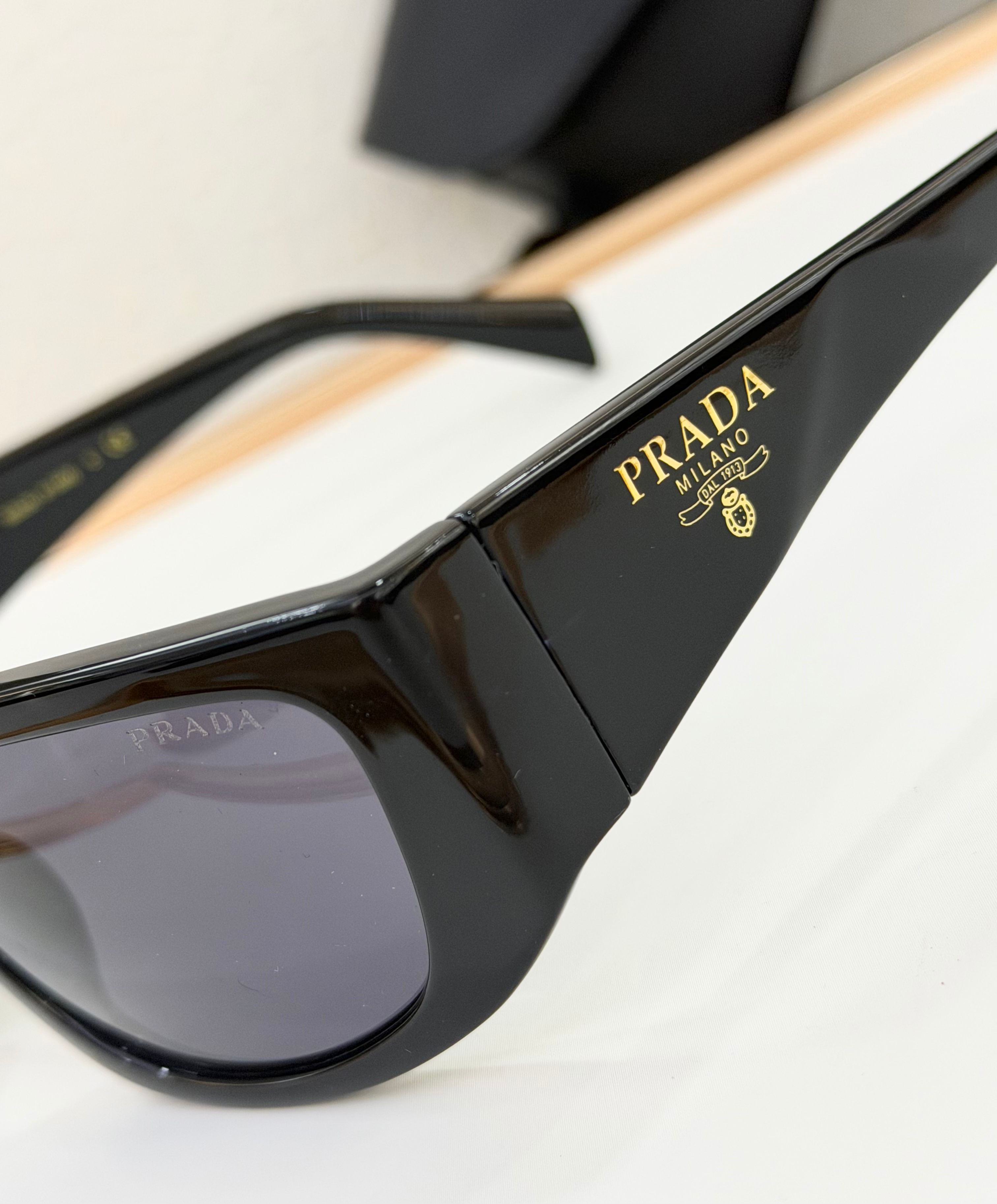 这款太阳眼镜是AAAAA 1:1 质量 (非常棒). 使用了和原版一模一样的材料. 商标部分也保持了和普拉达/Prada一样. 图片拍摄是实物太阳眼镜拍摄, 您所收到的实物保证和我们图片一模一样.