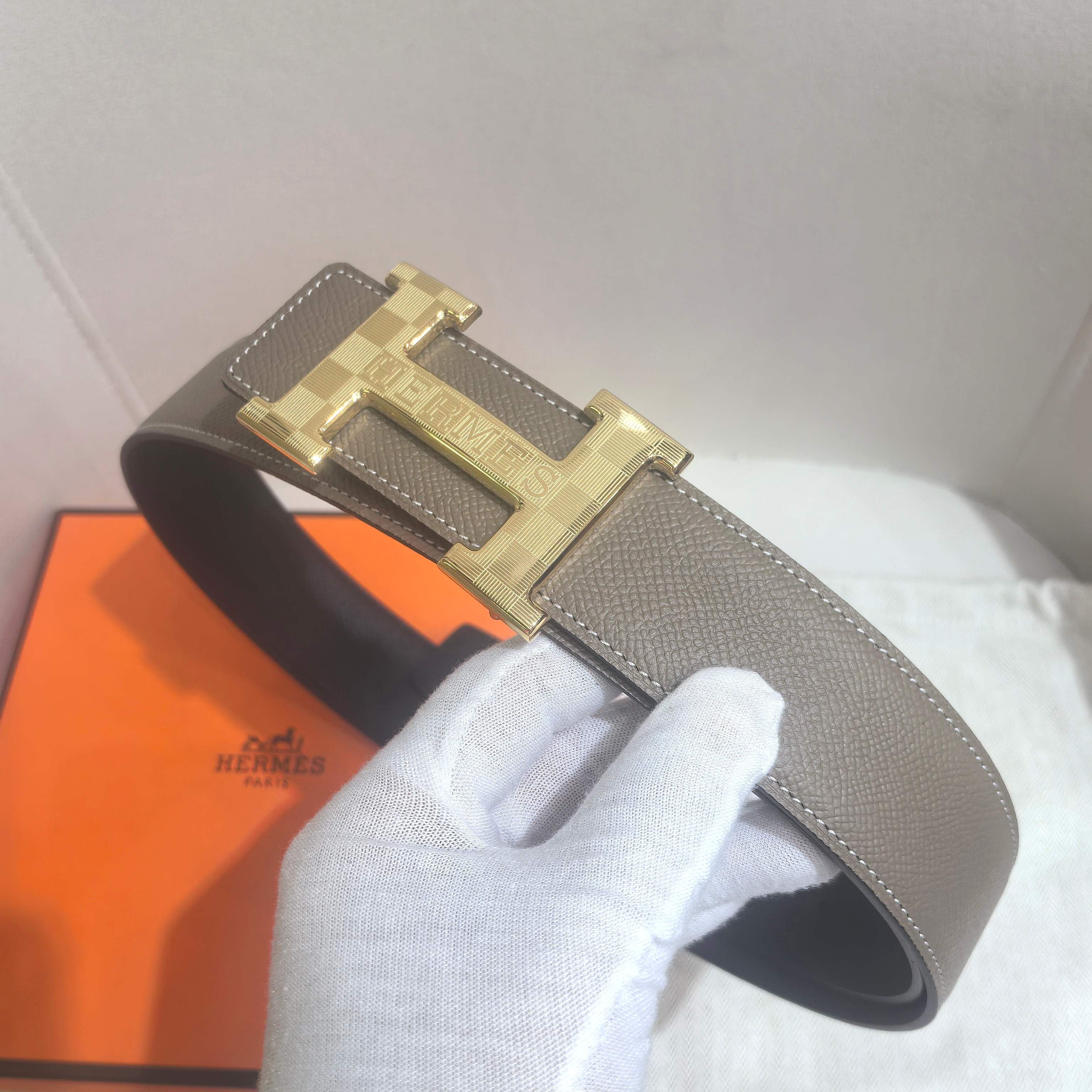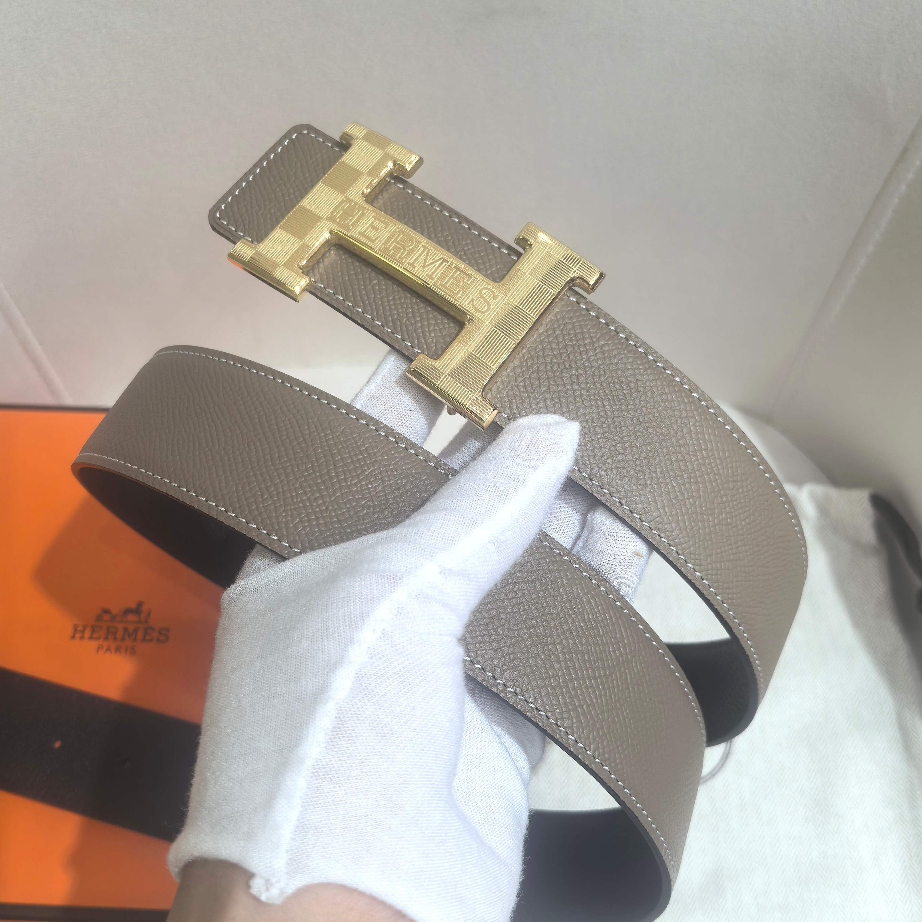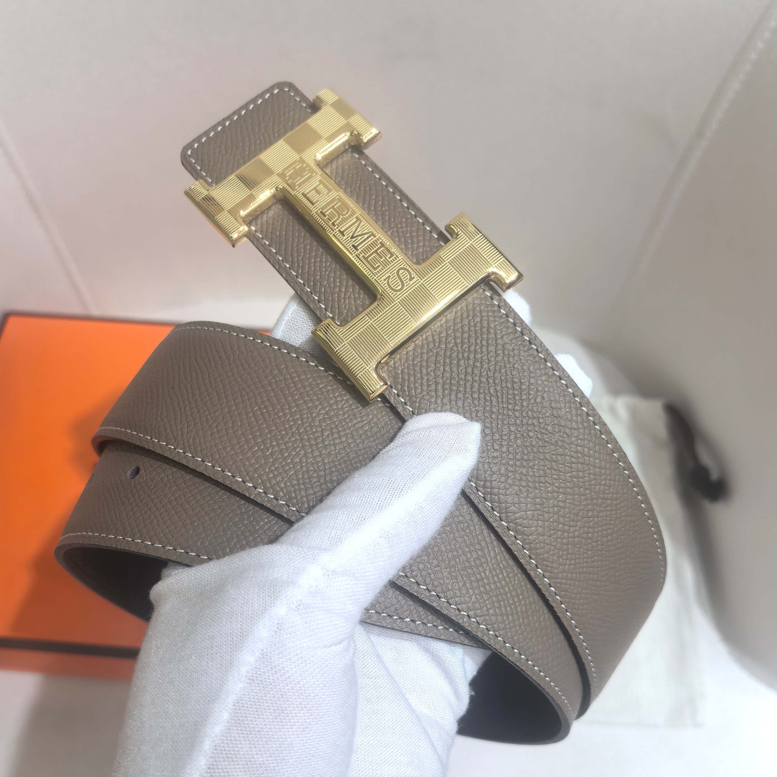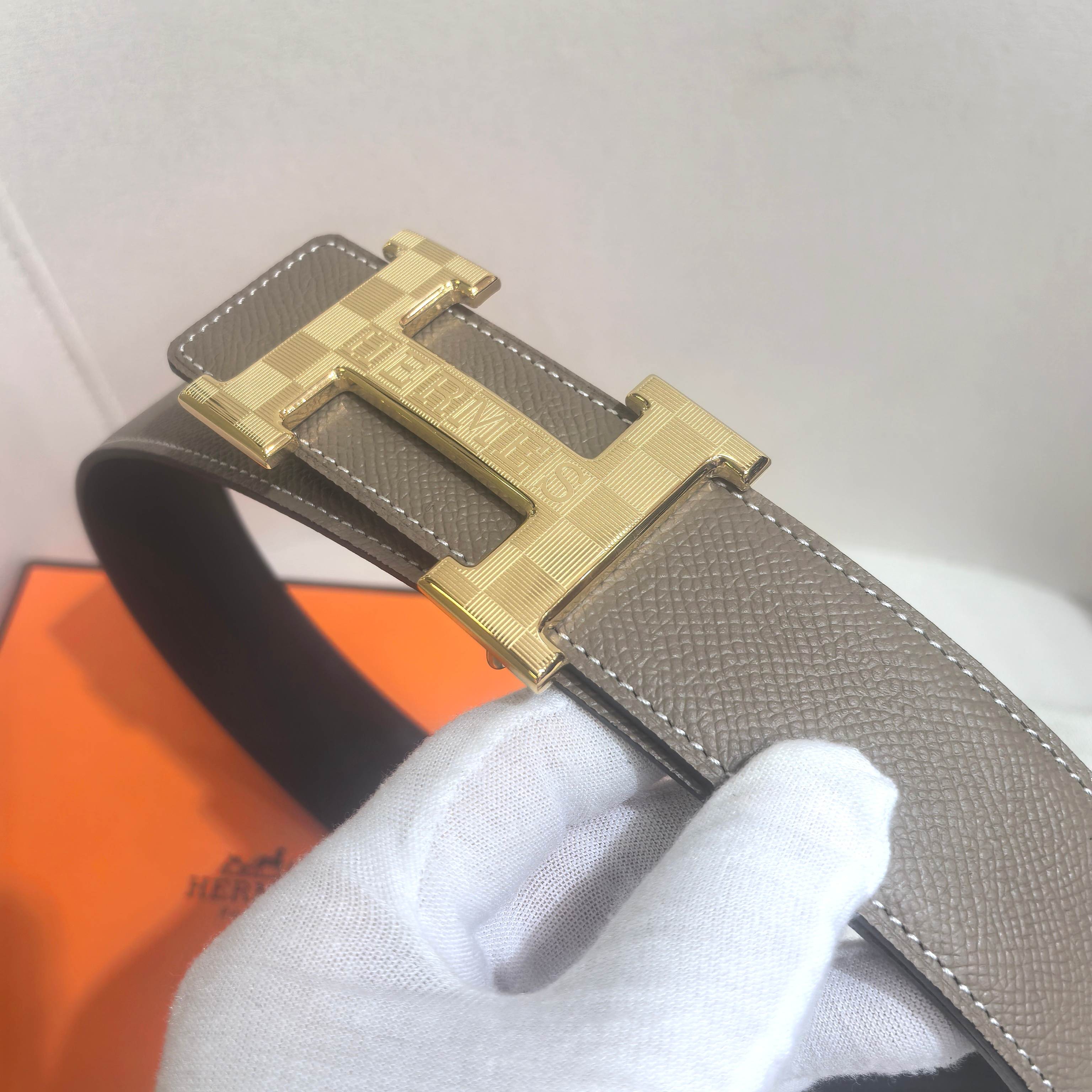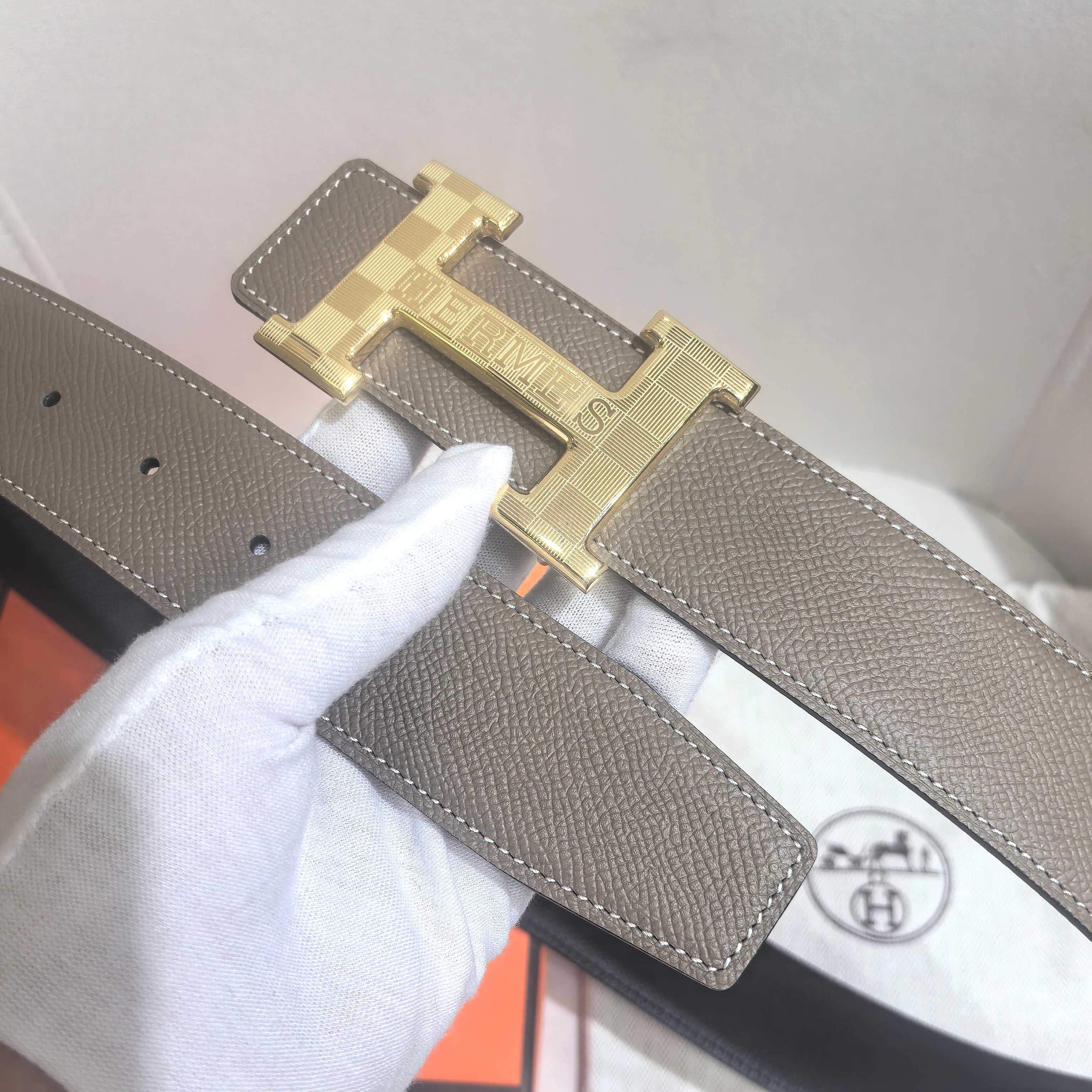 这款皮带是AAAAA 1:1 质量 (非常棒). 使用了和原版一模一样的材料. 商标部分也保持了和爱马仕/Hermes一样. 图片拍摄是实物皮带拍摄, 您所收到的实物保证和我们图片一模一样.