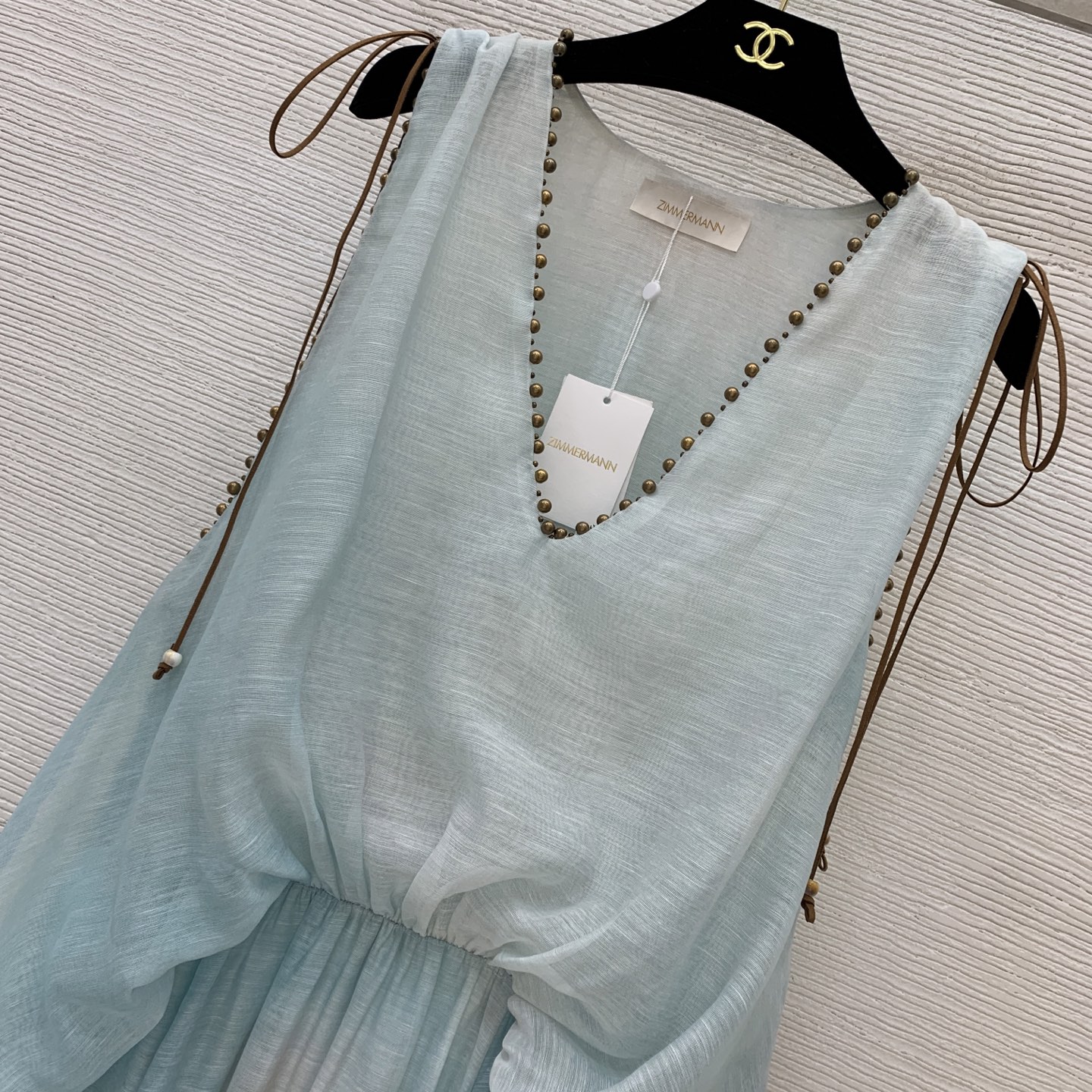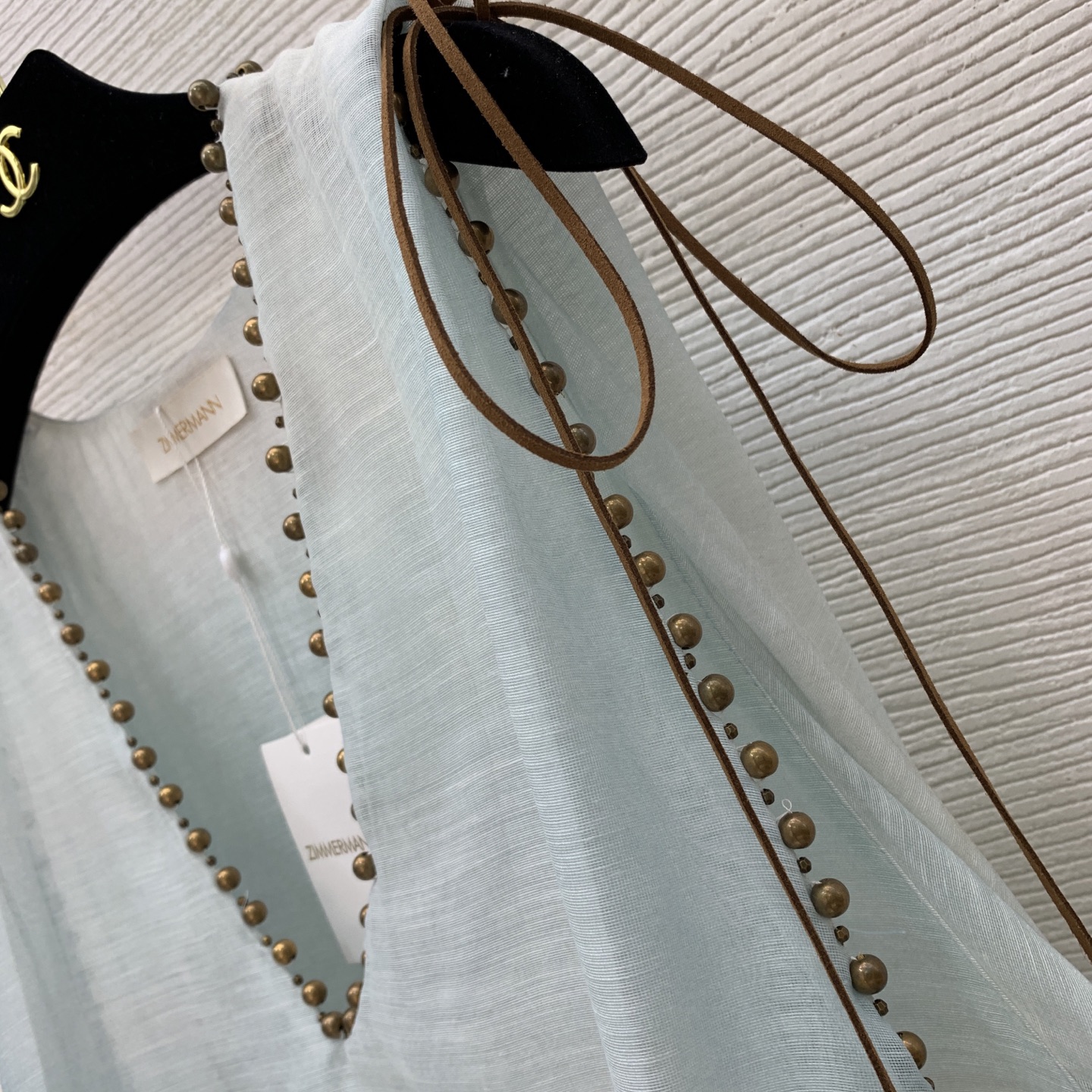 这款衣服是AAAAA 1:1 质量 (非常棒). 使用了和原版一模一样的材料. 商标部分也保持了和ZIMMERMANN一样. 图片拍摄是实物衣服拍摄, 您所收到的实物保证和我们图片一模一样.