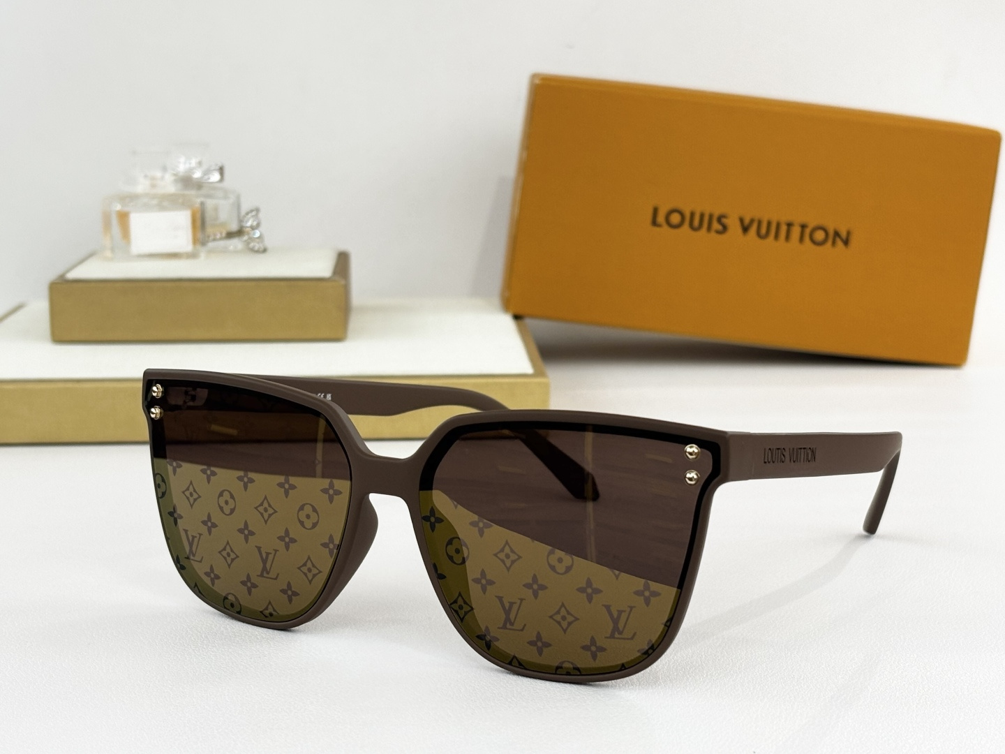 这款太阳眼镜是AAAAA 1:1 质量 (非常棒). 使用了和原版一模一样的材料. 商标部分也保持了和路易威登/Louis Vuitton一样. 图片拍摄是实物太阳眼镜拍摄, 您所收到的实物保证和我们图片一模一样.