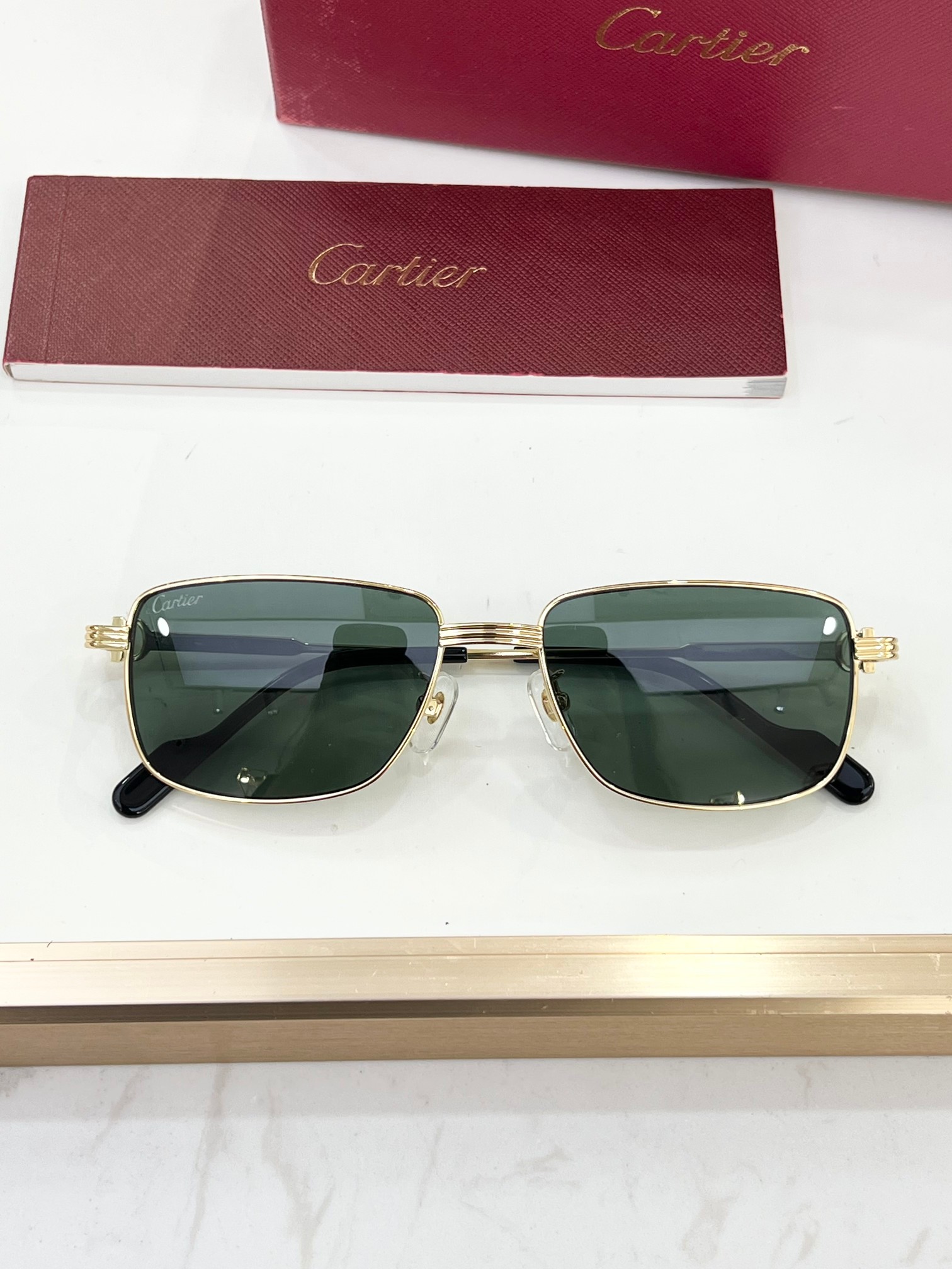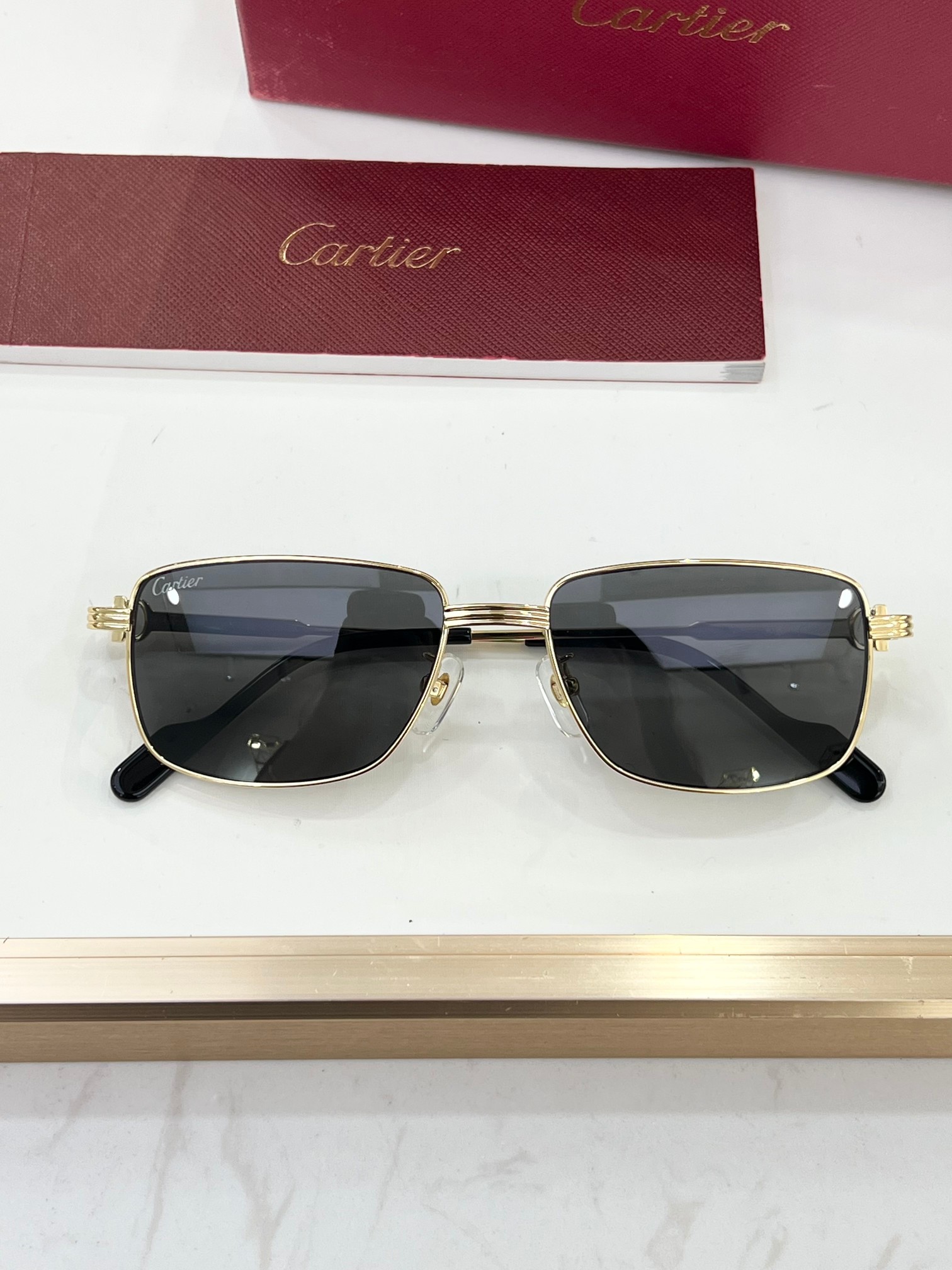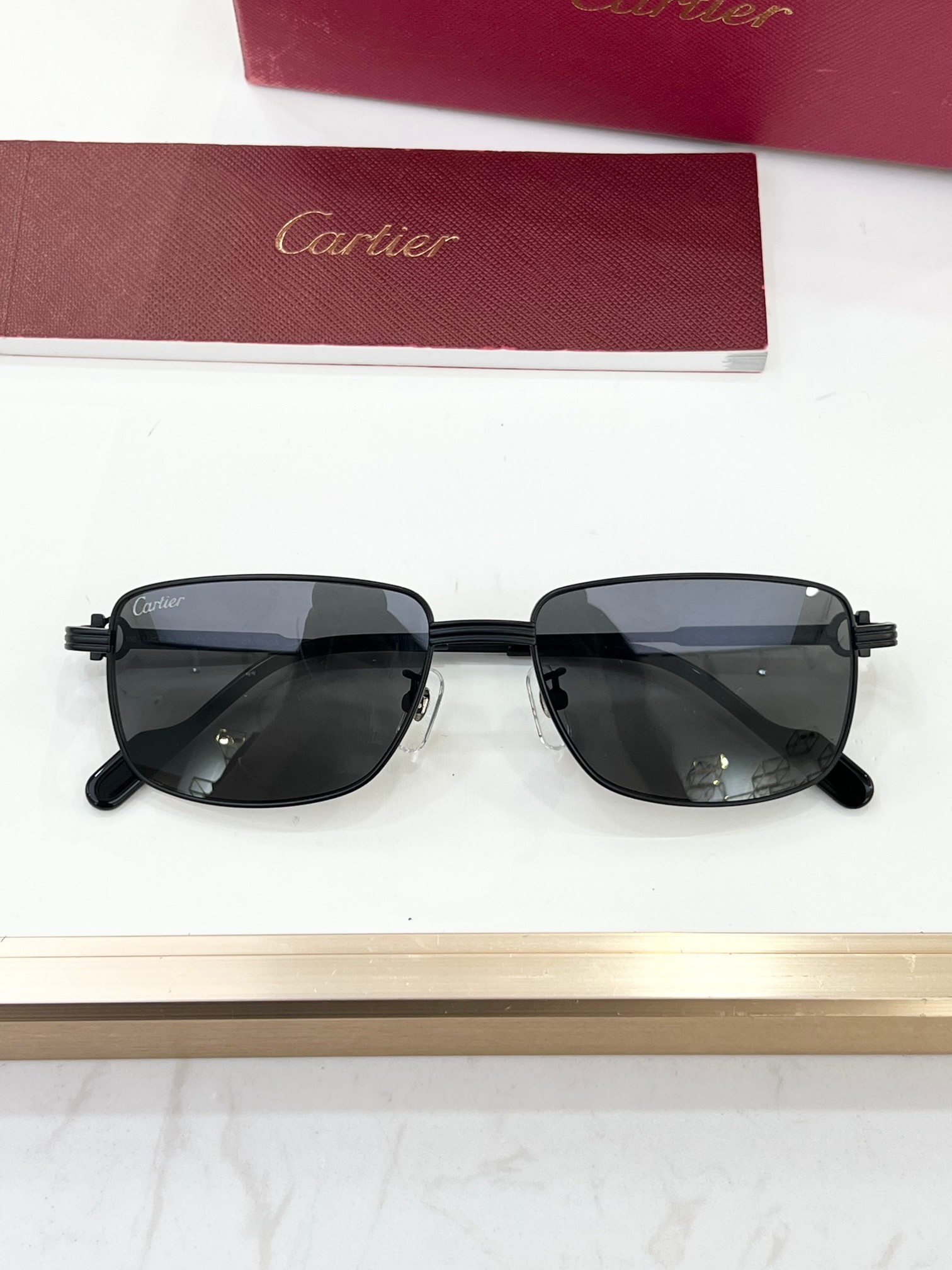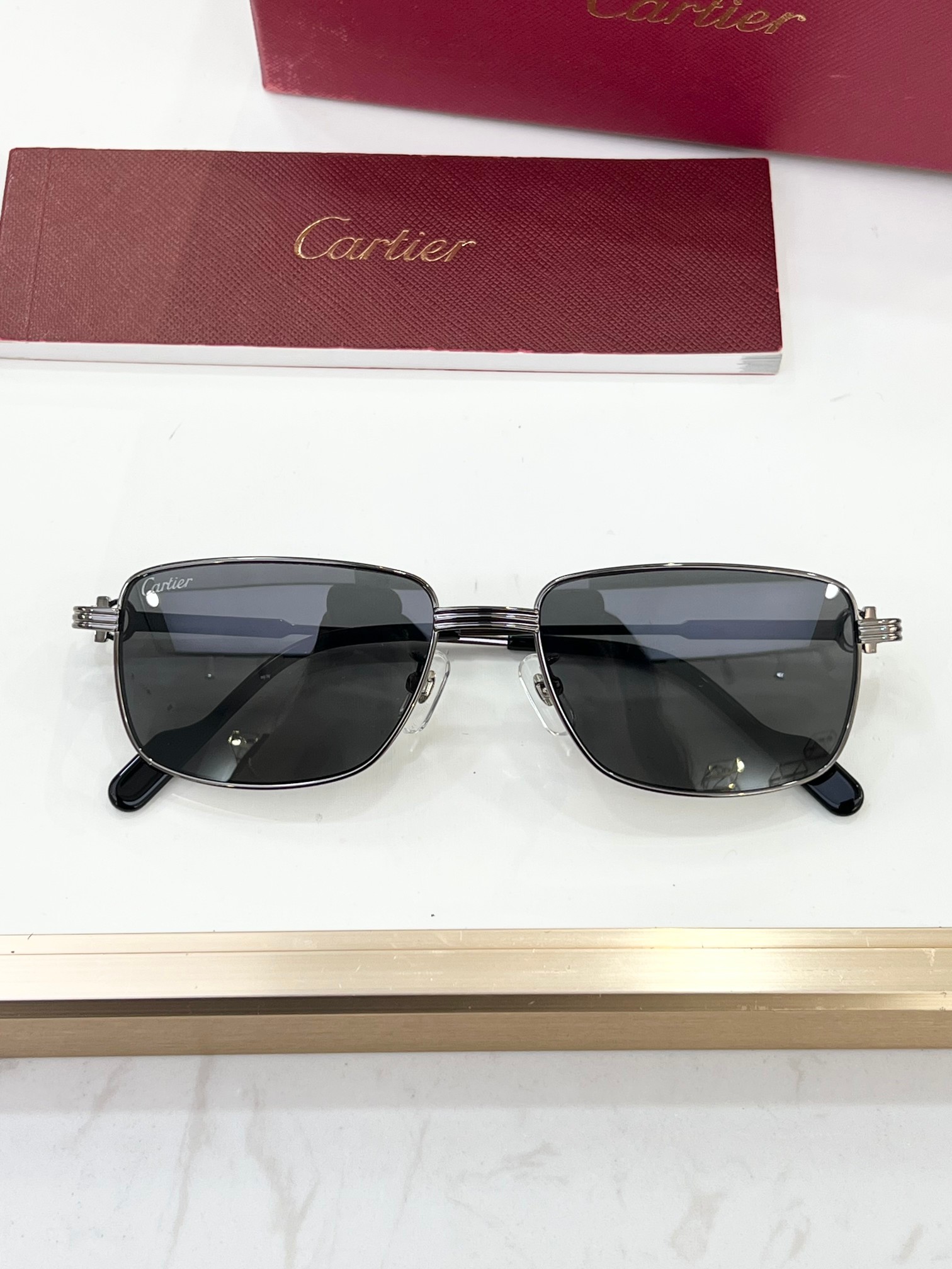 这款太阳眼镜是AAAAA 1:1 质量 (非常棒). 使用了和原版一模一样的材料. 商标部分也保持了和卡地亚/Cartier一样. 图片拍摄是实物太阳眼镜拍摄, 您所收到的实物保证和我们图片一模一样.