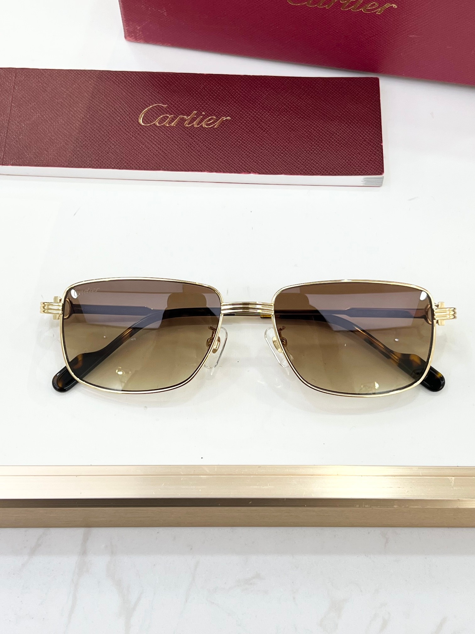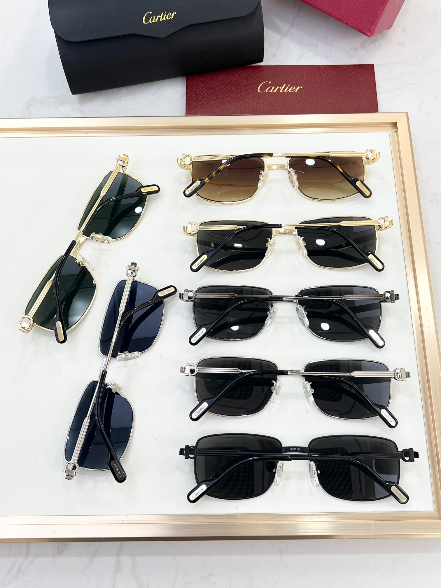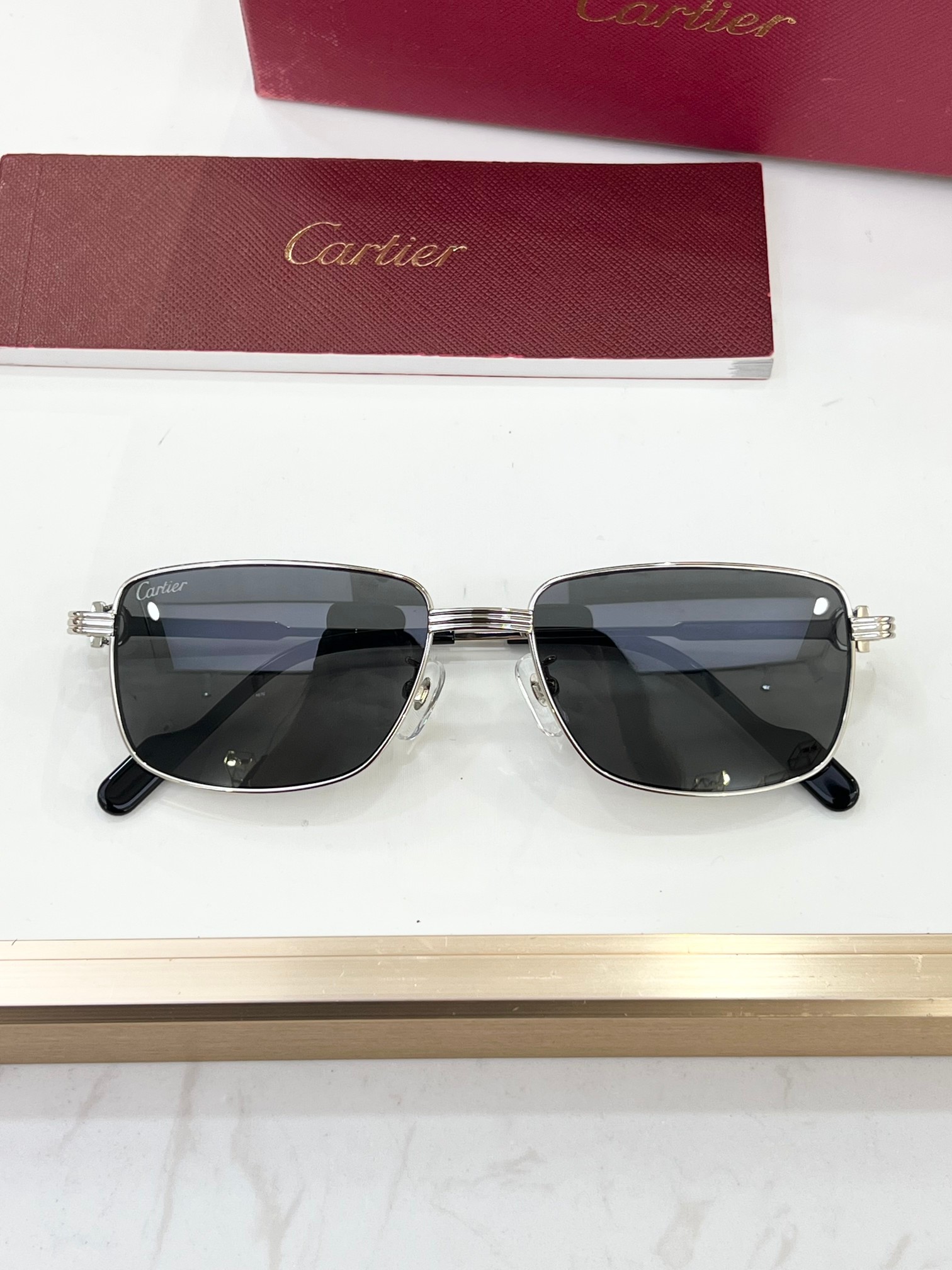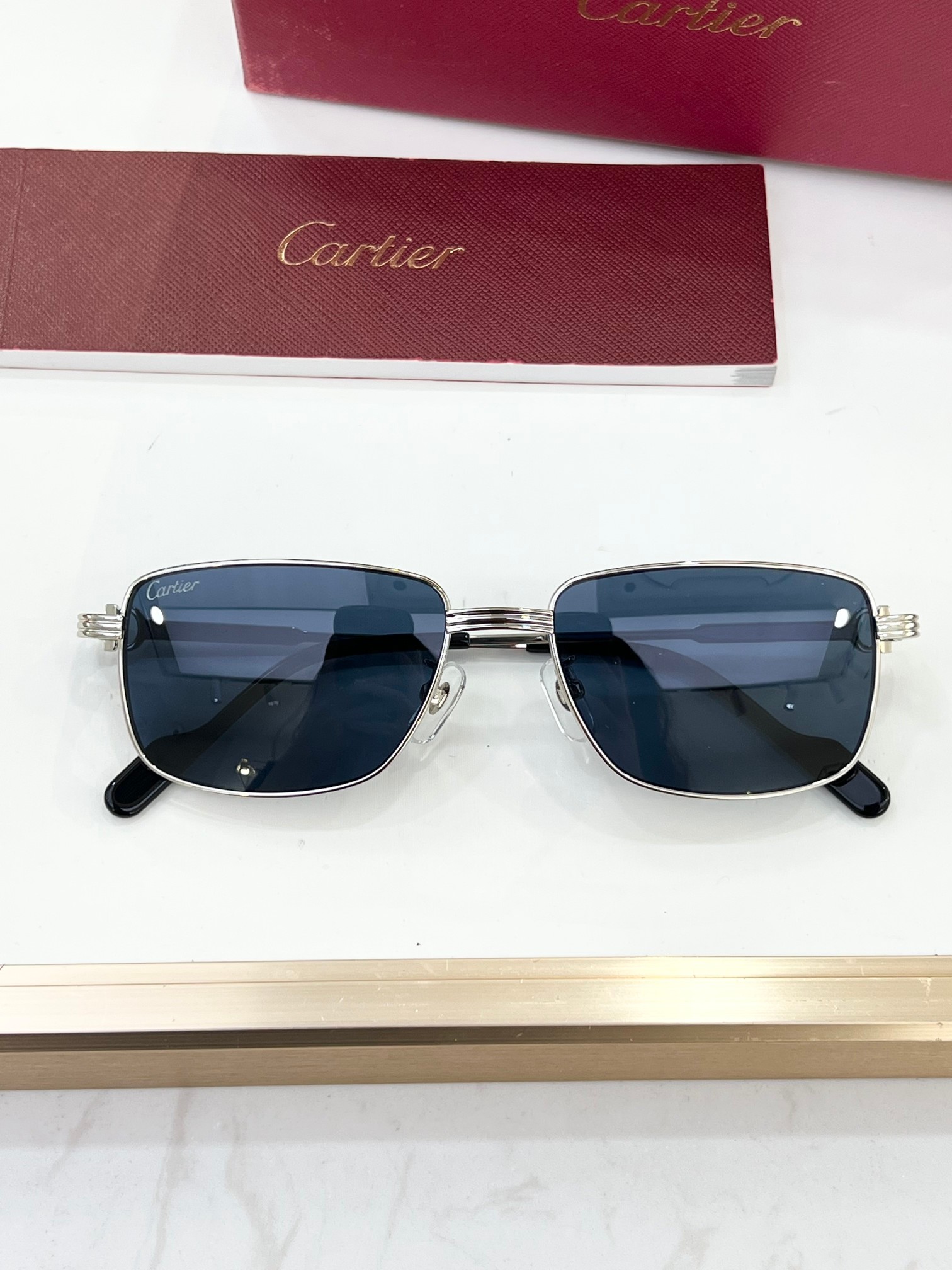 这款太阳眼镜是AAAAA 1:1 质量 (非常棒). 使用了和原版一模一样的材料. 商标部分也保持了和卡地亚/Cartier一样. 图片拍摄是实物太阳眼镜拍摄, 您所收到的实物保证和我们图片一模一样.
