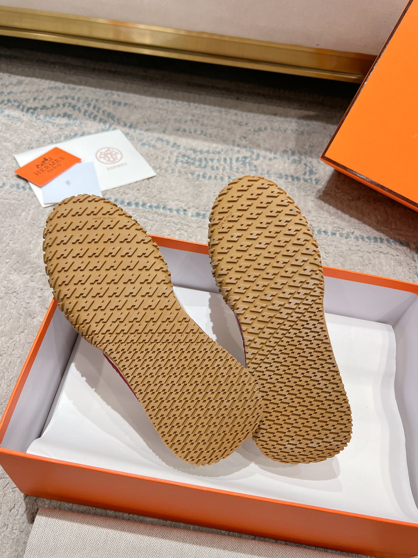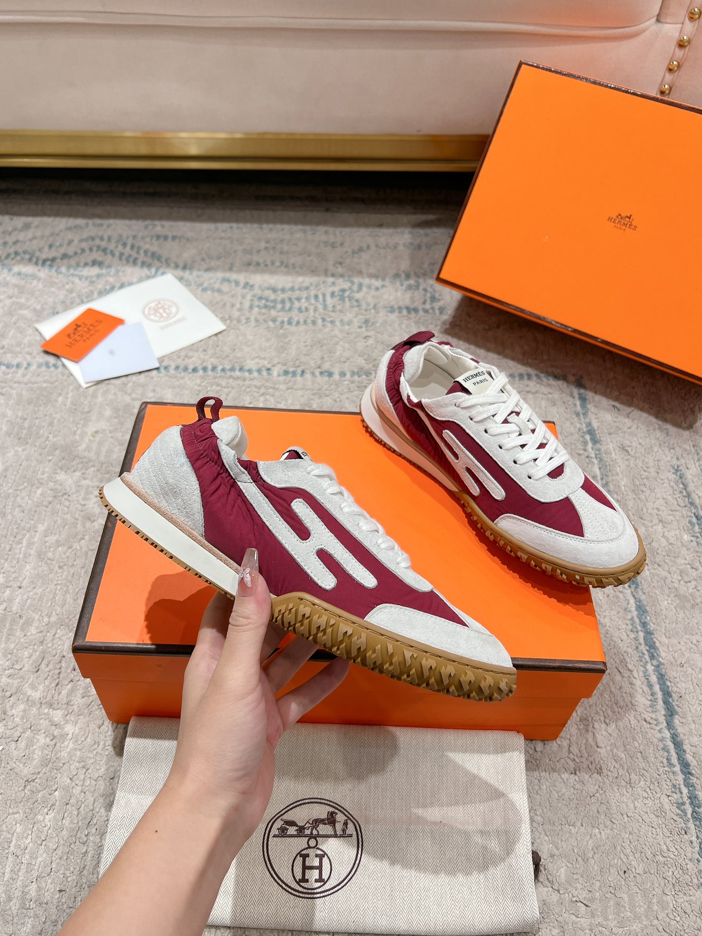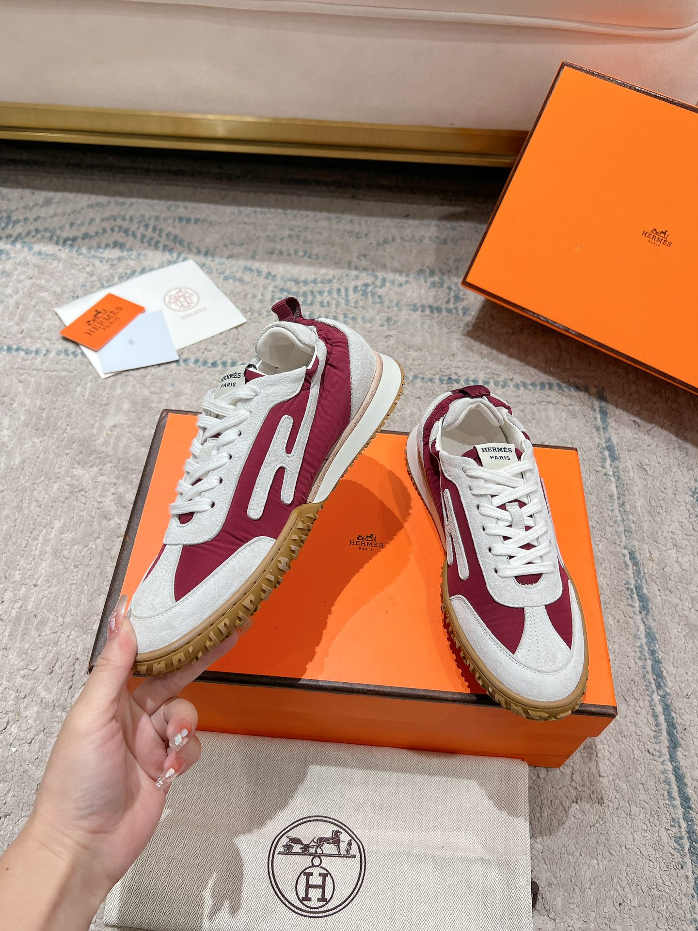 这款鞋子是AAAAA 1:1 质量 (非常棒). 使用了和原版一模一样的材料. 商标部分也保持了和爱马仕/Hermes一样. 图片拍摄是实物鞋子拍摄, 您所收到的实物保证和我们图片一模一样.