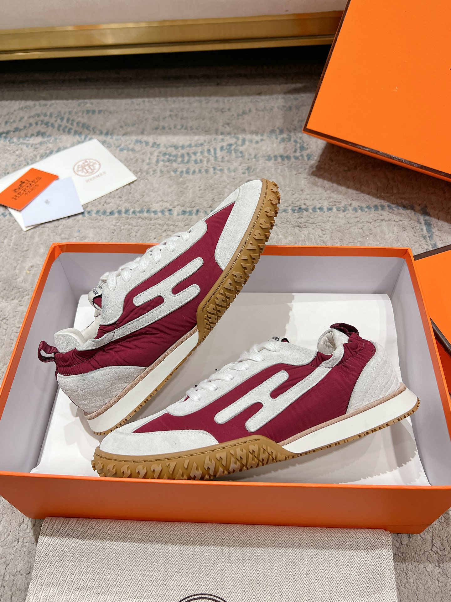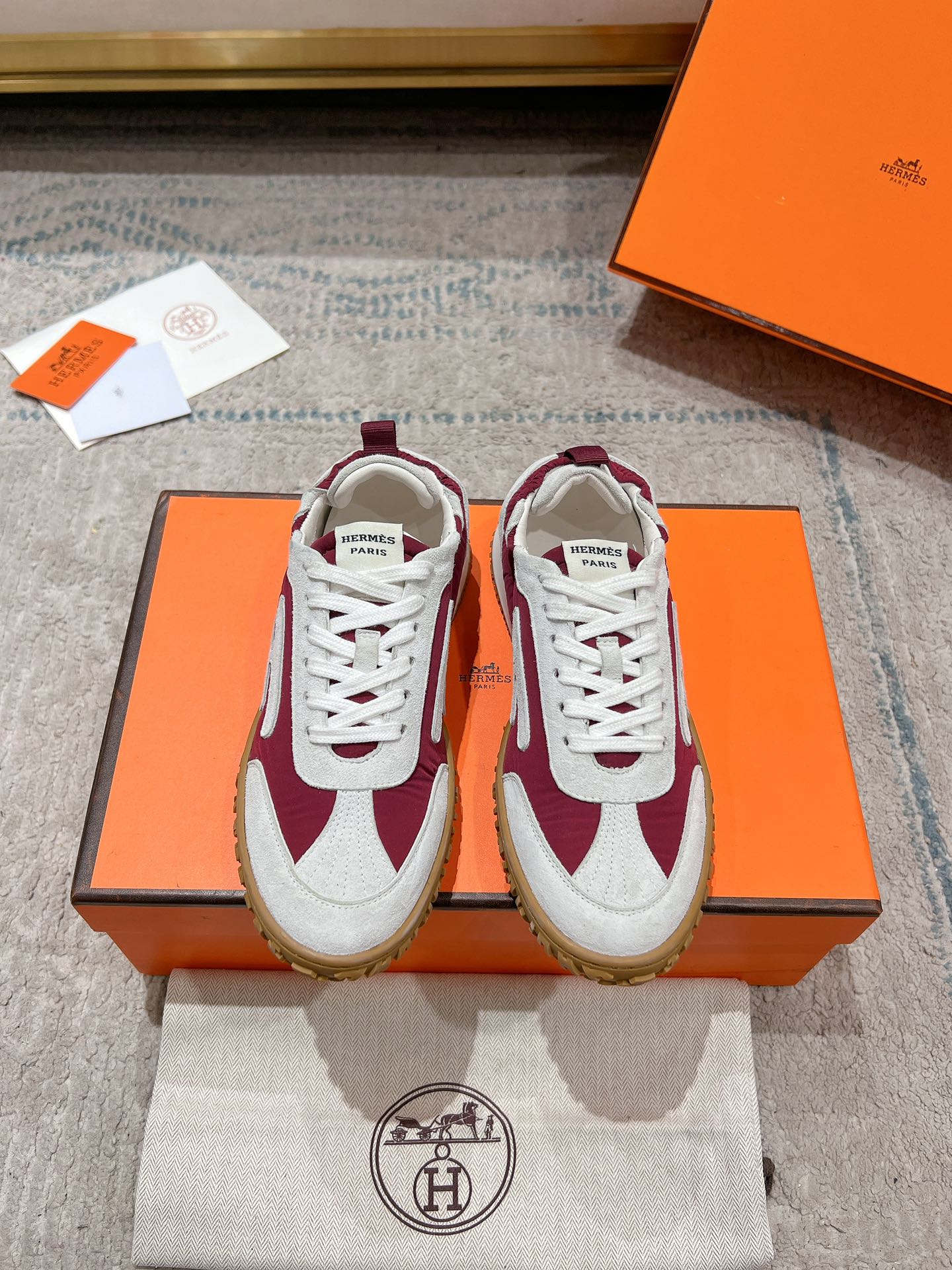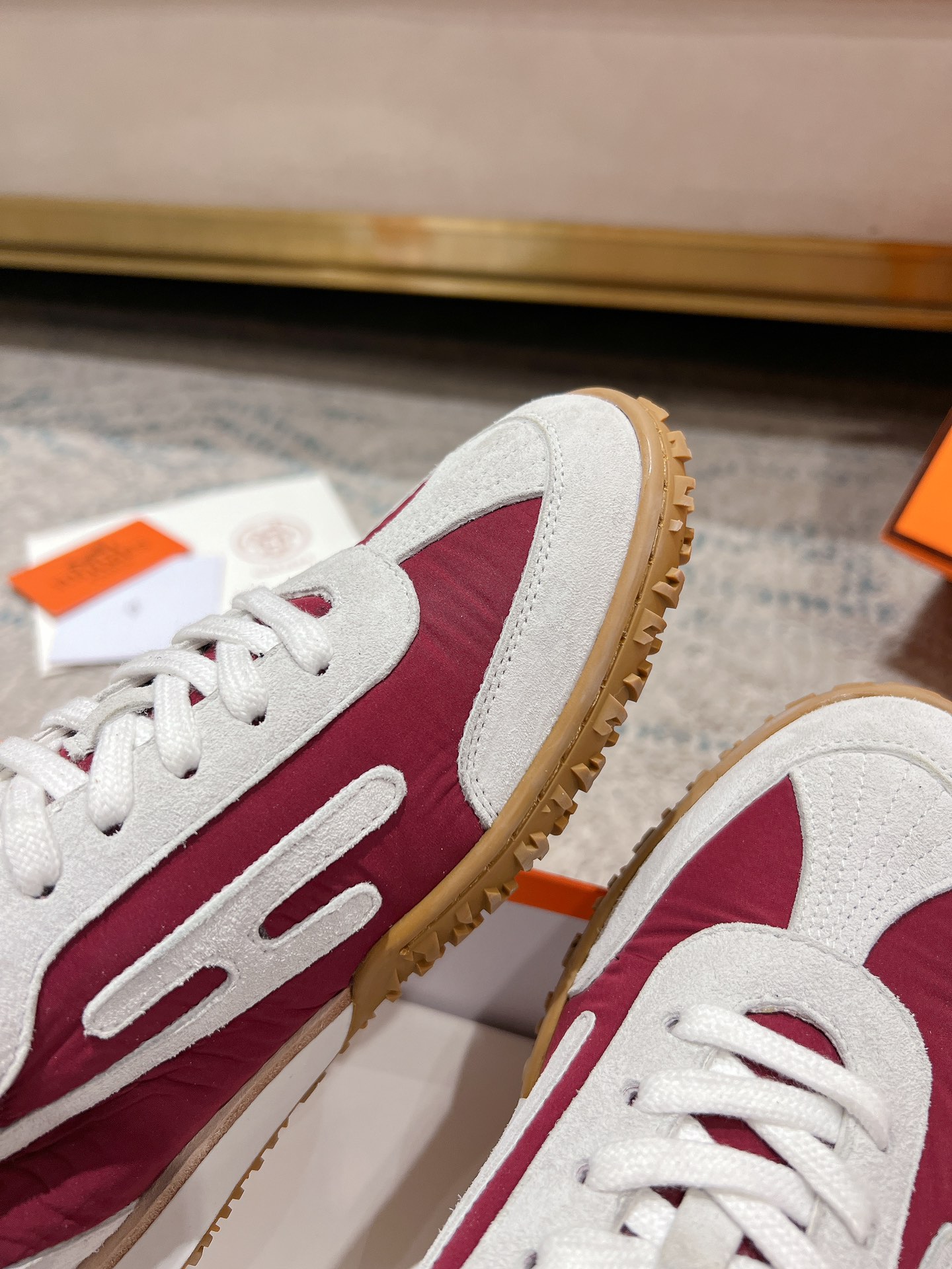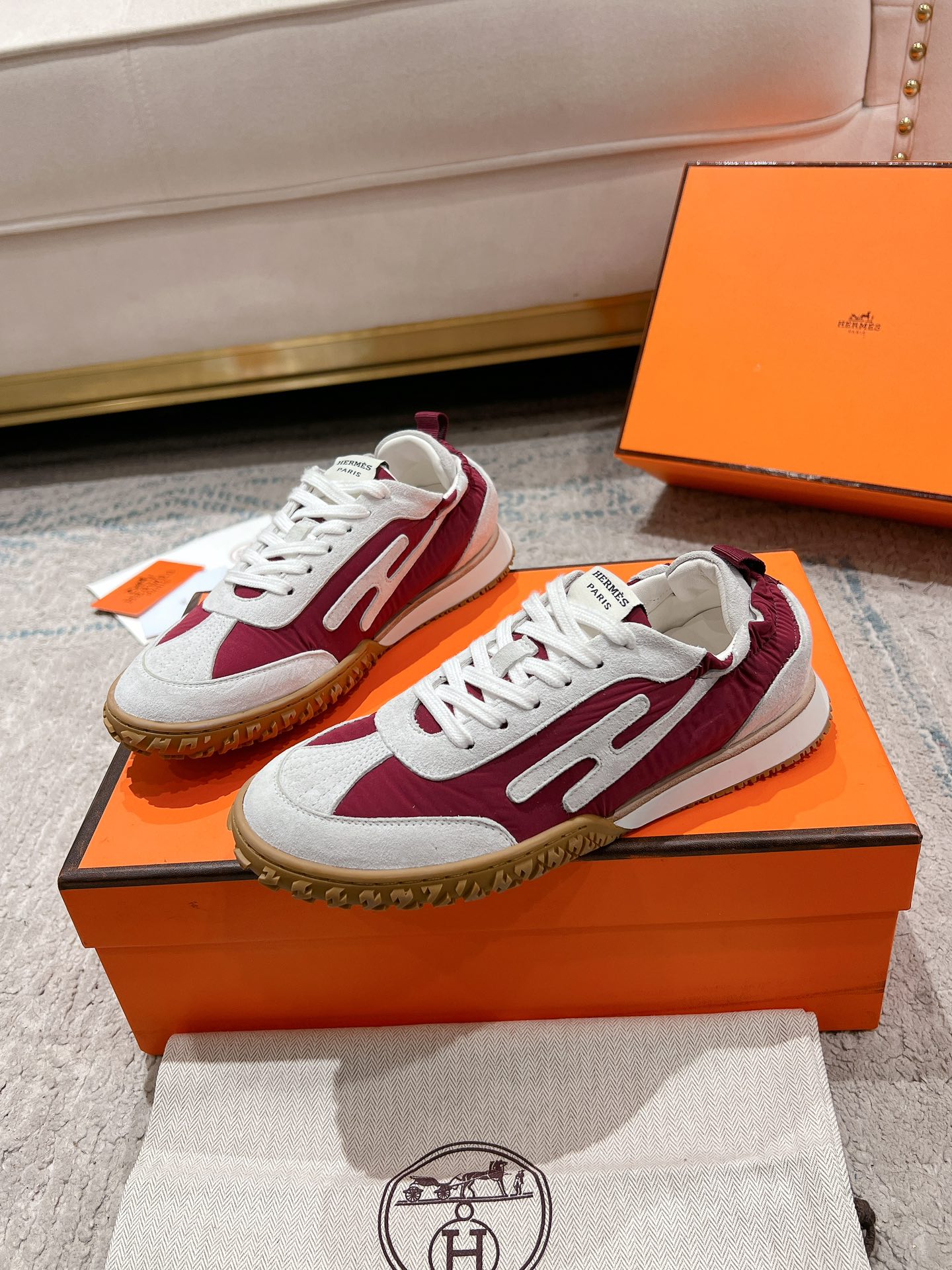 这款鞋子是AAAAA 1:1 质量 (非常棒). 使用了和原版一模一样的材料. 商标部分也保持了和爱马仕/Hermes一样. 图片拍摄是实物鞋子拍摄, 您所收到的实物保证和我们图片一模一样.