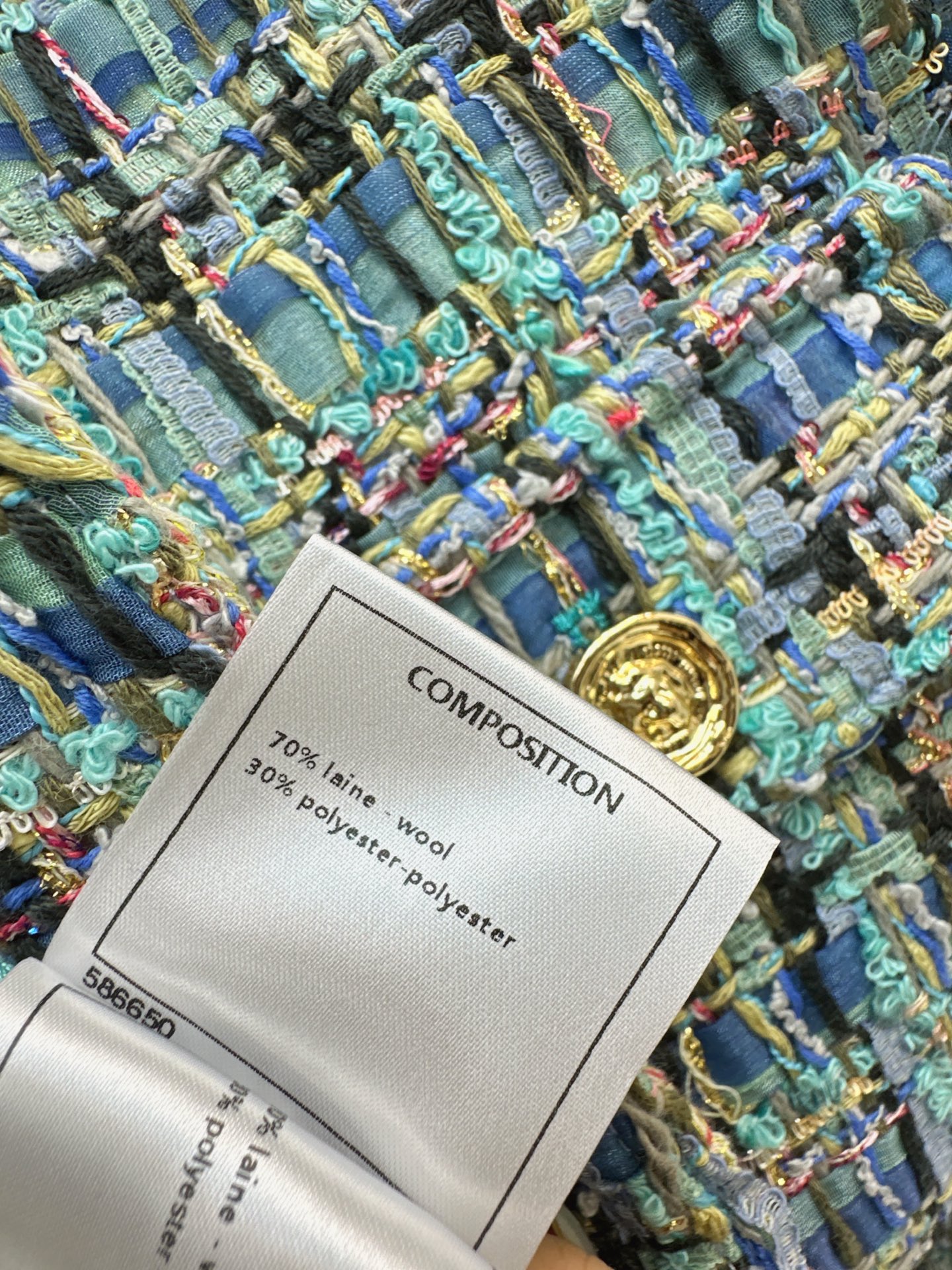 这款衣服是AAAAA 1:1 质量 (非常棒). 使用了和原版一模一样的材料. 商标部分也保持了和香奈儿/Chanel一样. 图片拍摄是实物衣服拍摄, 您所收到的实物保证和我们图片一模一样.