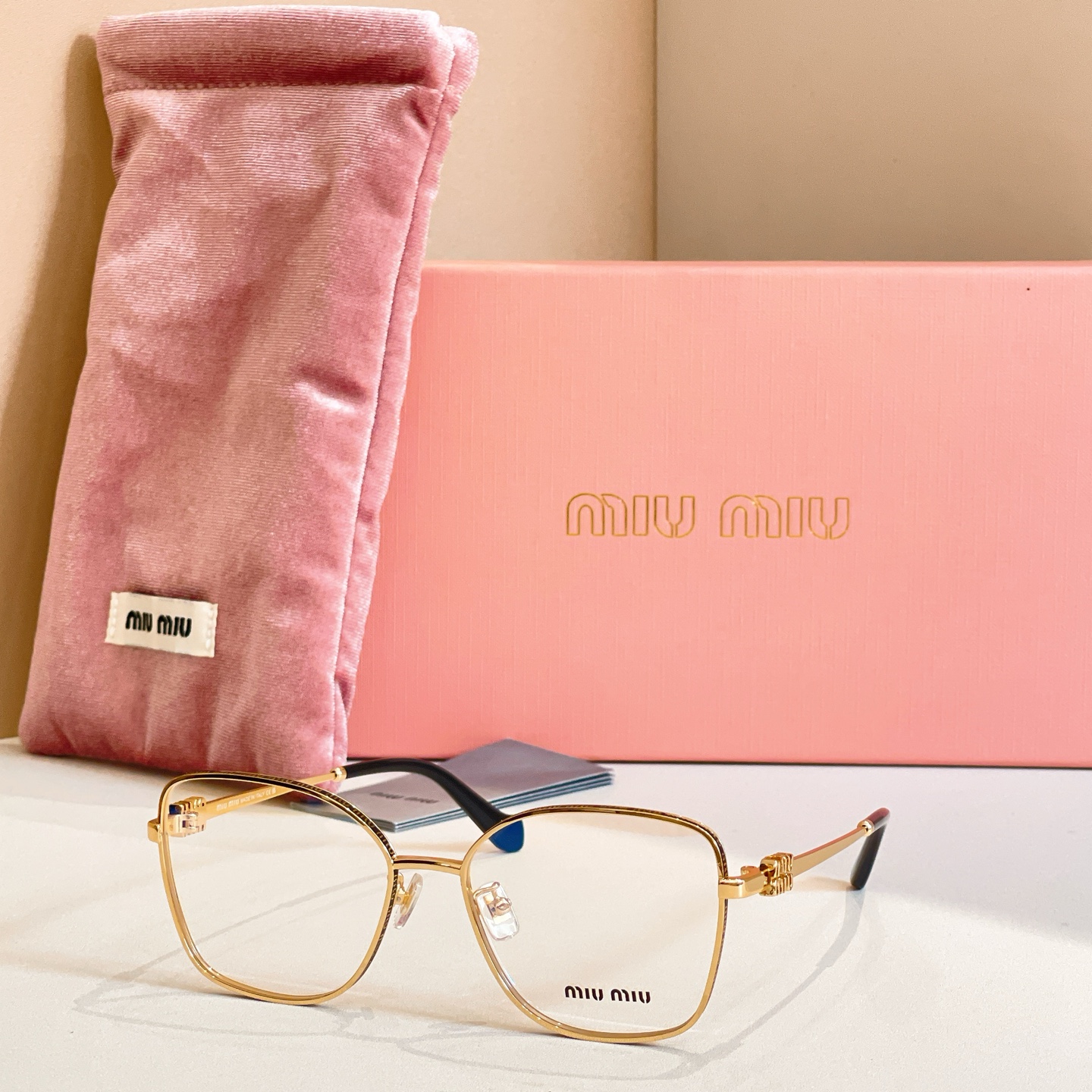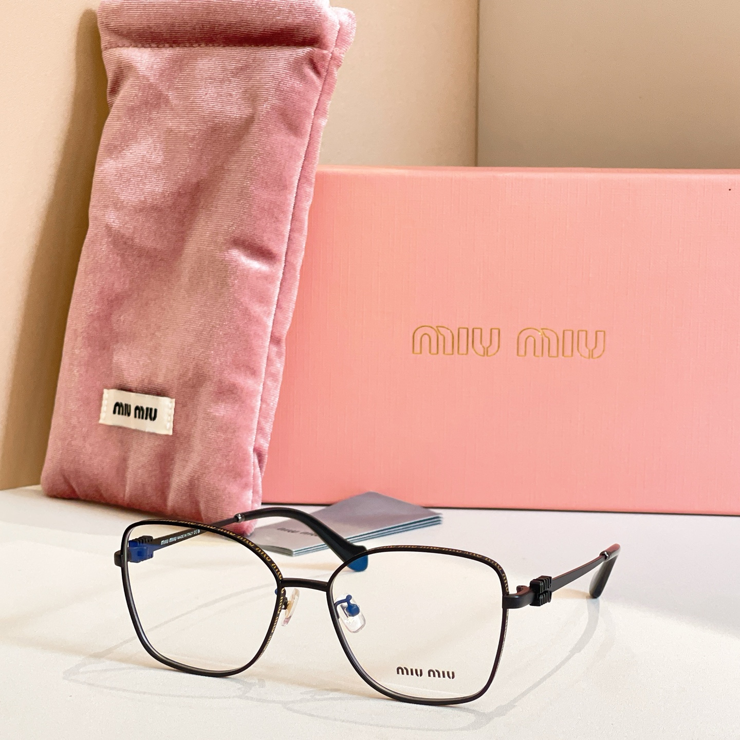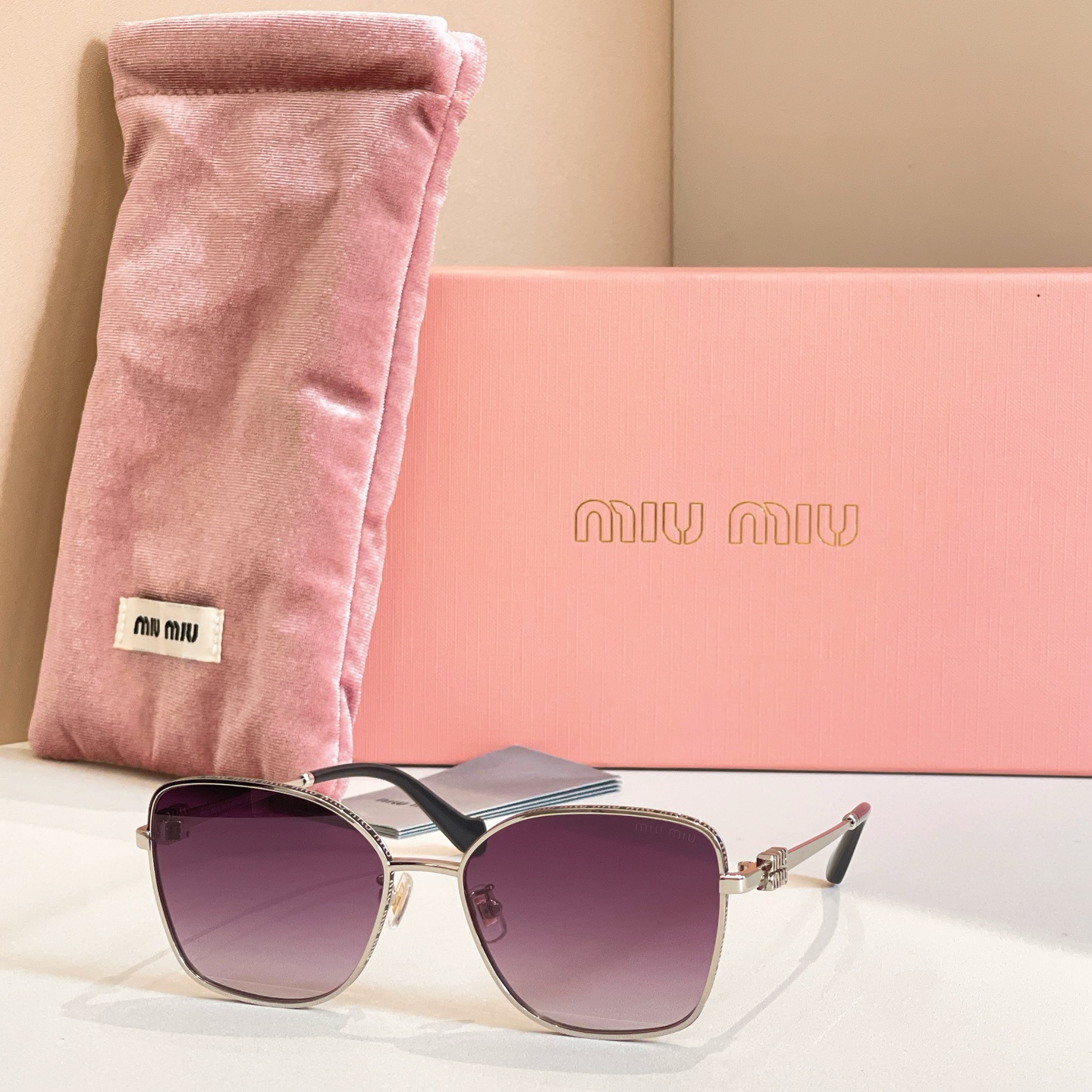 这款太阳眼镜是AAAAA 1:1 质量 (非常棒). 使用了和原版一模一样的材料. 商标部分也保持了和缪缪/Miu Miu一样. 图片拍摄是实物太阳眼镜拍摄, 您所收到的实物保证和我们图片一模一样.