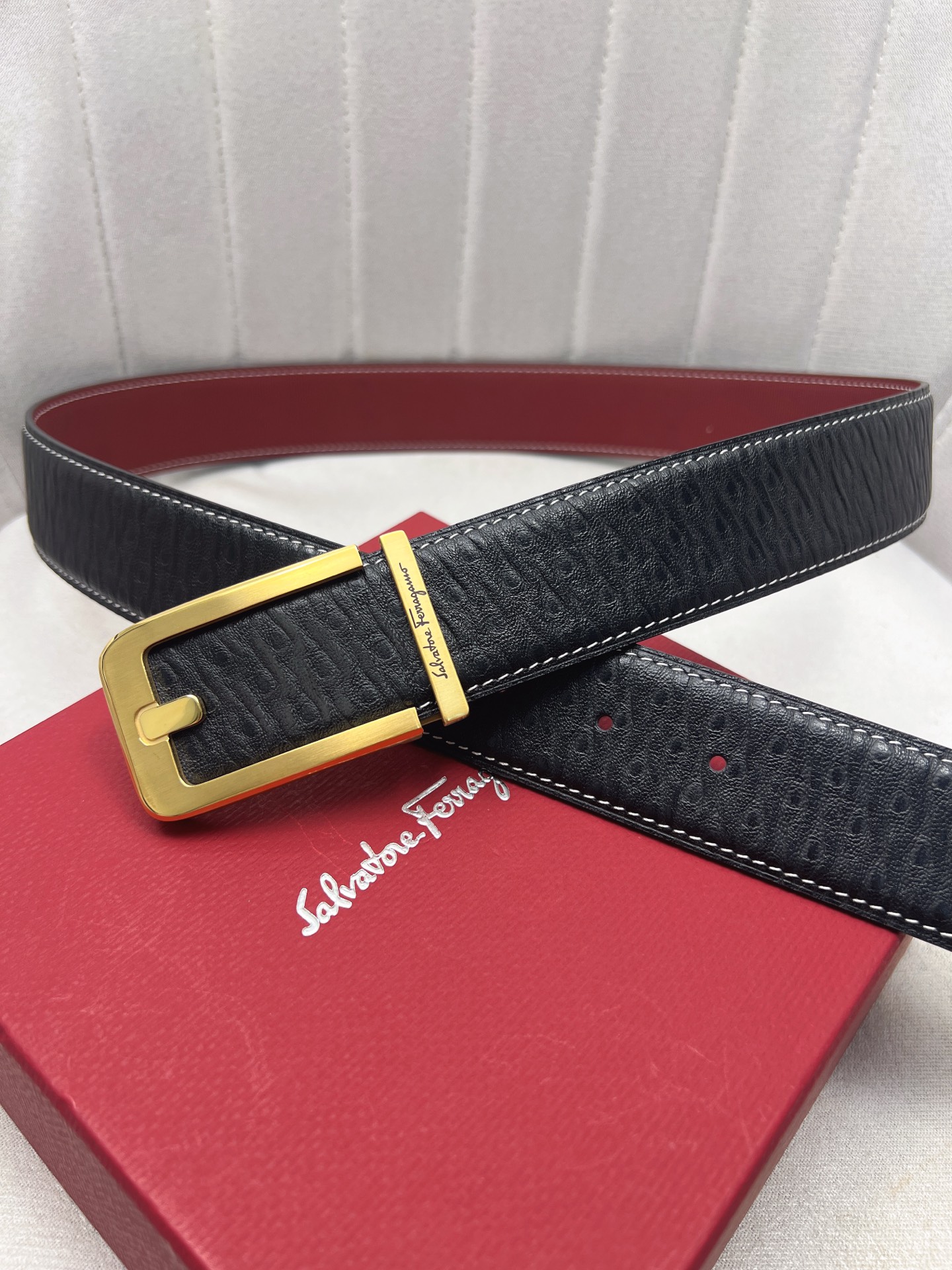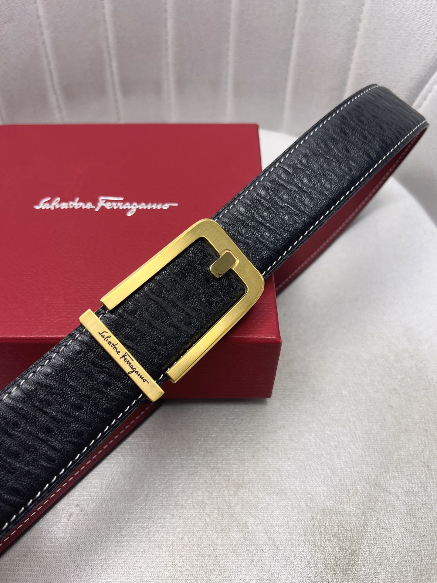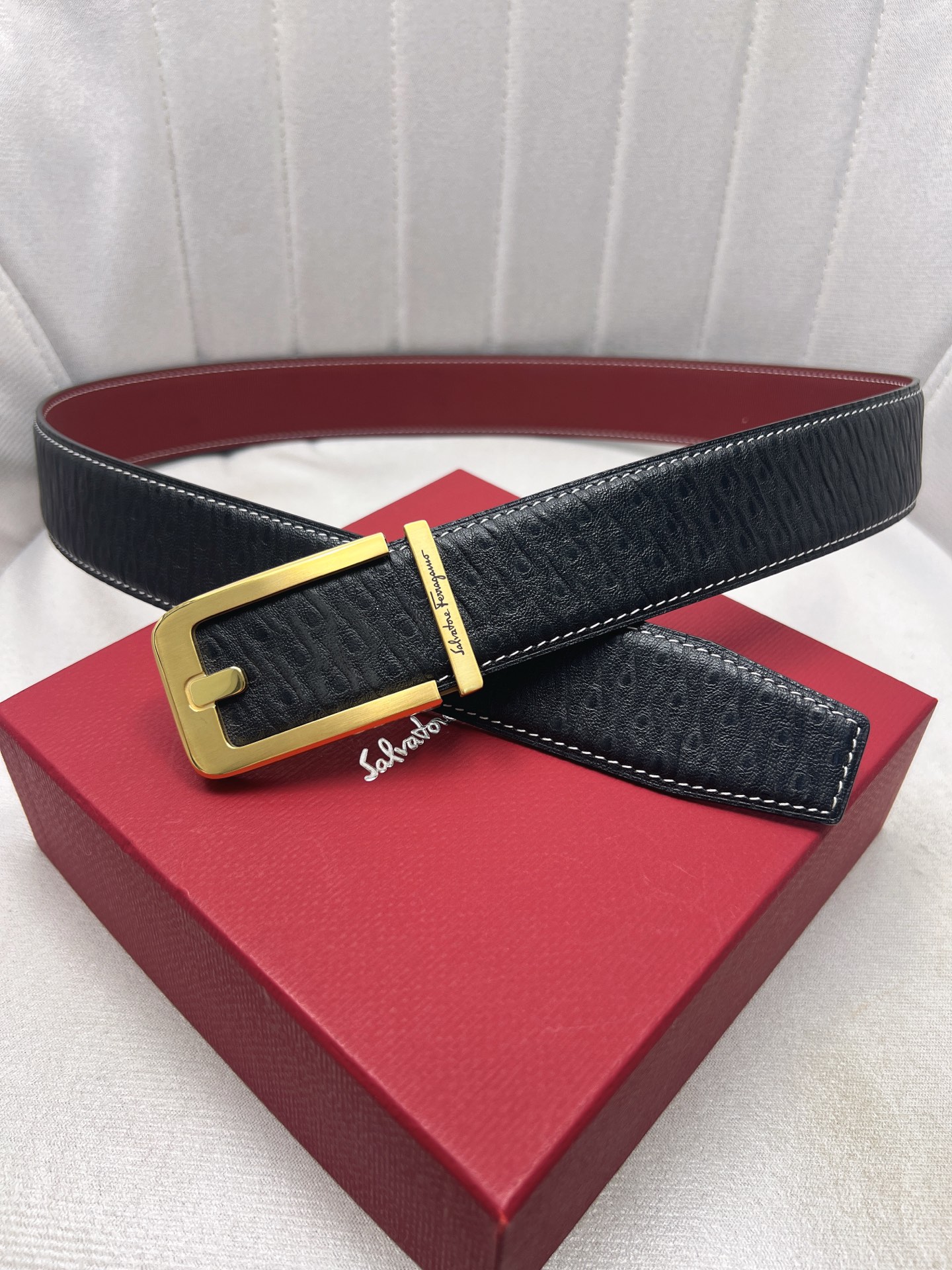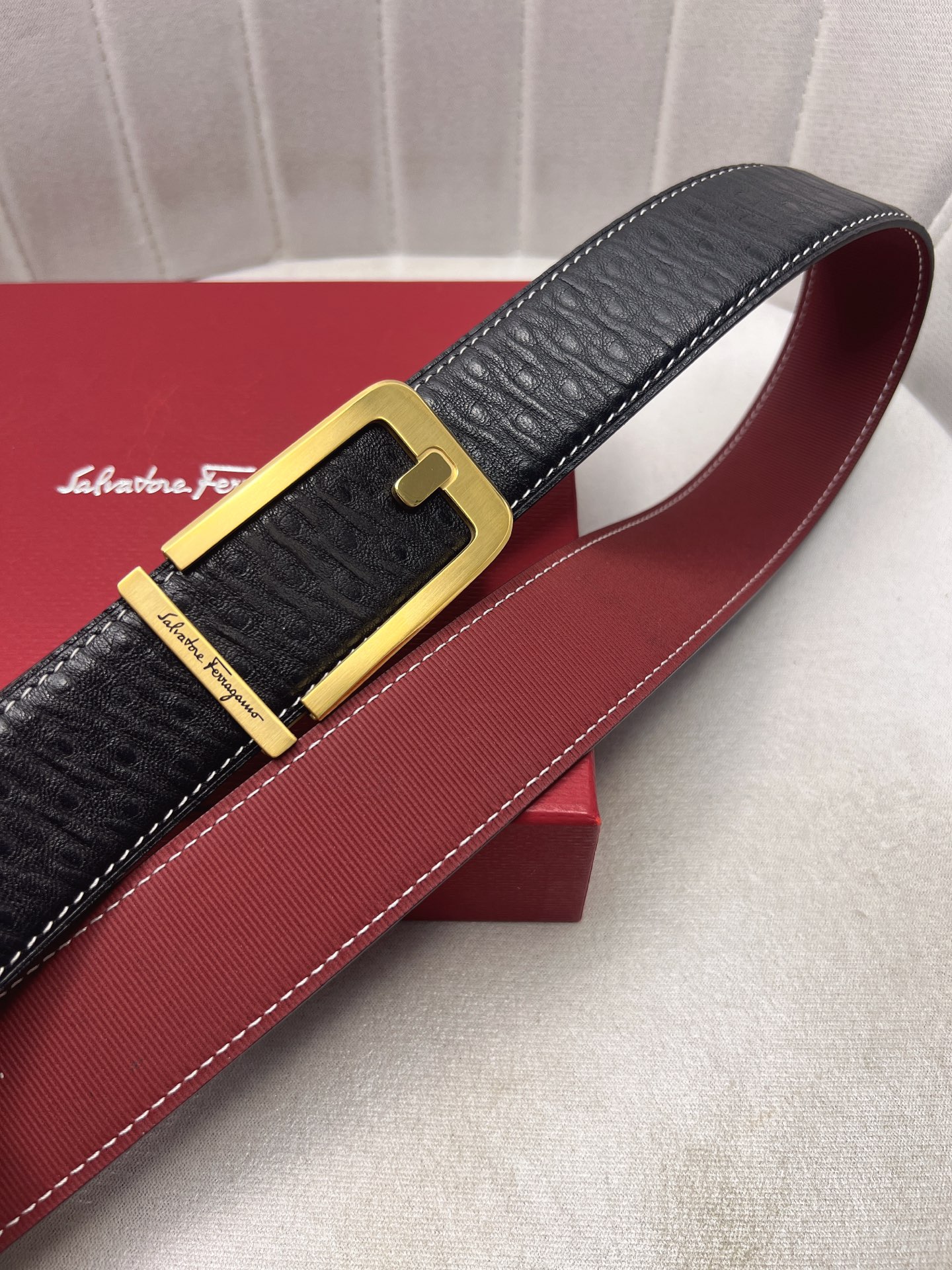 这款皮带是AAAAA 1:1 质量 (非常棒). 使用了和原版一模一样的材料. 商标部分也保持了和菲拉格慕/Salvatore Ferragamo一样. 图片拍摄是实物皮带拍摄, 您所收到的实物保证和我们图片一模一样.