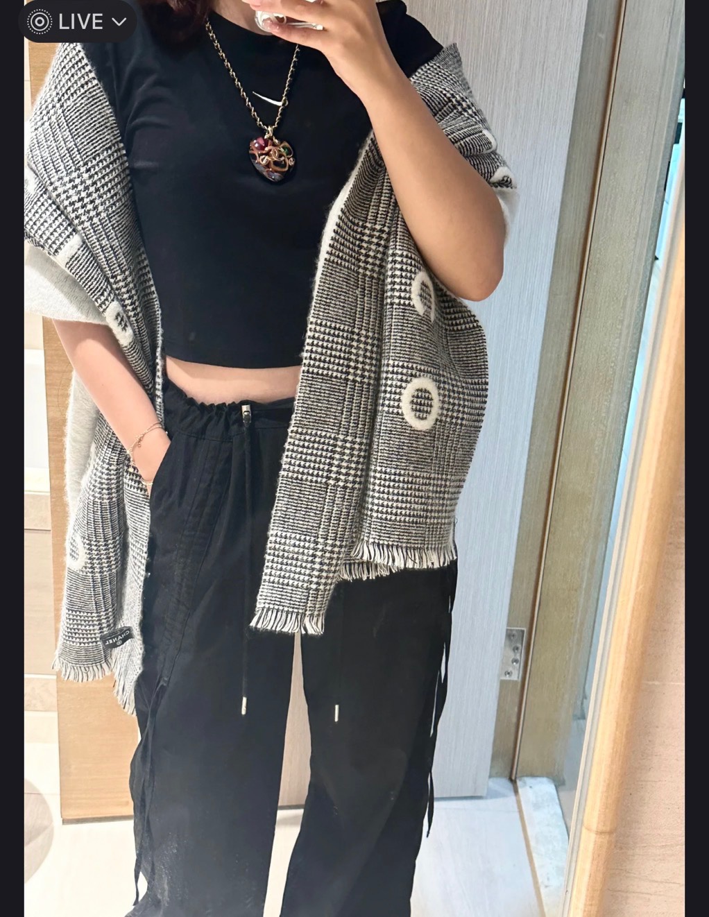 这款围巾是AAAAA 1:1 质量 (非常棒). 使用了和原版一模一样的材料. 商标部分也保持了和香奈儿/Chanel一样. 图片拍摄是实物围巾拍摄, 您所收到的实物保证和我们图片一模一样.