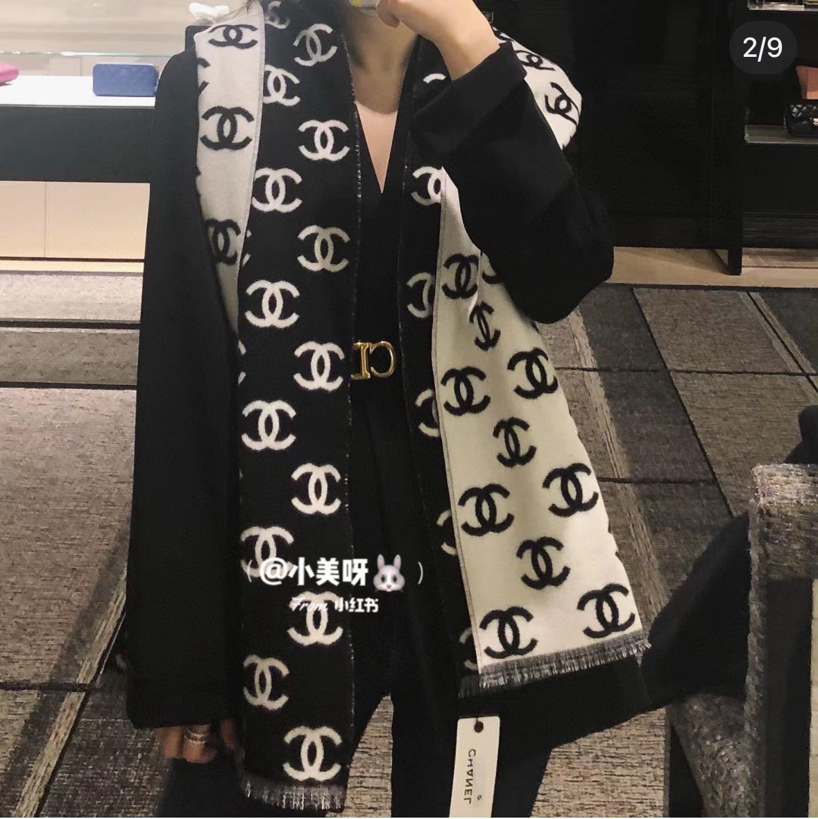 这款围巾是AAAAA 1:1 质量 (非常棒). 使用了和原版一模一样的材料. 商标部分也保持了和香奈儿/Chanel一样. 图片拍摄是实物围巾拍摄, 您所收到的实物保证和我们图片一模一样.