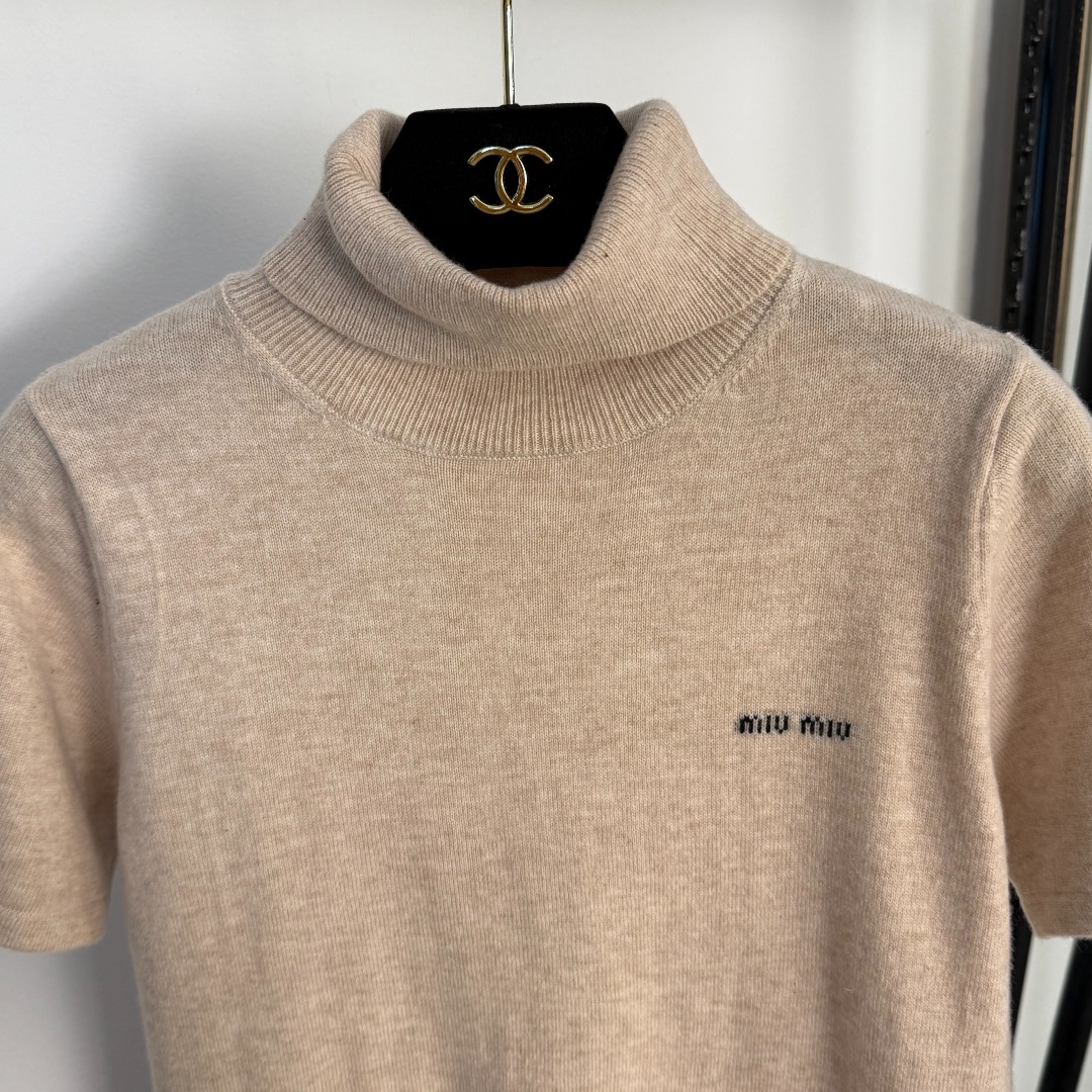 这款衣服是AAAAA 1:1 质量 (非常棒). 使用了和原版一模一样的材料. 商标部分也保持了和缪缪/Miu Miu一样. 图片拍摄是实物衣服拍摄, 您所收到的实物保证和我们图片一模一样.