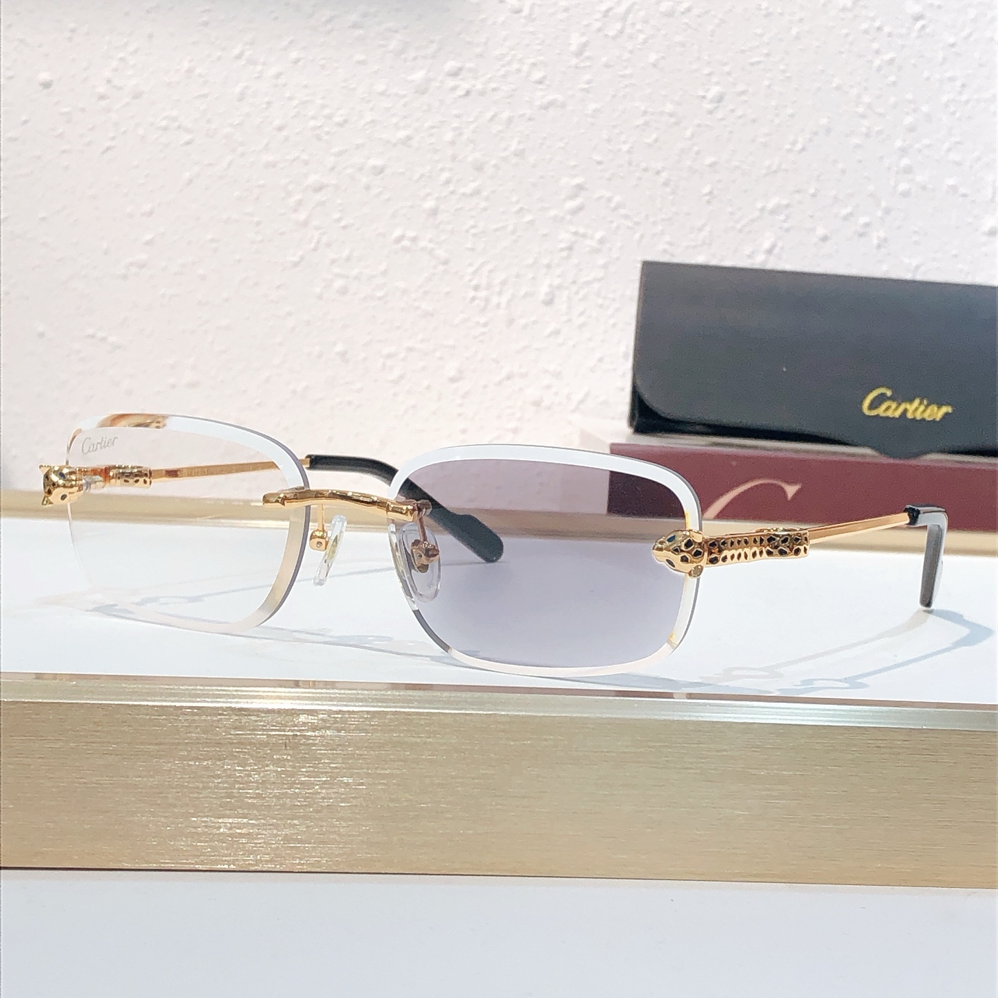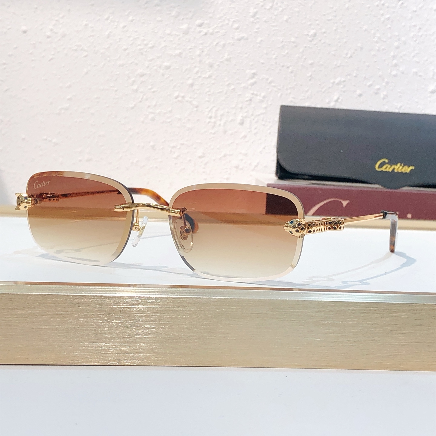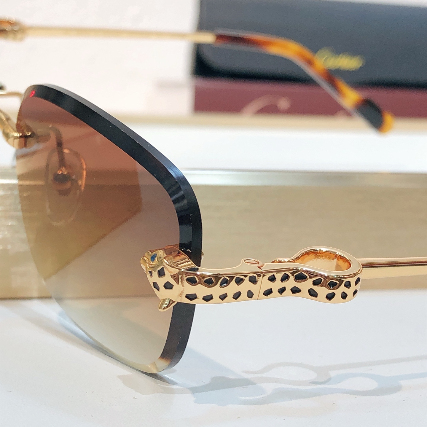 这款太阳眼镜是AAAAA 1:1 质量 (非常棒). 使用了和原版一模一样的材料. 商标部分也保持了和卡地亚/Cartier一样. 图片拍摄是实物太阳眼镜拍摄, 您所收到的实物保证和我们图片一模一样.