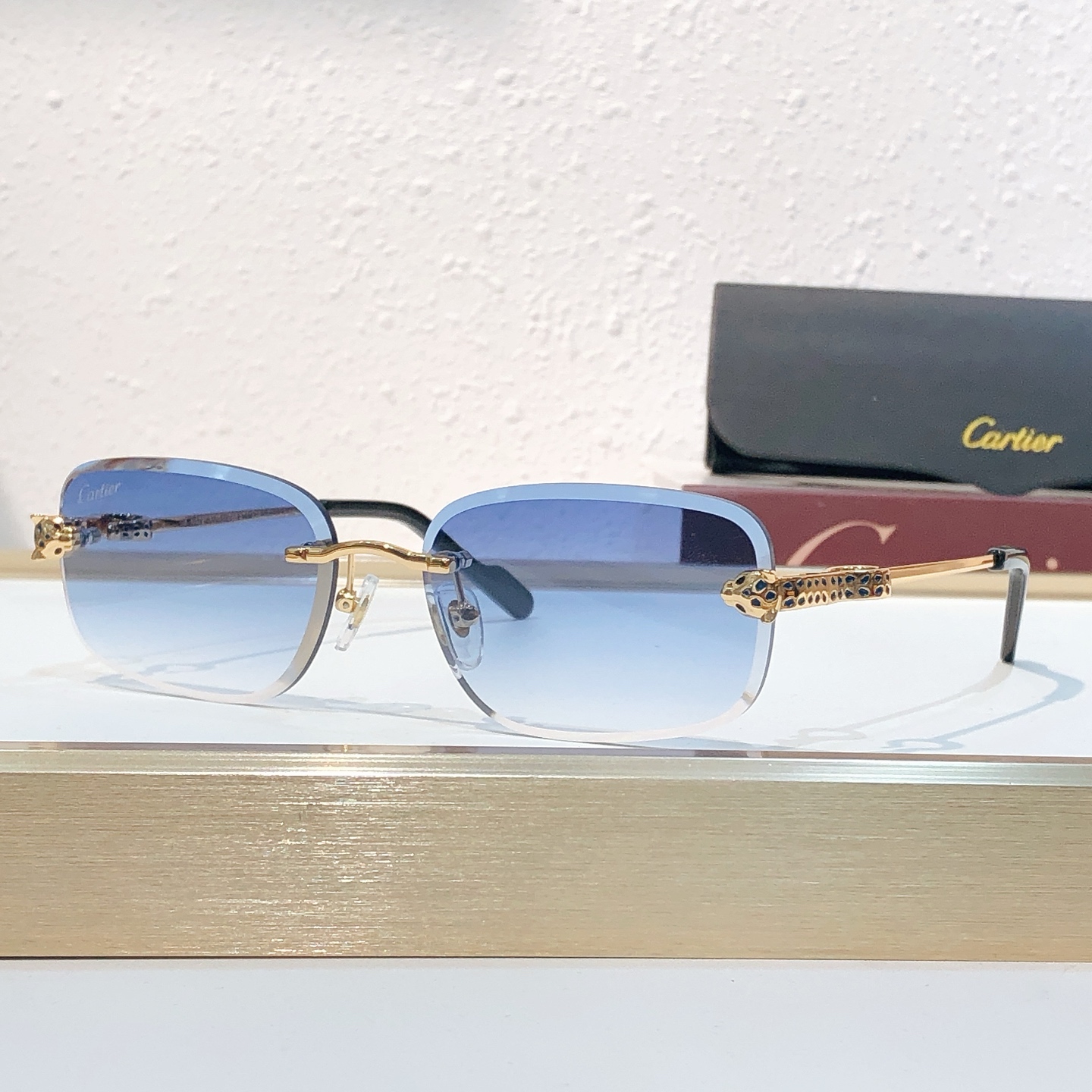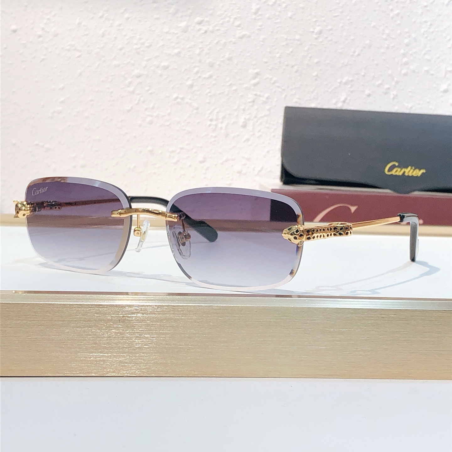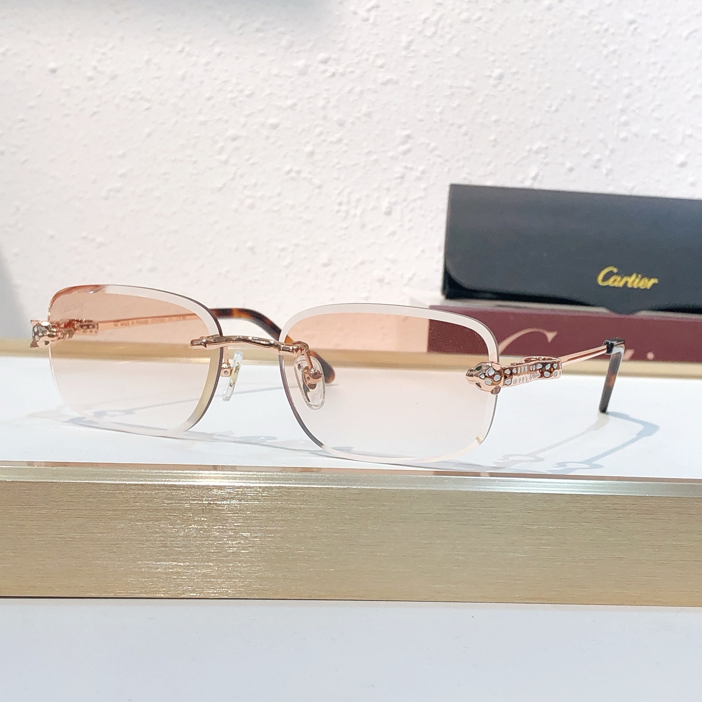 这款太阳眼镜是AAAAA 1:1 质量 (非常棒). 使用了和原版一模一样的材料. 商标部分也保持了和卡地亚/Cartier一样. 图片拍摄是实物太阳眼镜拍摄, 您所收到的实物保证和我们图片一模一样.
