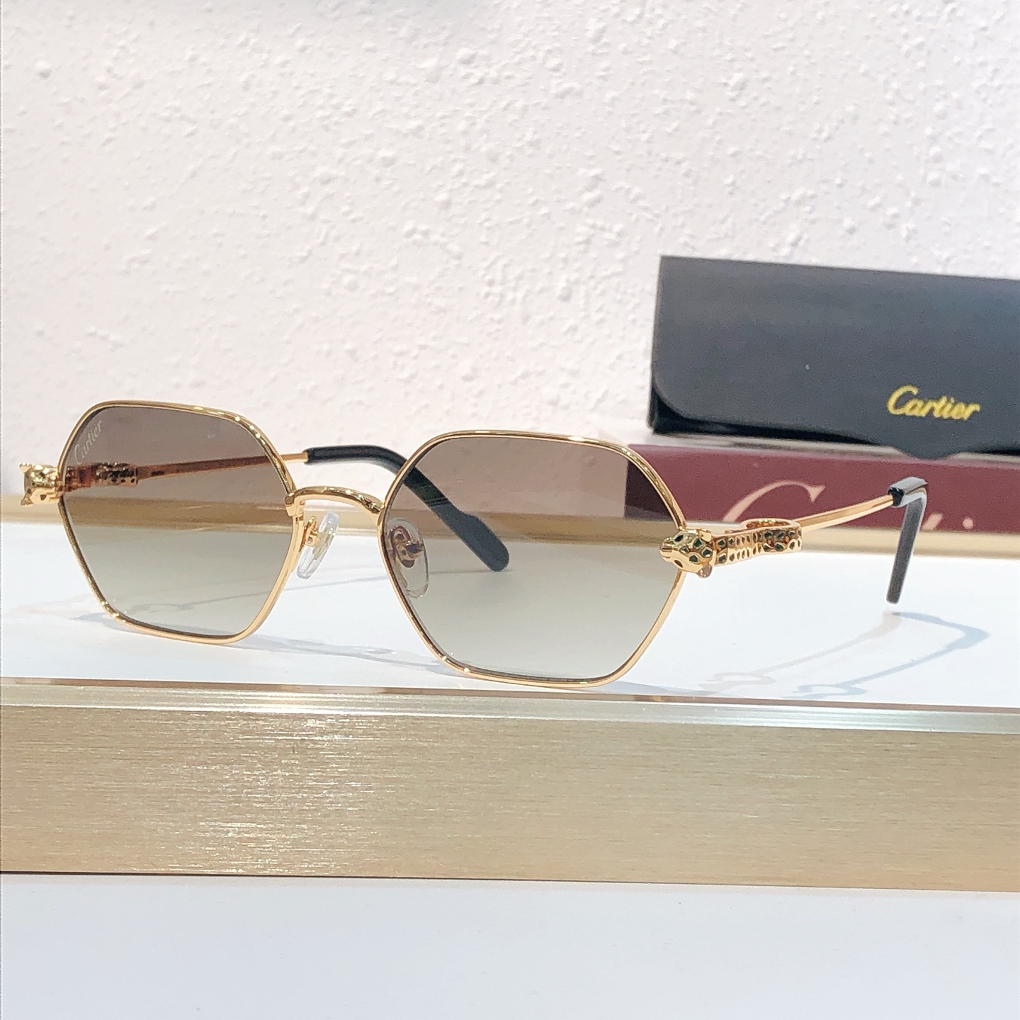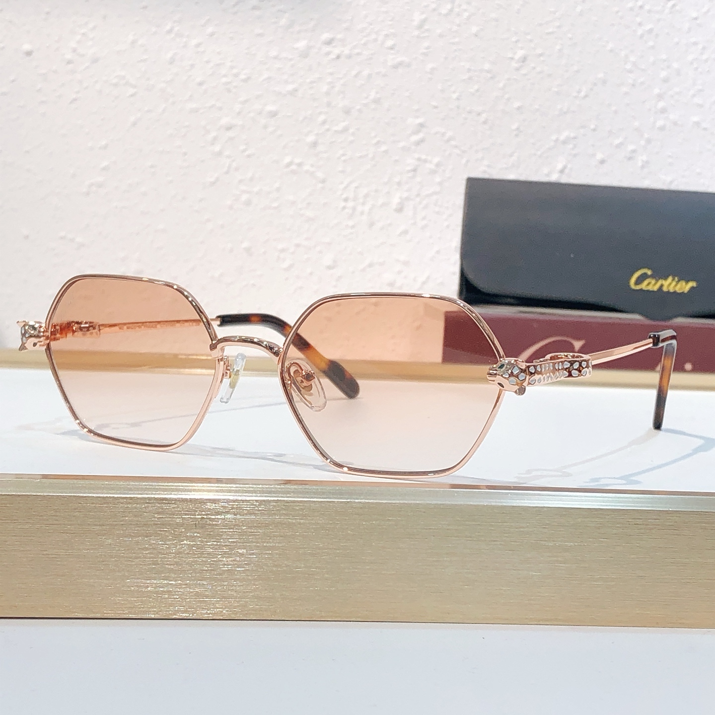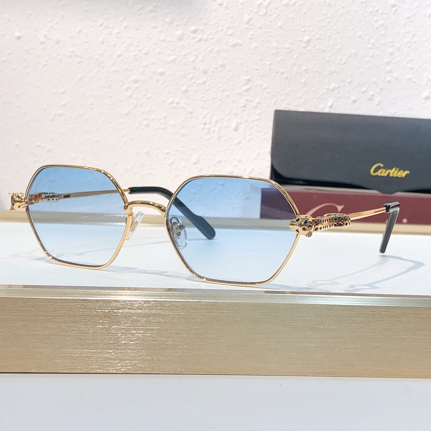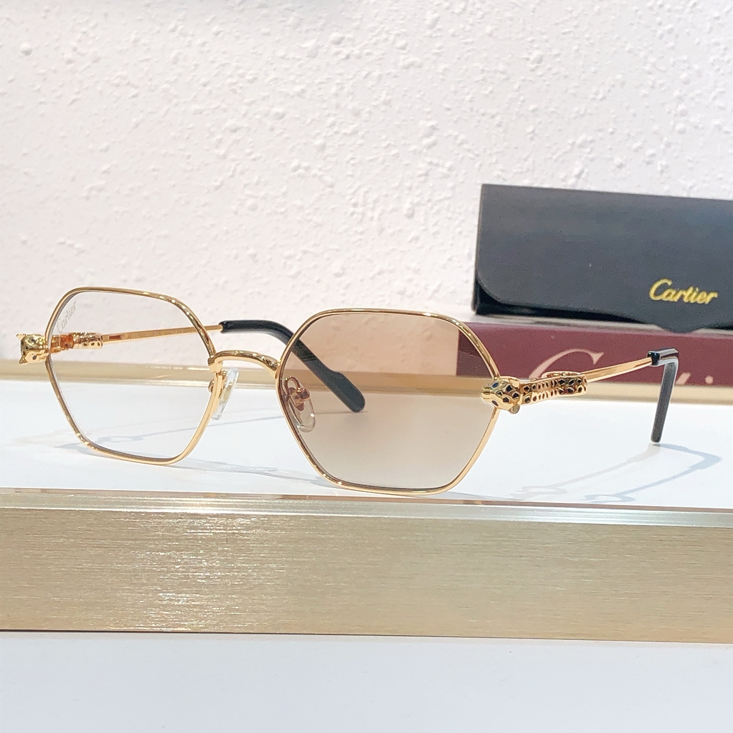 这款太阳眼镜是AAAAA 1:1 质量 (非常棒). 使用了和原版一模一样的材料. 商标部分也保持了和卡地亚/Cartier一样. 图片拍摄是实物太阳眼镜拍摄, 您所收到的实物保证和我们图片一模一样.