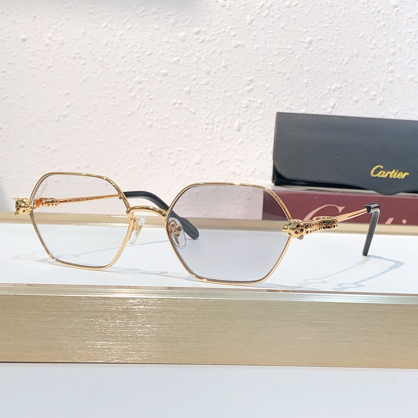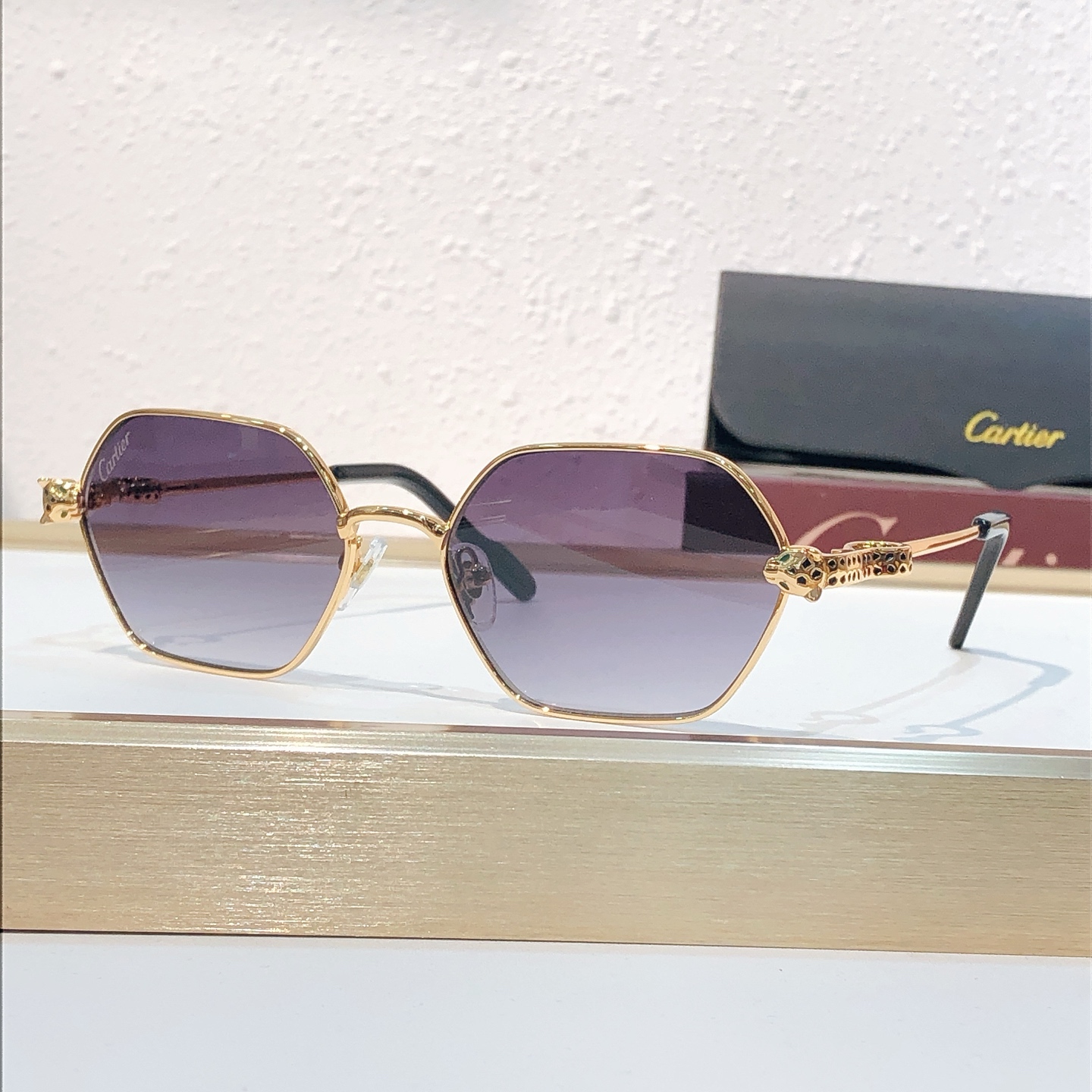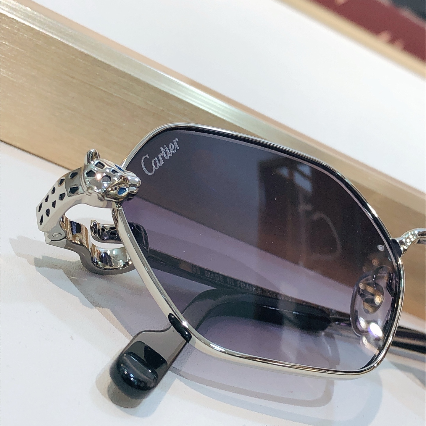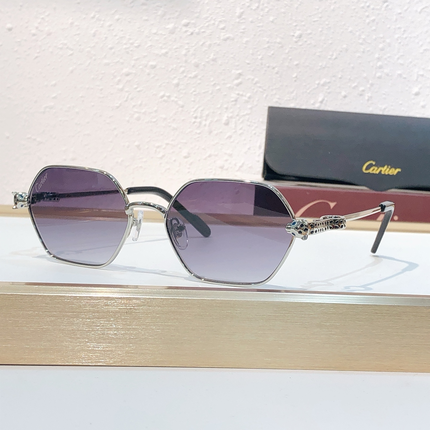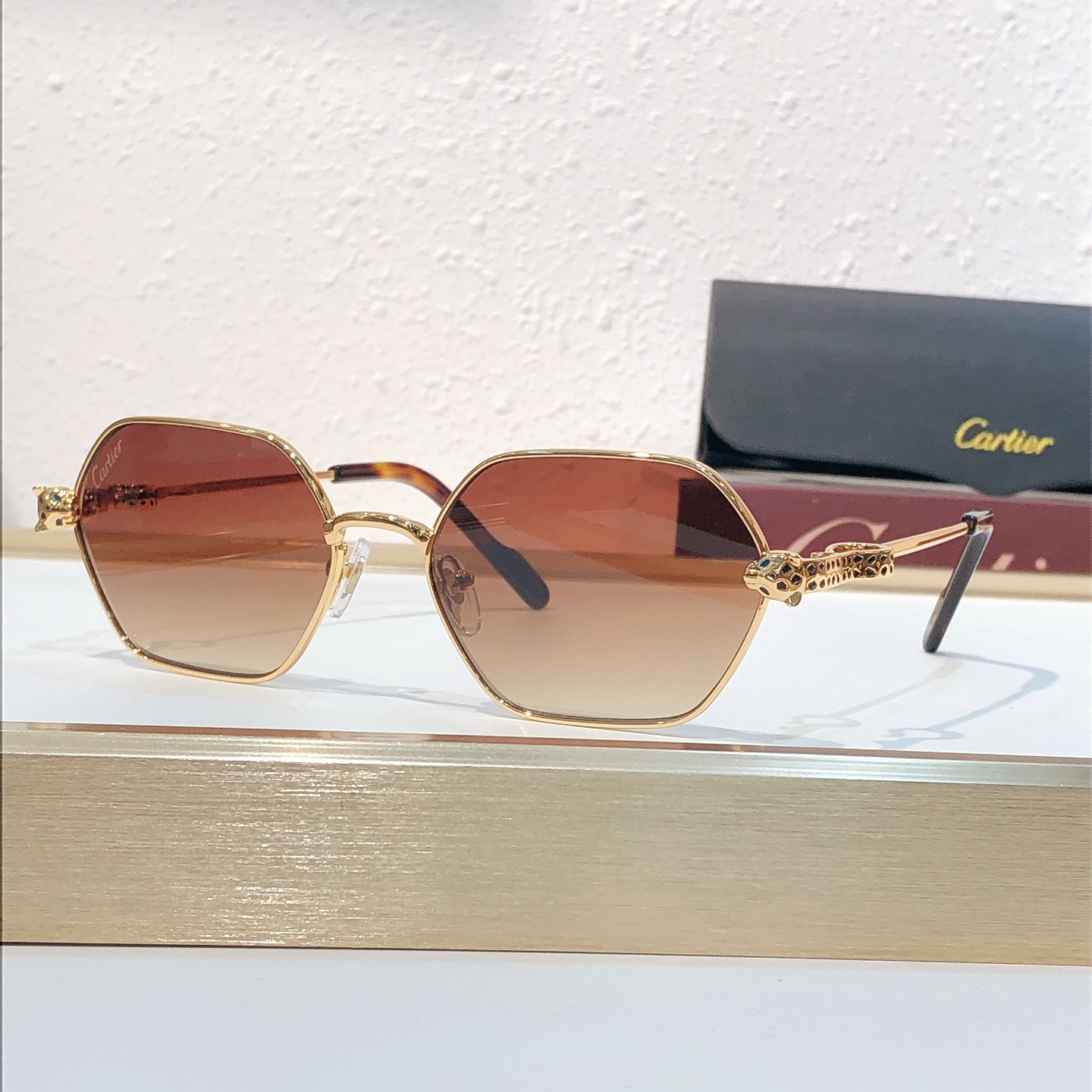 这款太阳眼镜是AAAAA 1:1 质量 (非常棒). 使用了和原版一模一样的材料. 商标部分也保持了和卡地亚/Cartier一样. 图片拍摄是实物太阳眼镜拍摄, 您所收到的实物保证和我们图片一模一样.