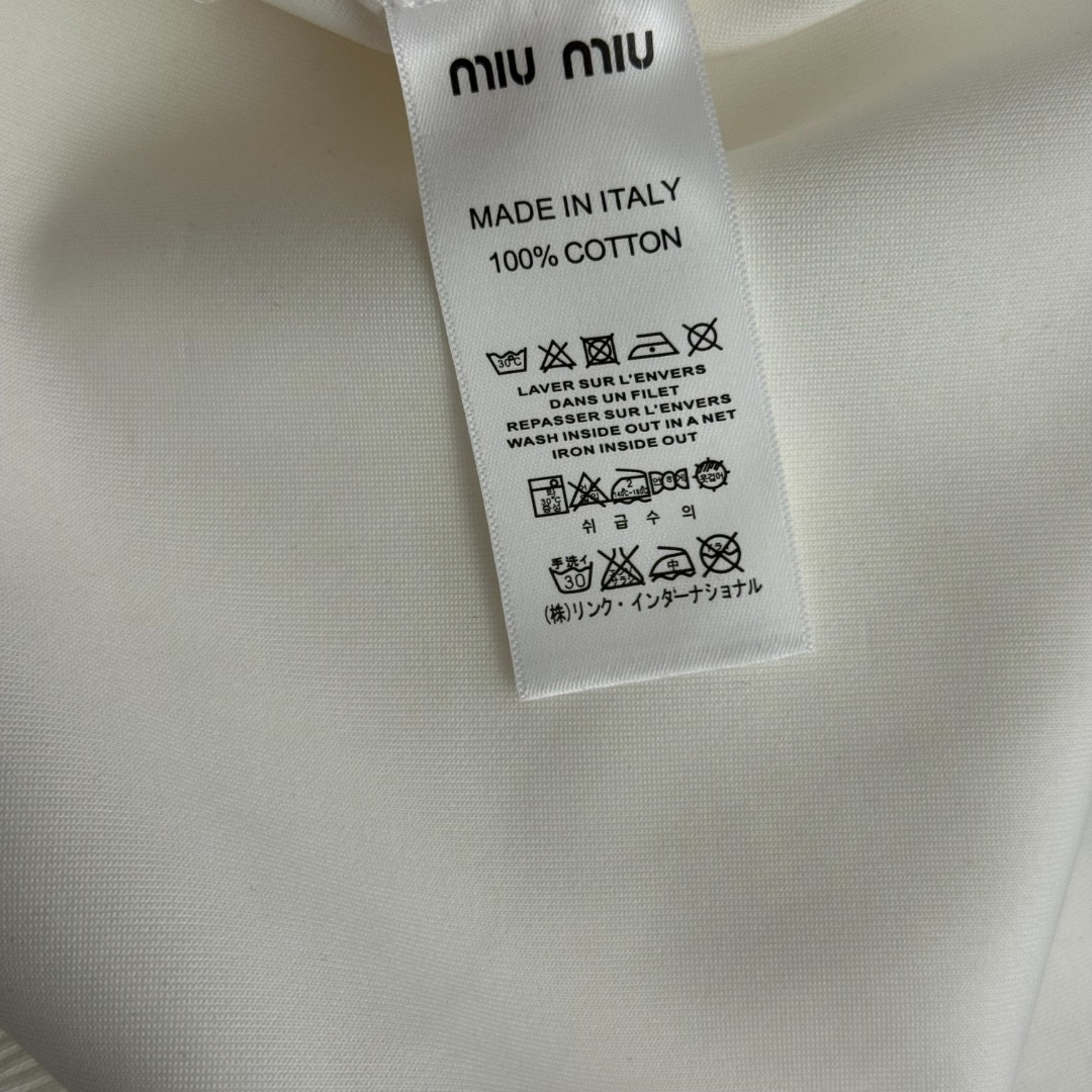 这款衣服是AAAAA 1:1 质量 (非常棒). 使用了和原版一模一样的材料. 商标部分也保持了和缪缪/Miu Miu一样. 图片拍摄是实物衣服拍摄, 您所收到的实物保证和我们图片一模一样.