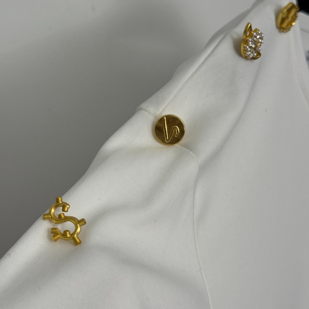 这款衣服是AAAAA 1:1 质量 (非常棒). 使用了和原版一模一样的材料. 商标部分也保持了和Schiaparelli一样. 图片拍摄是实物衣服拍摄, 您所收到的实物保证和我们图片一模一样.