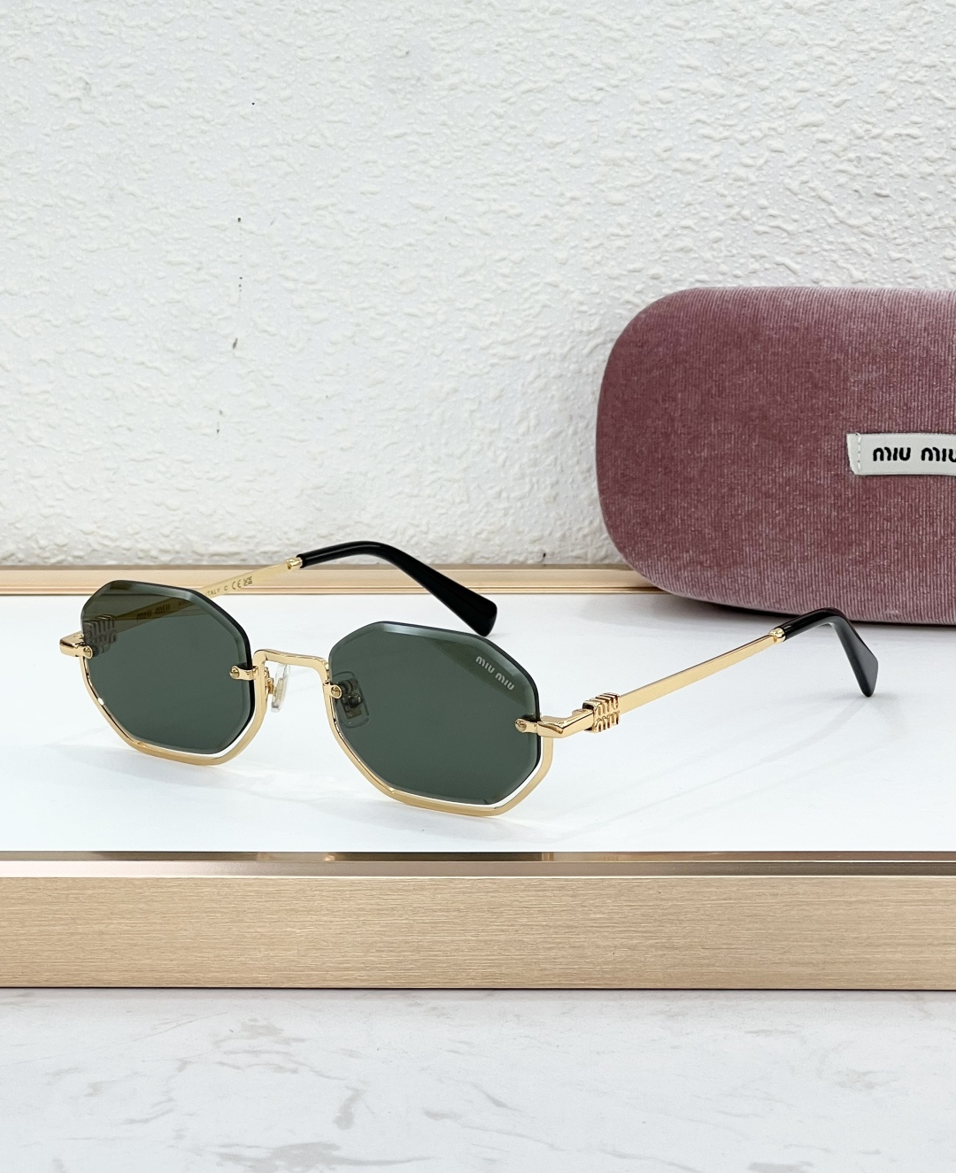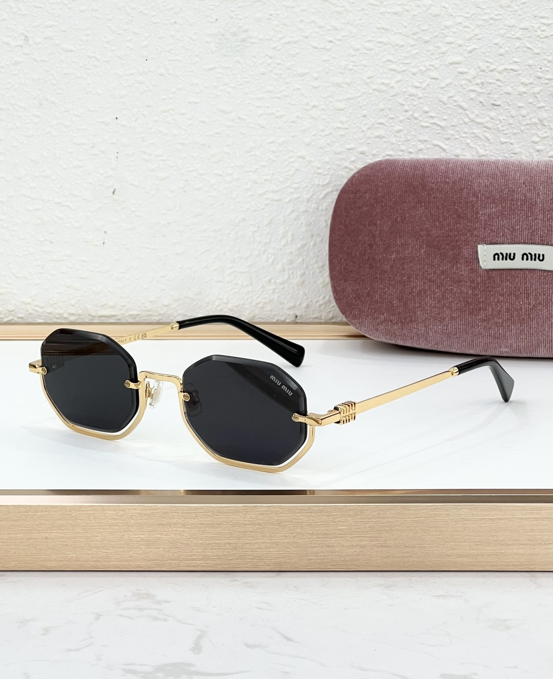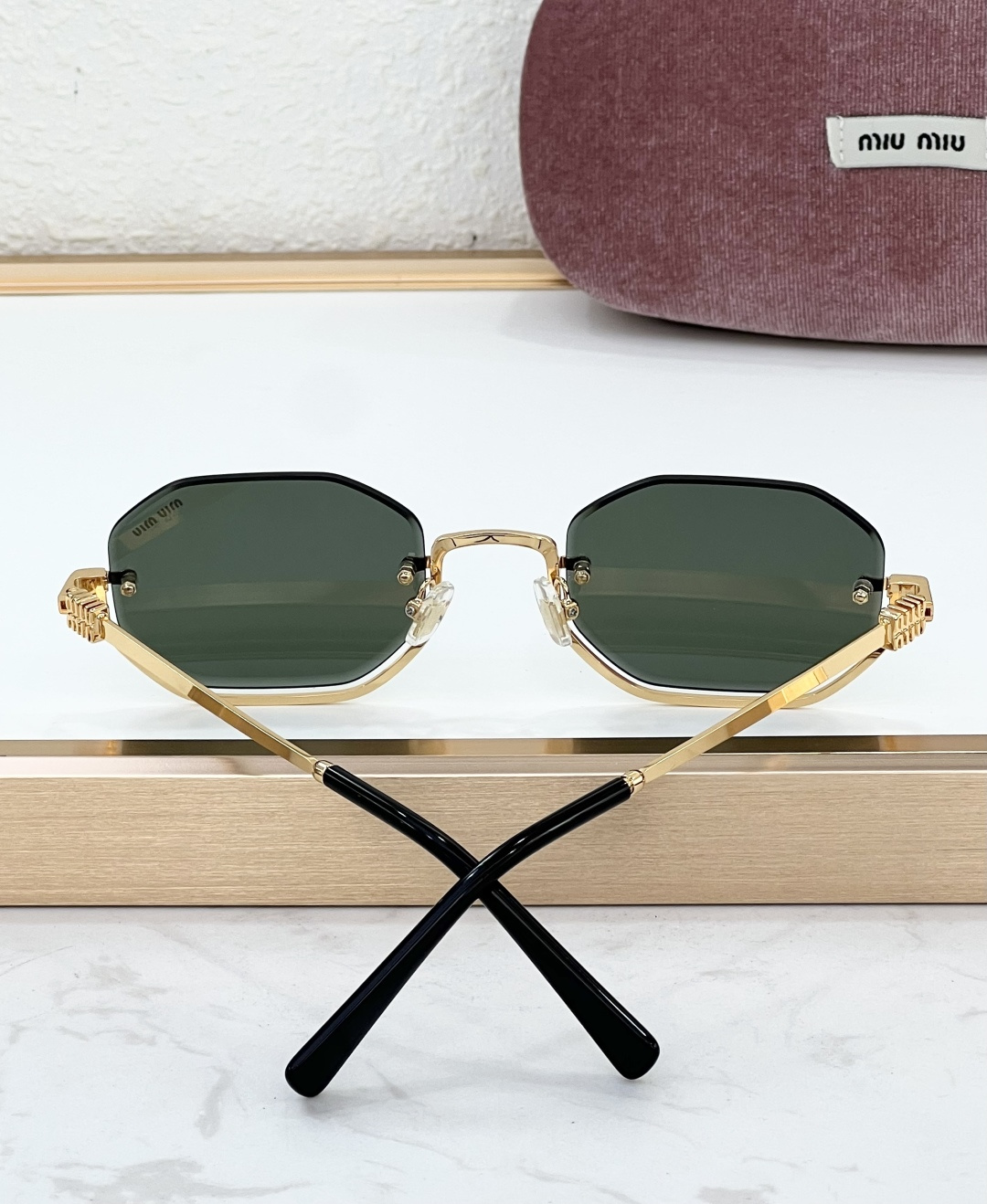 这款太阳眼镜是AAAAA 1:1 质量 (非常棒). 使用了和原版一模一样的材料. 商标部分也保持了和缪缪/Miu Miu一样. 图片拍摄是实物太阳眼镜拍摄, 您所收到的实物保证和我们图片一模一样.