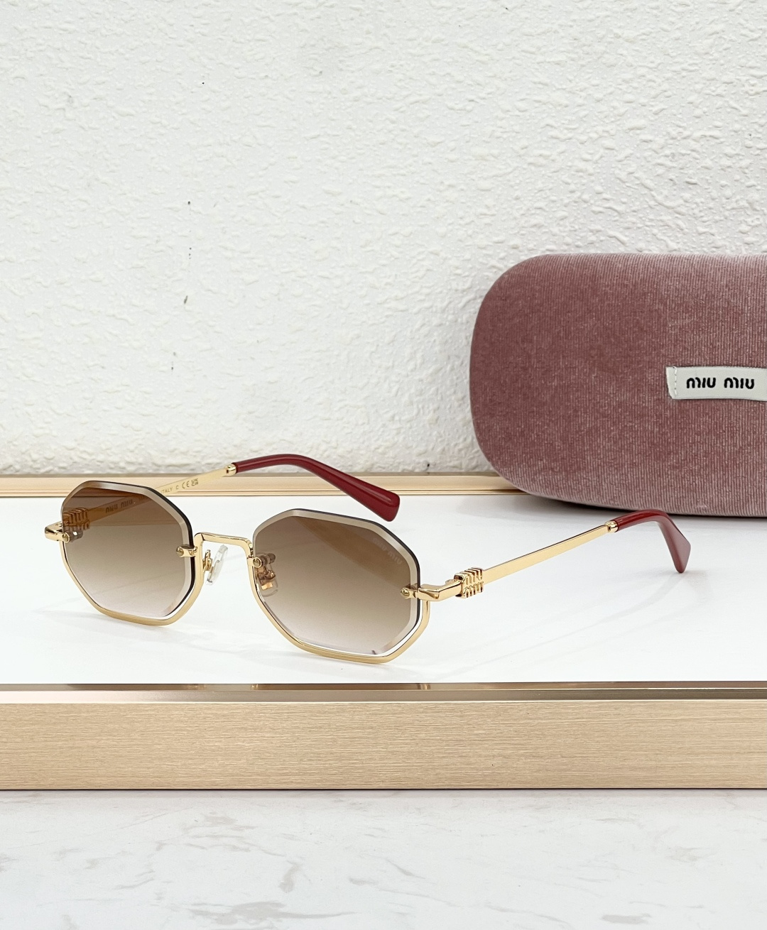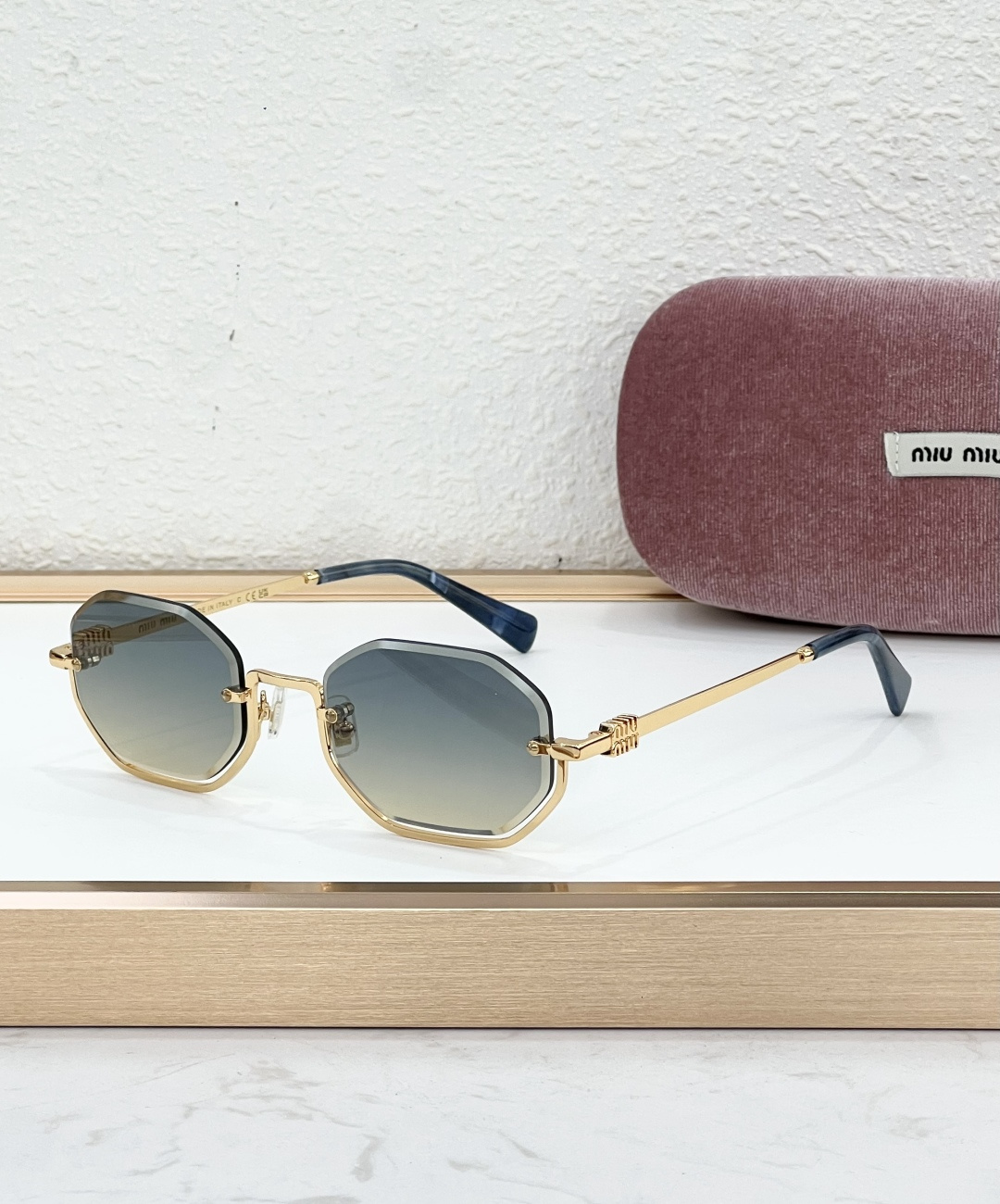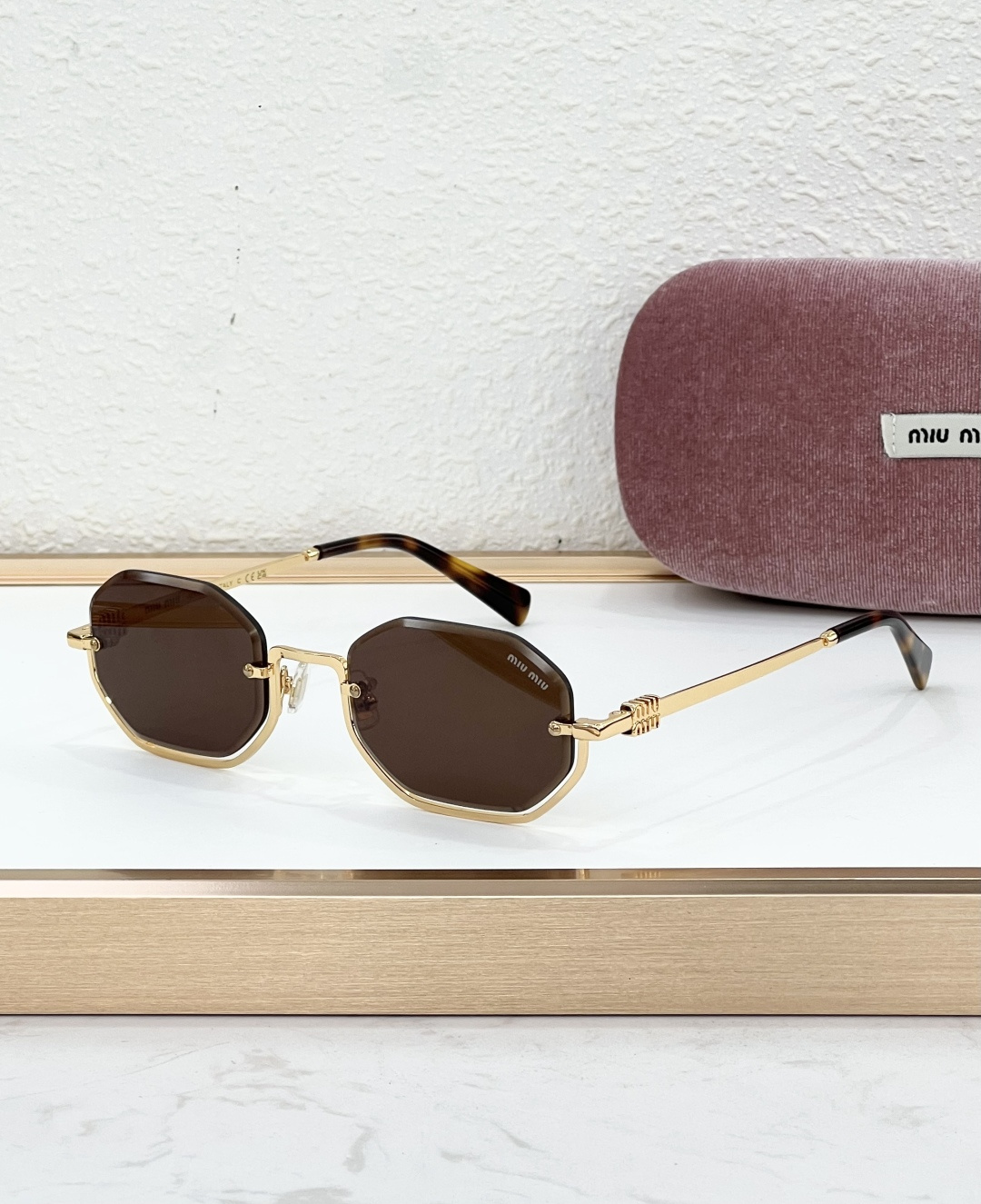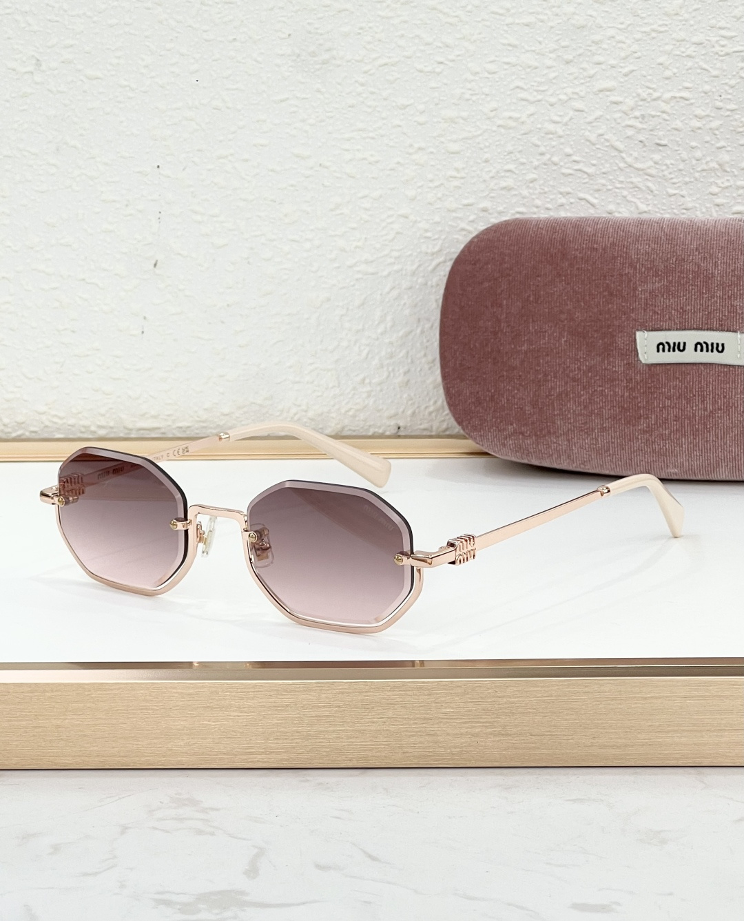 这款太阳眼镜是AAAAA 1:1 质量 (非常棒). 使用了和原版一模一样的材料. 商标部分也保持了和缪缪/Miu Miu一样. 图片拍摄是实物太阳眼镜拍摄, 您所收到的实物保证和我们图片一模一样.