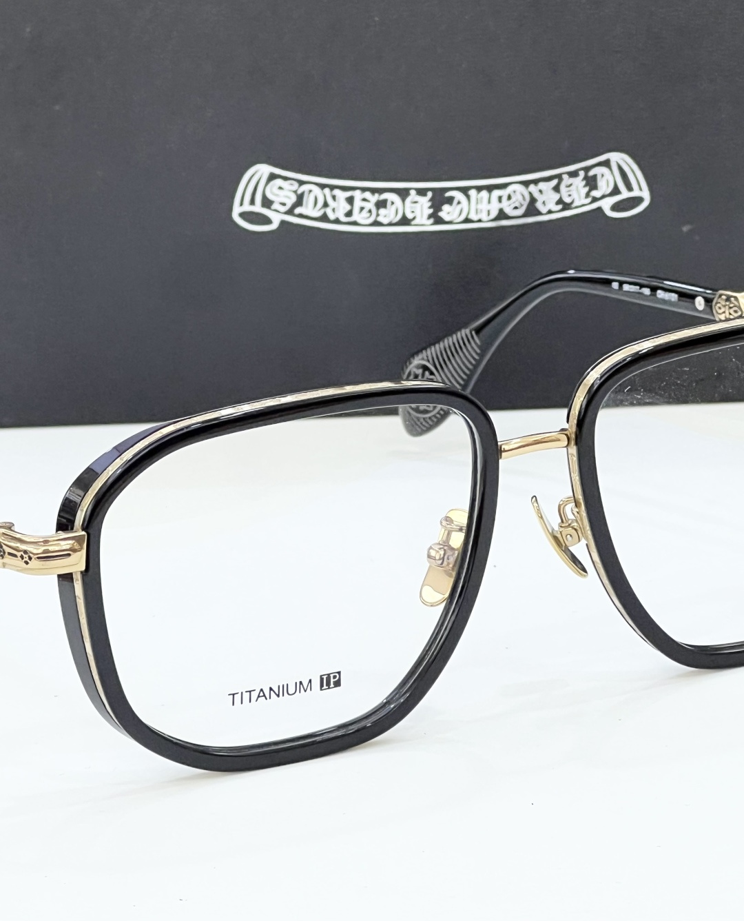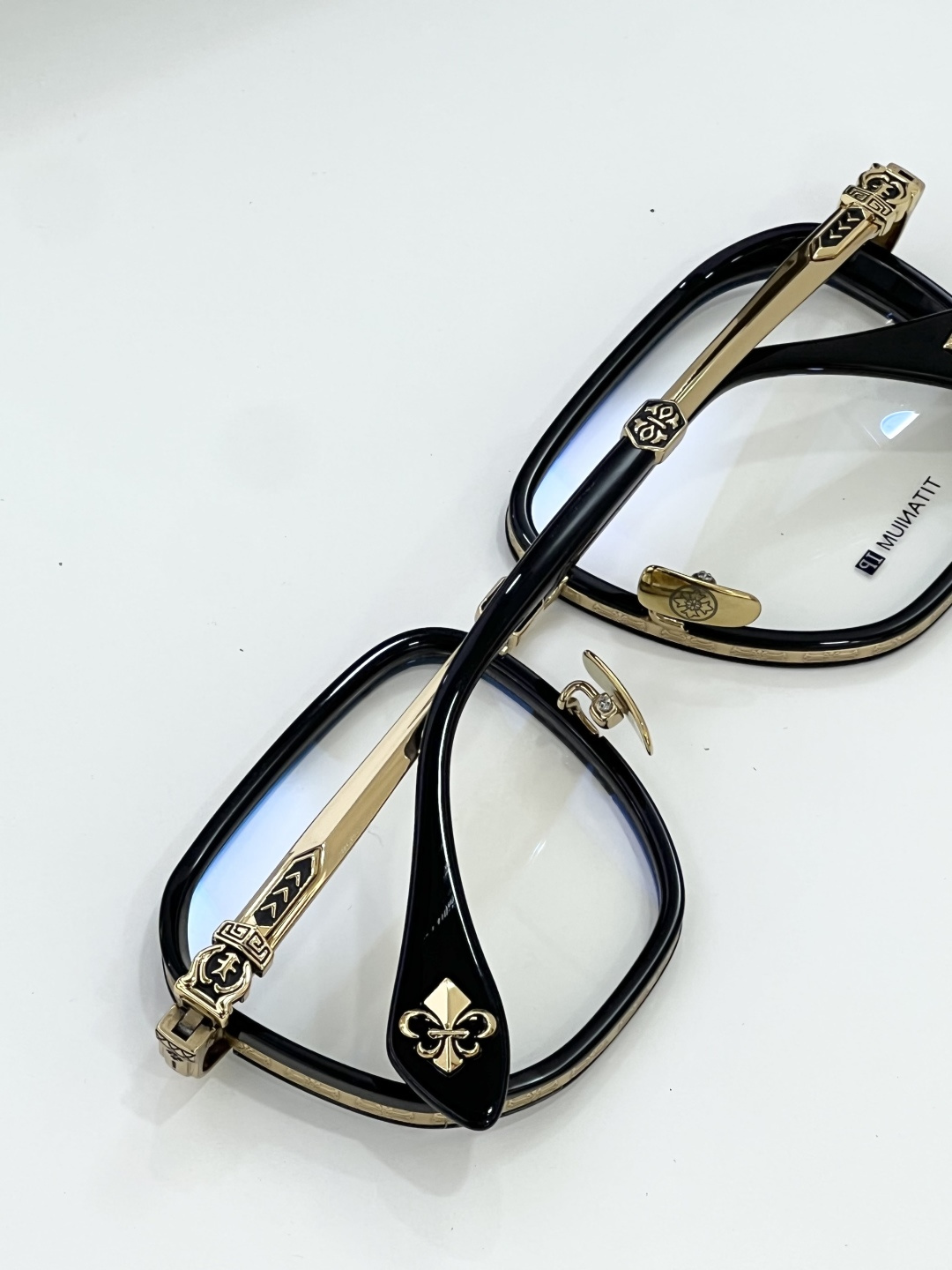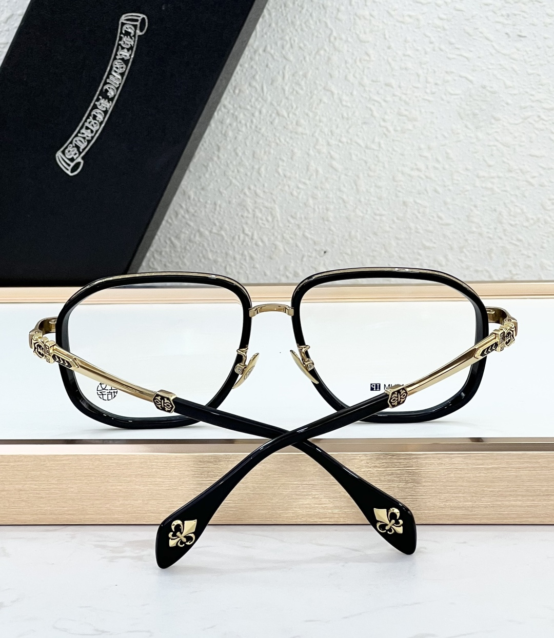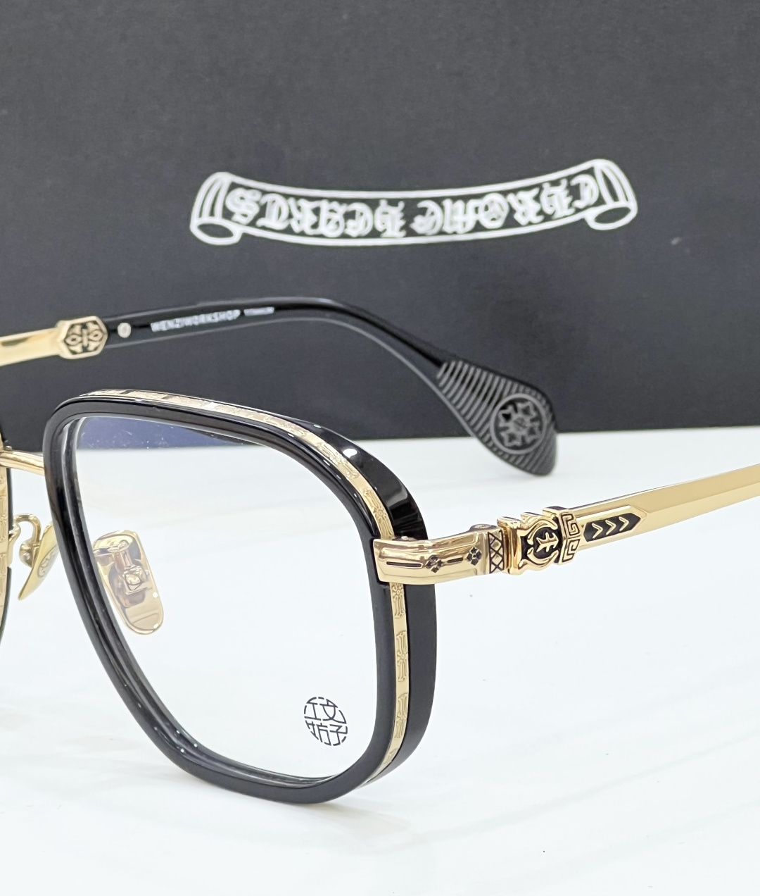 这款太阳眼镜是AAAAA 1:1 质量 (非常棒). 使用了和原版一模一样的材料. 商标部分也保持了和克罗心/Chrome Hearts一样. 图片拍摄是实物太阳眼镜拍摄, 您所收到的实物保证和我们图片一模一样.