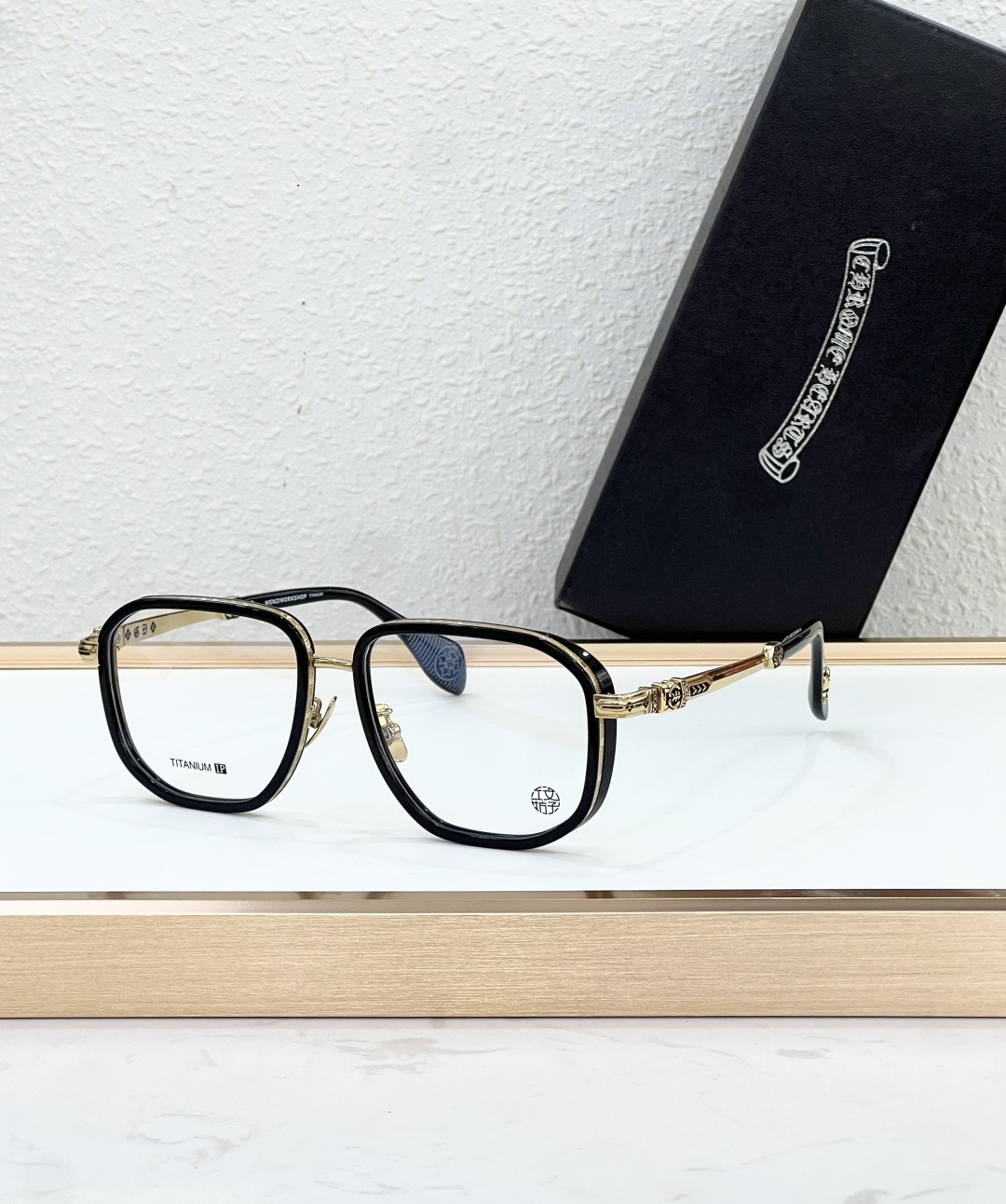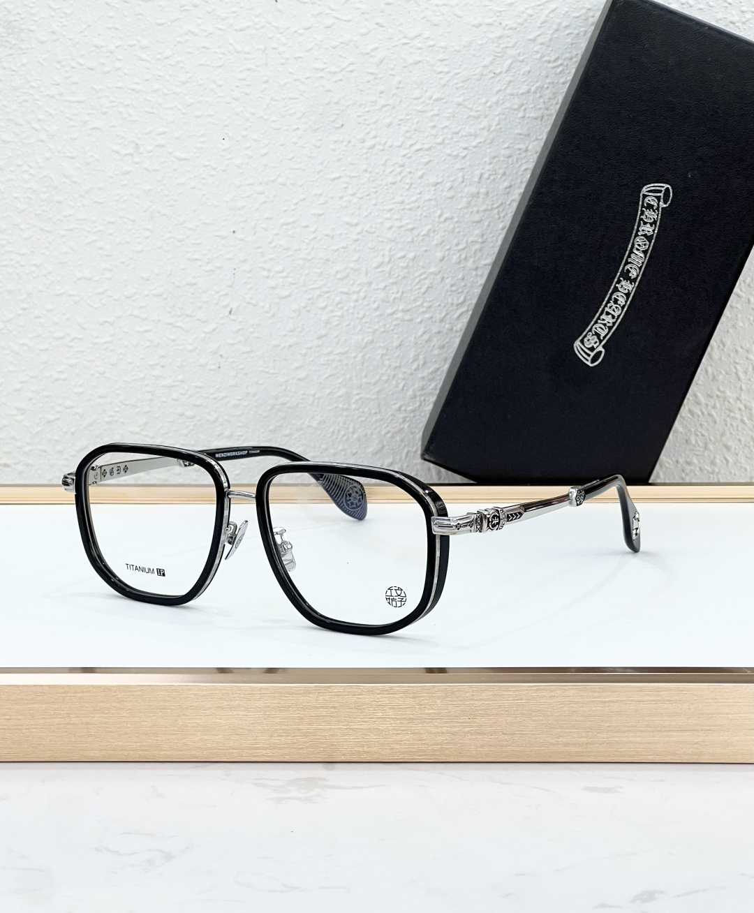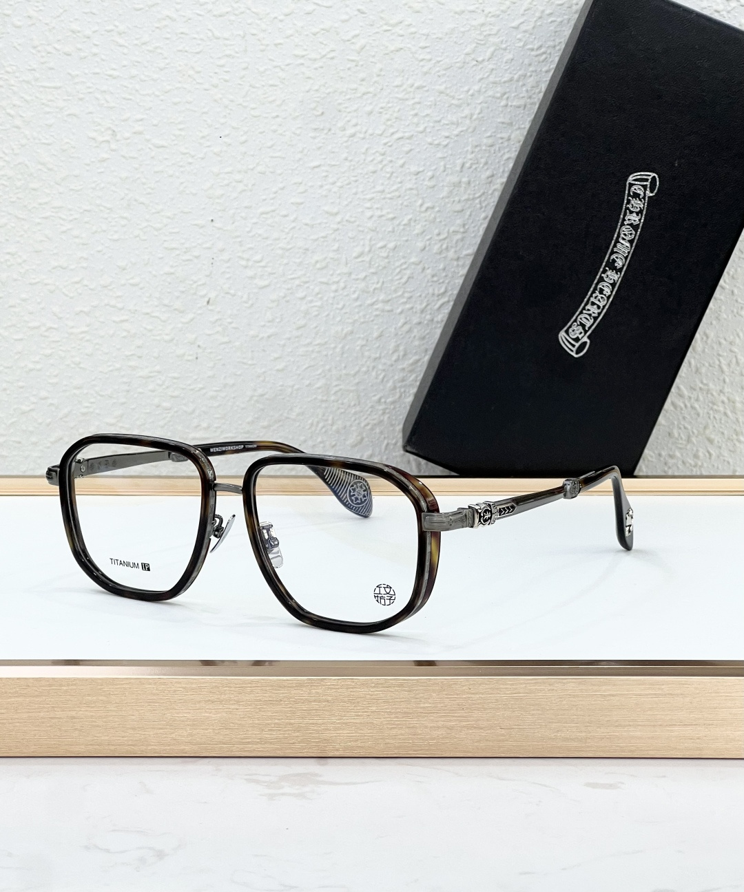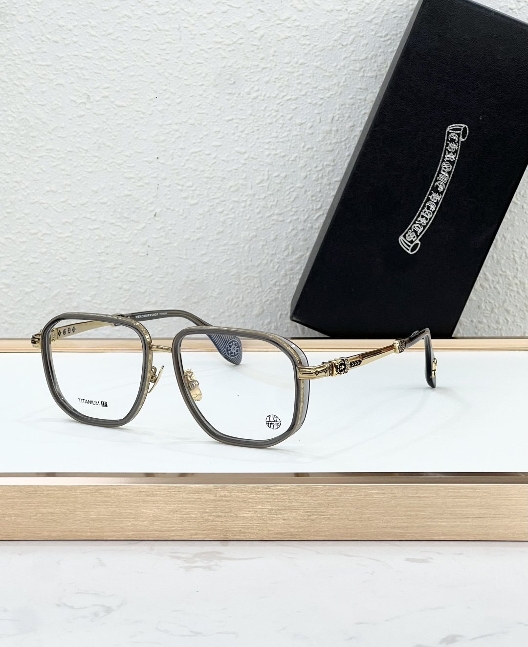 这款太阳眼镜是AAAAA 1:1 质量 (非常棒). 使用了和原版一模一样的材料. 商标部分也保持了和克罗心/Chrome Hearts一样. 图片拍摄是实物太阳眼镜拍摄, 您所收到的实物保证和我们图片一模一样.