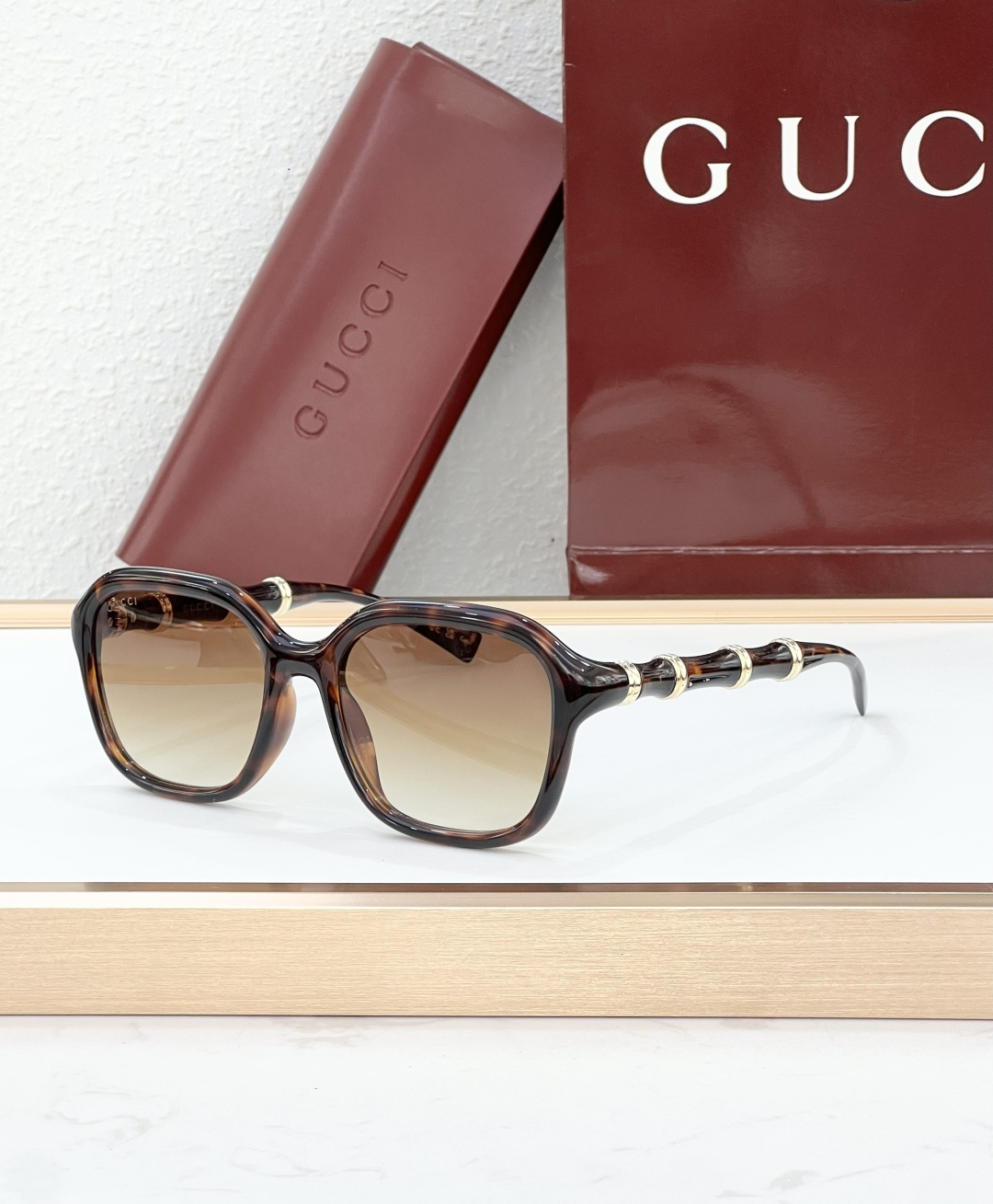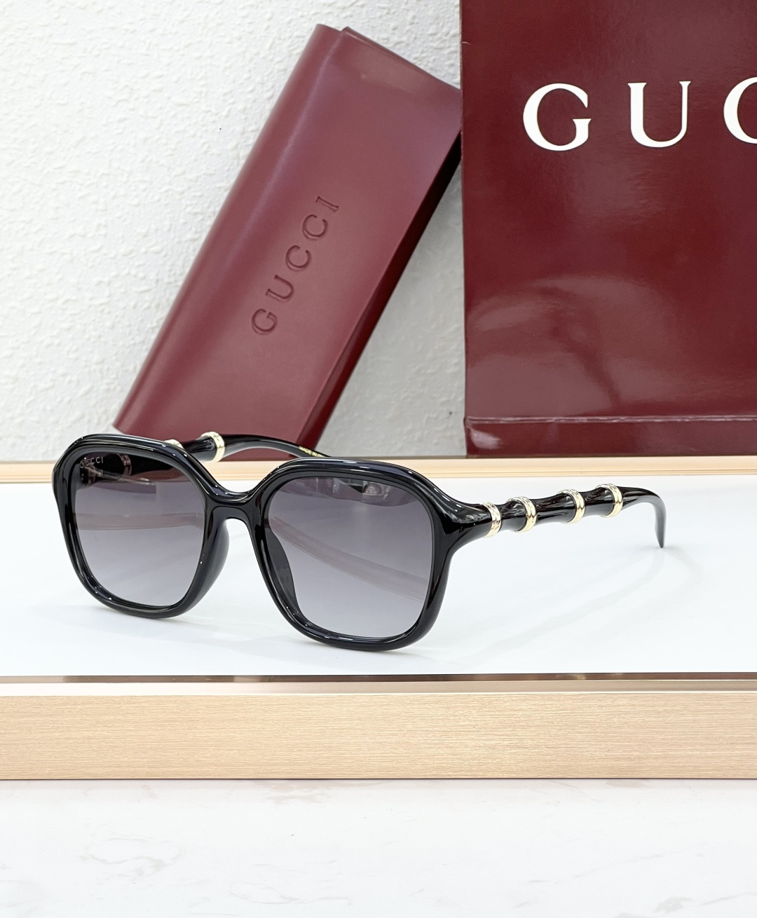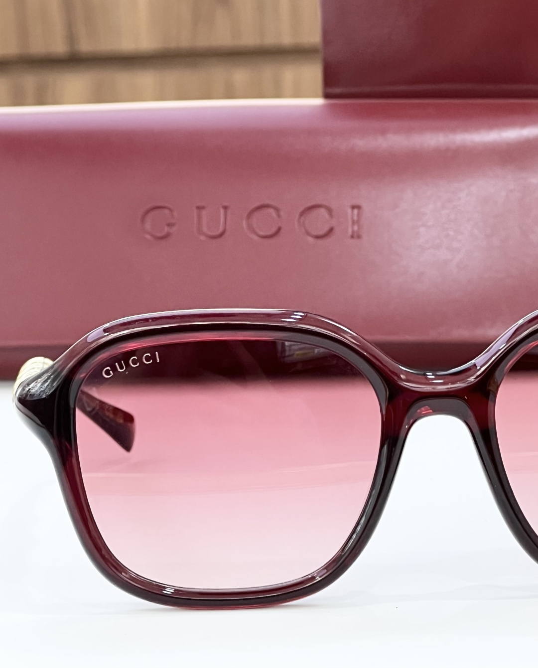 这款太阳眼镜是AAAAA 1:1 质量 (非常棒). 使用了和原版一模一样的材料. 商标部分也保持了和古奇/Gucci一样. 图片拍摄是实物太阳眼镜拍摄, 您所收到的实物保证和我们图片一模一样.