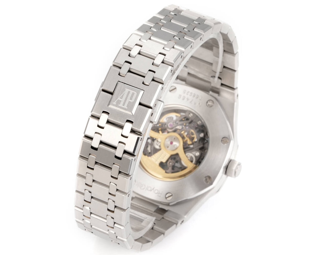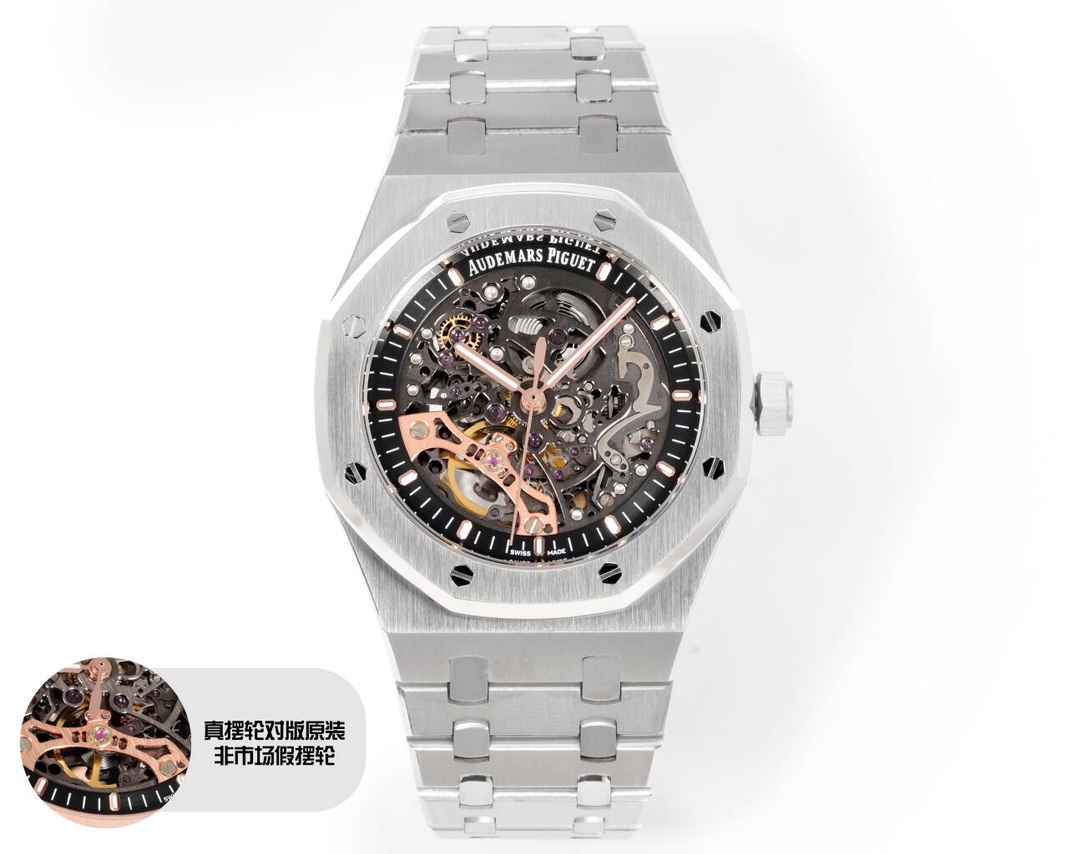 这款手表是AAAAA 1:1 质量 (非常棒). 使用了和原版一模一样的材料. 商标部分也保持了和爱彼/Audemars Piguet一样. 图片拍摄是实物手表拍摄, 您所收到的实物保证和我们图片一模一样.