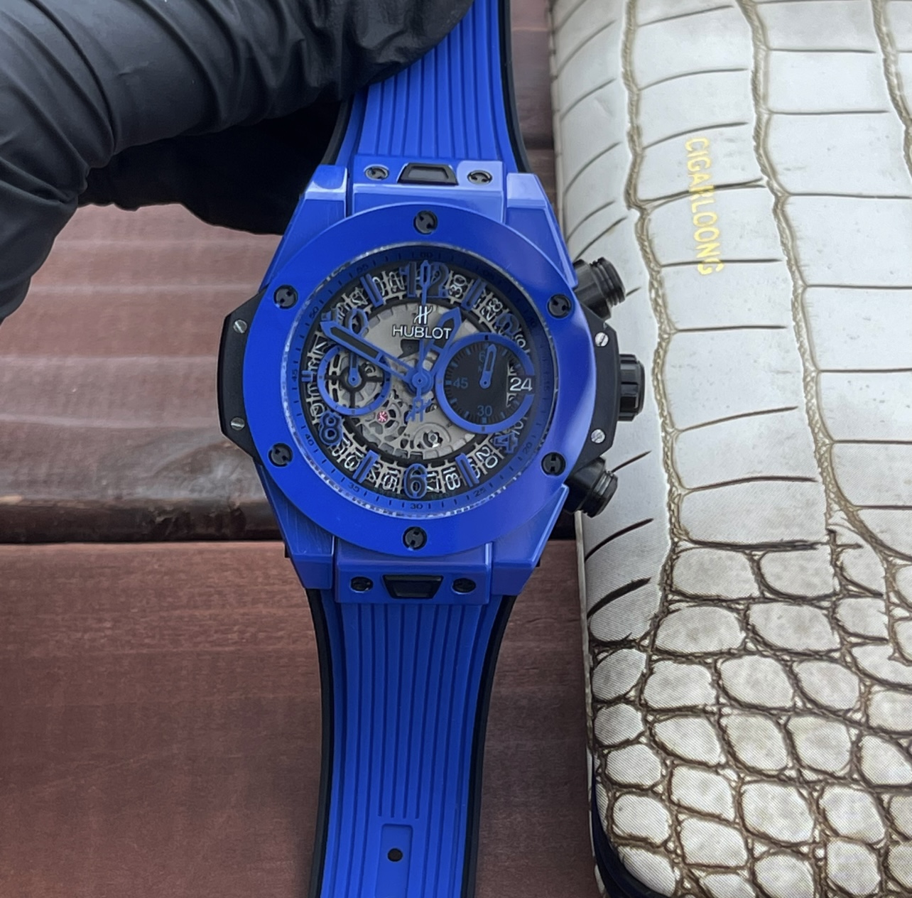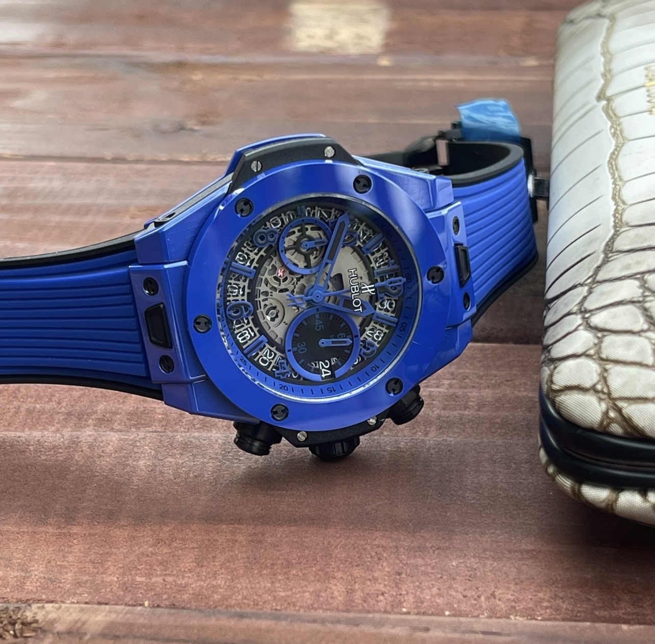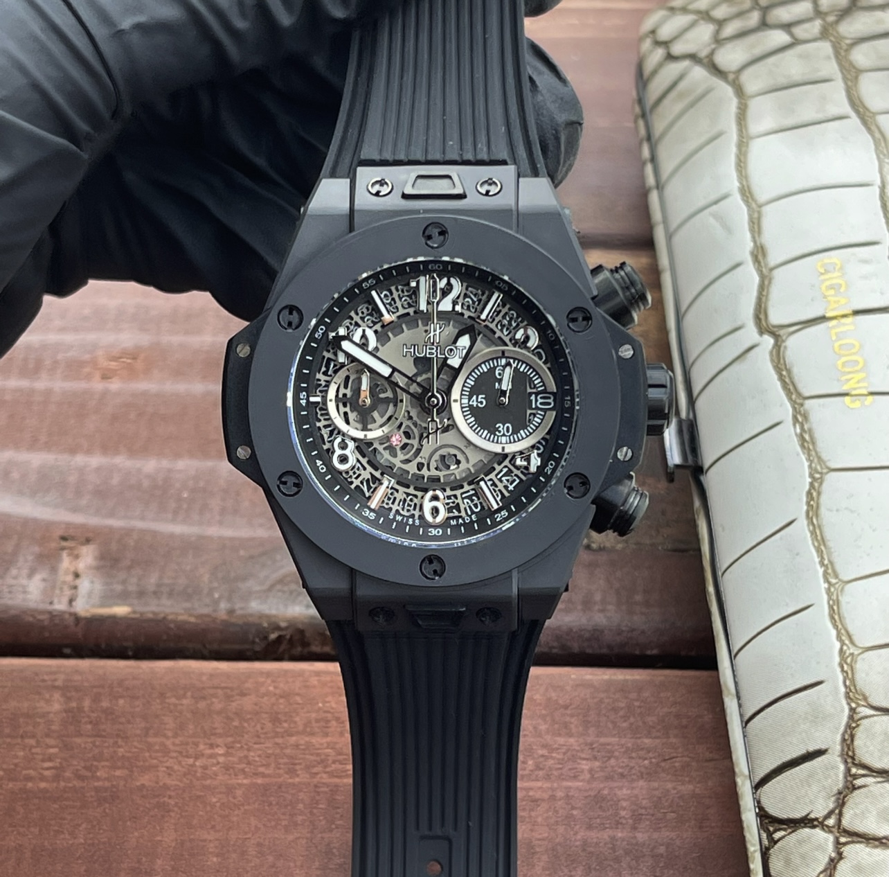 这款手表是AAAAA 1:1 质量 (非常棒). 使用了和原版一模一样的材料. 商标部分也保持了和Hublot一样. 图片拍摄是实物手表拍摄, 您所收到的实物保证和我们图片一模一样.