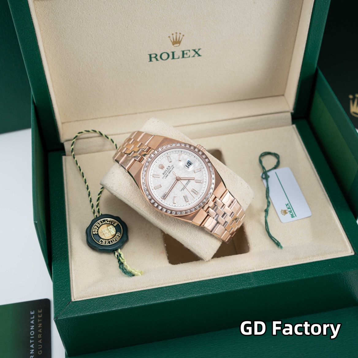 这款手表是AAAAA 1:1 质量 (非常棒). 使用了和原版一模一样的材料. 商标部分也保持了和Chaumet一样. 图片拍摄是实物手表拍摄, 您所收到的实物保证和我们图片一模一样.
