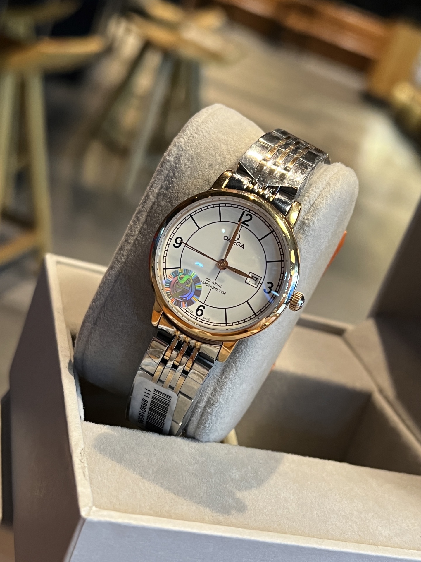 这款手表是AAAAA 1:1 质量 (非常棒). 使用了和原版一模一样的材料. 商标部分也保持了和欧米茄/Omega一样. 图片拍摄是实物手表拍摄, 您所收到的实物保证和我们图片一模一样.