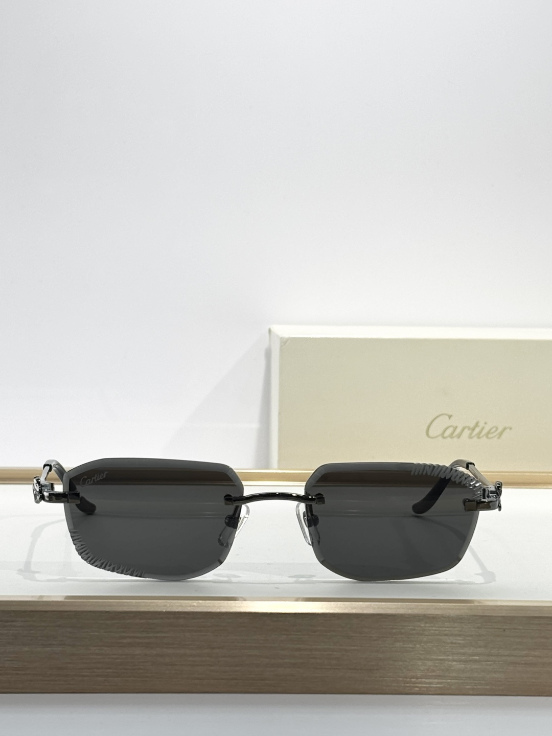 这款太阳眼镜是AAAAA 1:1 质量 (非常棒). 使用了和原版一模一样的材料. 商标部分也保持了和卡地亚/Cartier一样. 图片拍摄是实物太阳眼镜拍摄, 您所收到的实物保证和我们图片一模一样.