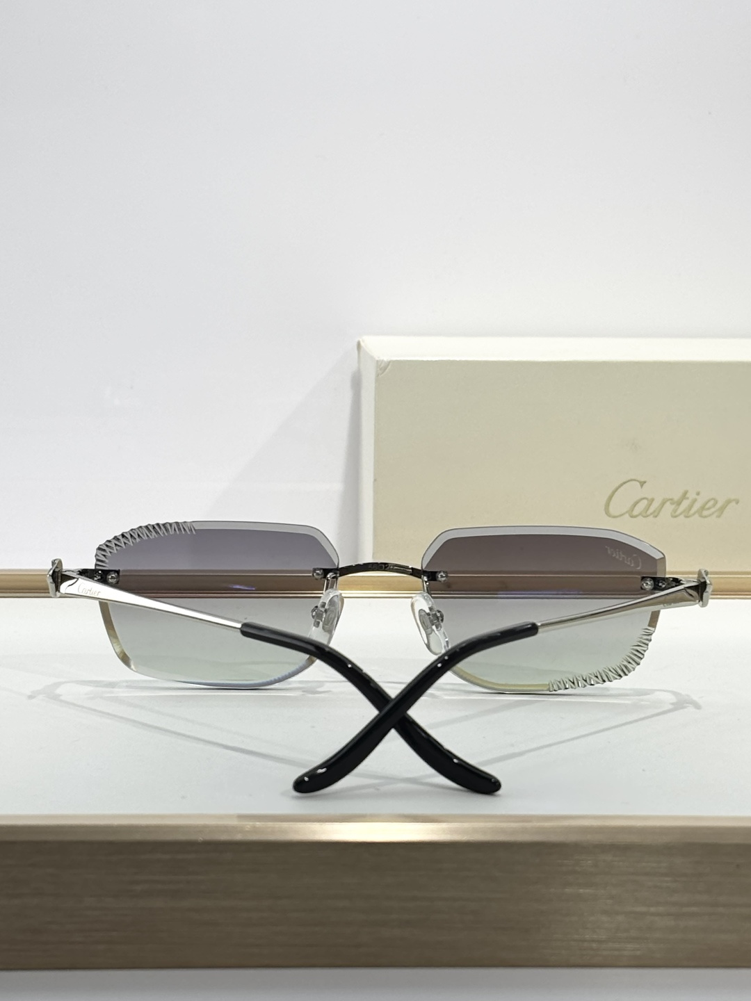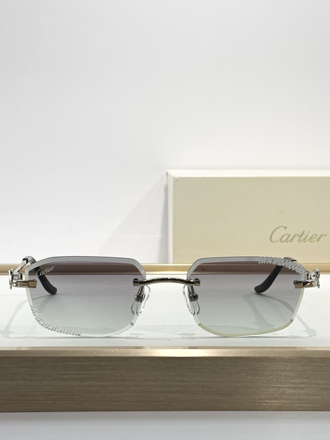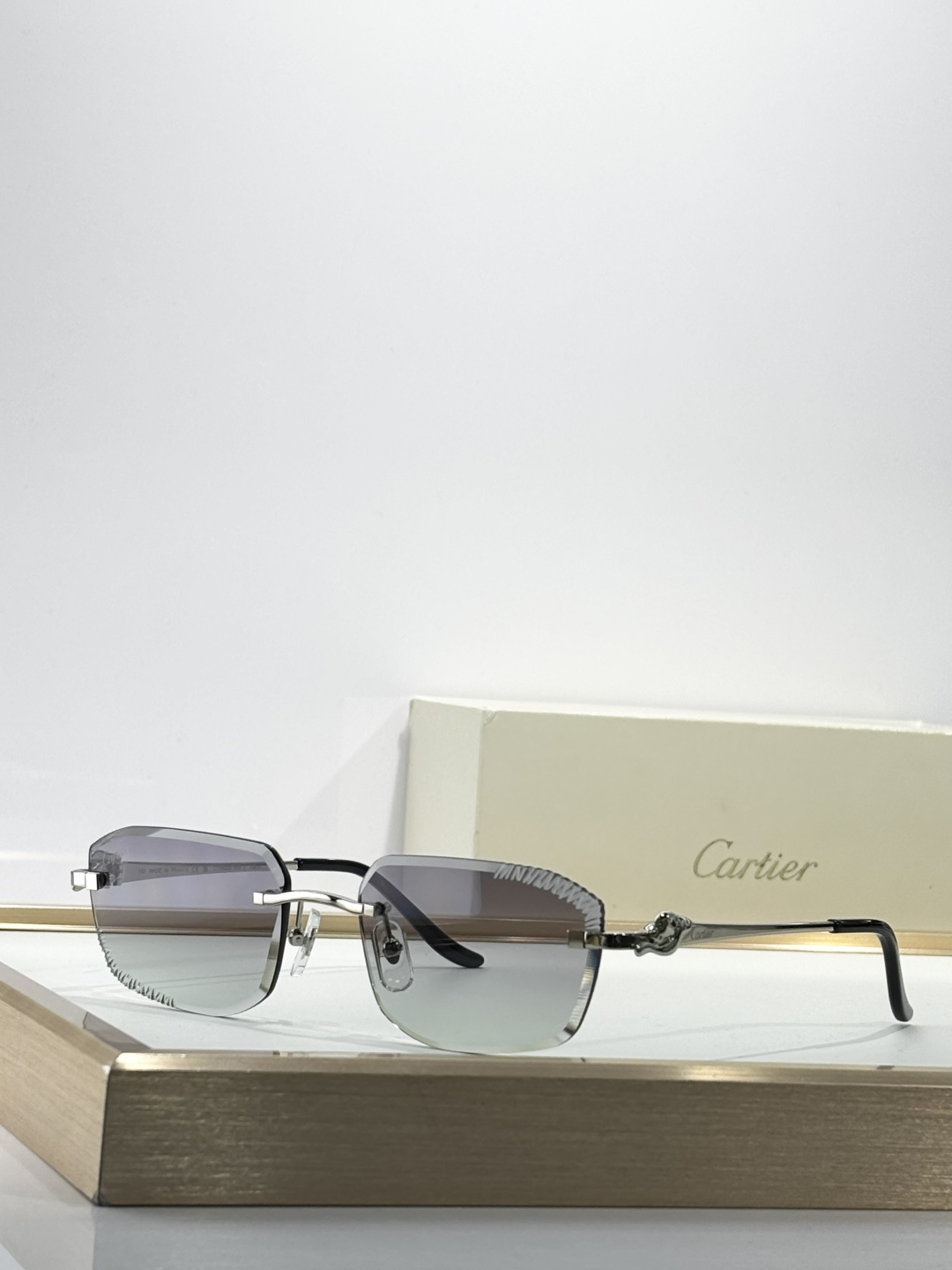 这款太阳眼镜是AAAAA 1:1 质量 (非常棒). 使用了和原版一模一样的材料. 商标部分也保持了和卡地亚/Cartier一样. 图片拍摄是实物太阳眼镜拍摄, 您所收到的实物保证和我们图片一模一样.