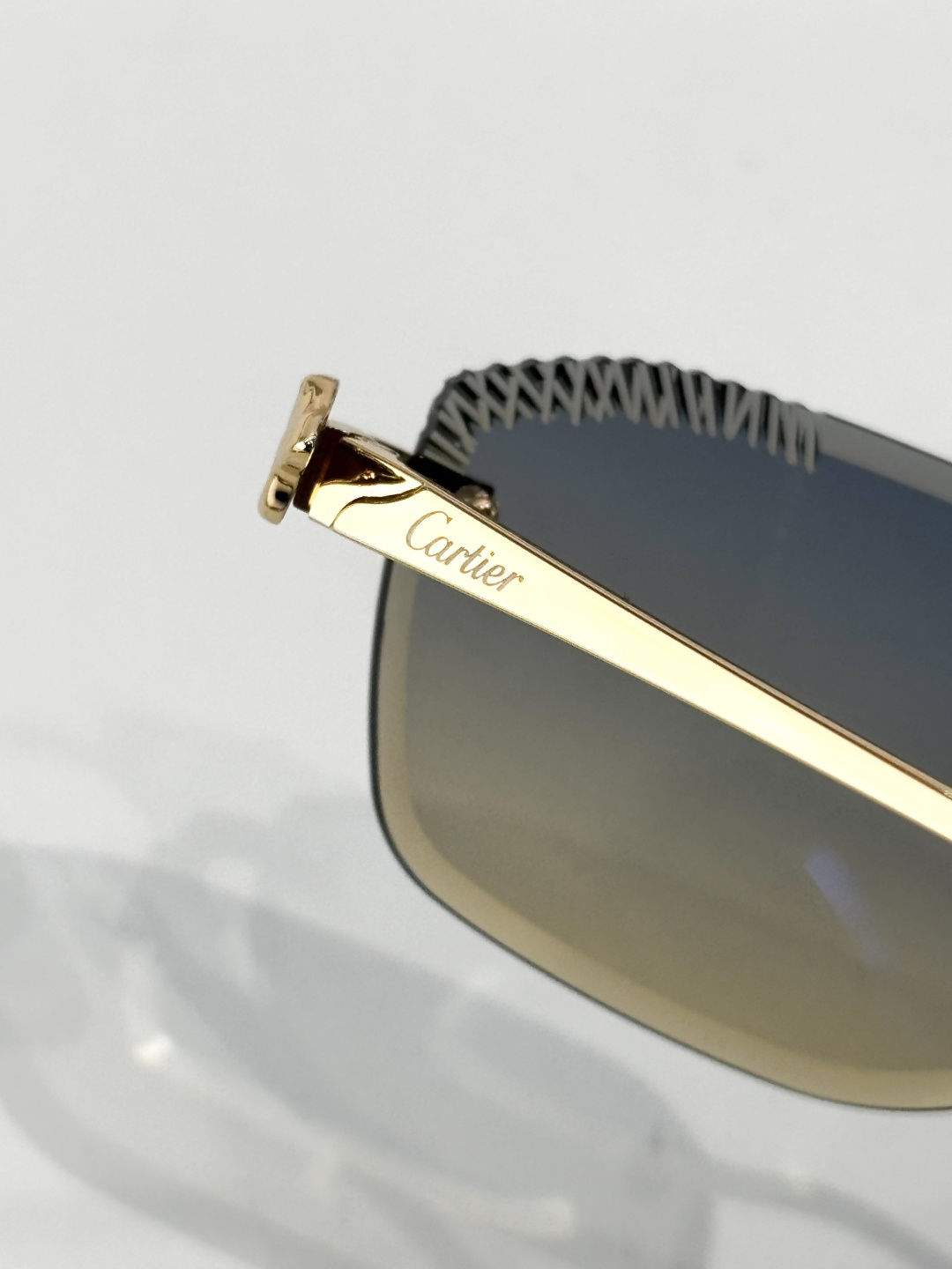 这款太阳眼镜是AAAAA 1:1 质量 (非常棒). 使用了和原版一模一样的材料. 商标部分也保持了和卡地亚/Cartier一样. 图片拍摄是实物太阳眼镜拍摄, 您所收到的实物保证和我们图片一模一样.