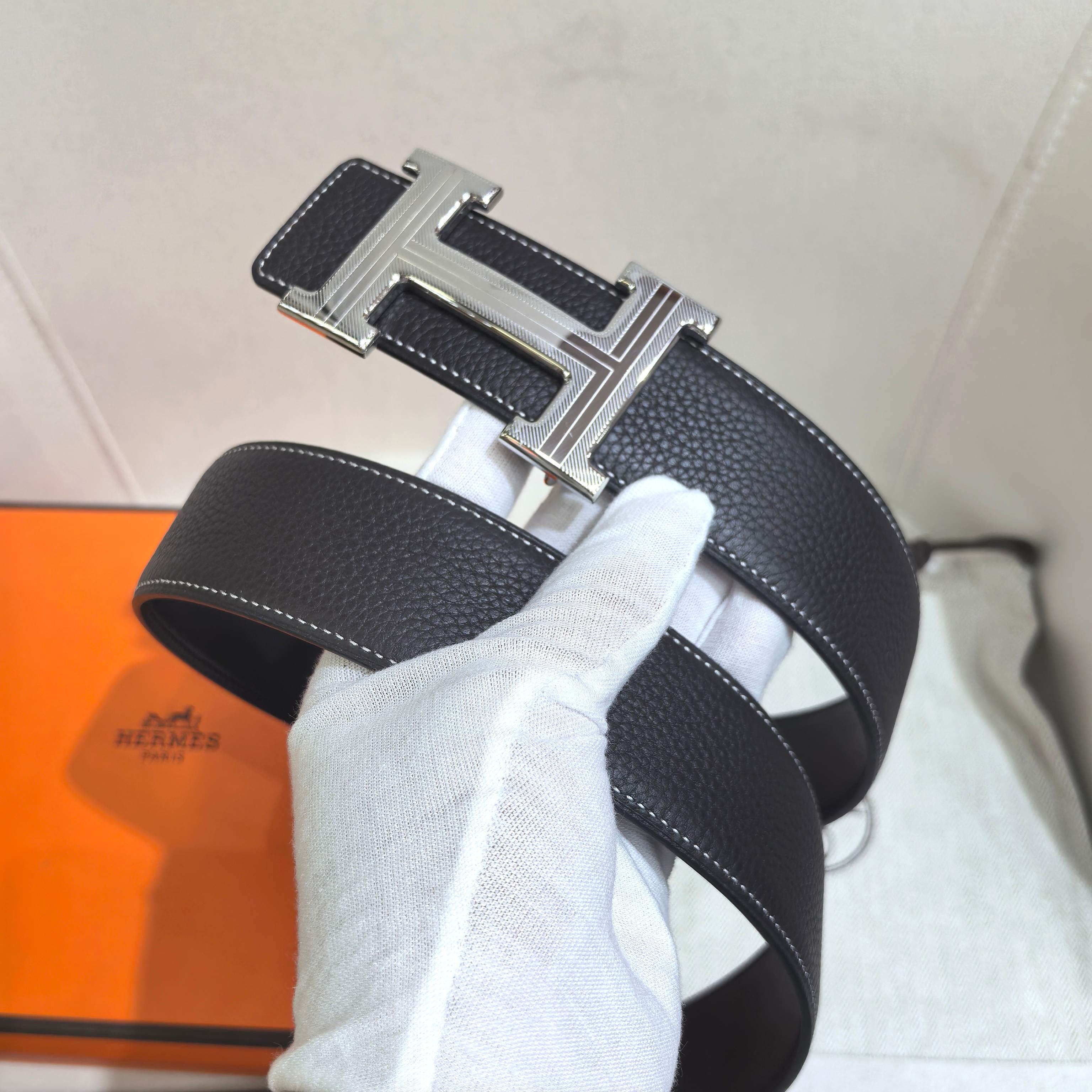 这款皮带是AAAAA 1:1 质量 (非常棒). 使用了和原版一模一样的材料. 商标部分也保持了和爱马仕/Hermes一样. 图片拍摄是实物皮带拍摄, 您所收到的实物保证和我们图片一模一样.