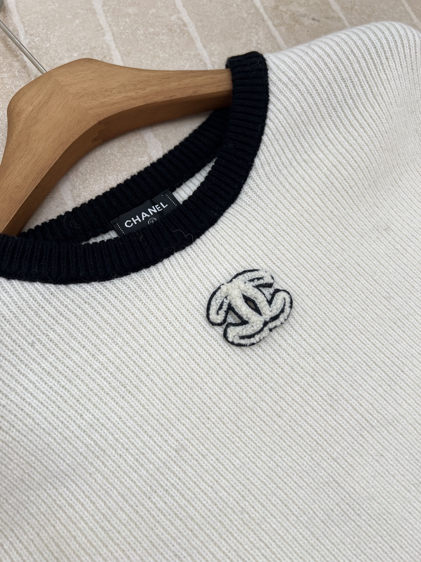 这款衣服是AAAAA 1:1 质量 (非常棒). 使用了和原版一模一样的材料. 商标部分也保持了和香奈儿/Chanel一样. 图片拍摄是实物衣服拍摄, 您所收到的实物保证和我们图片一模一样.