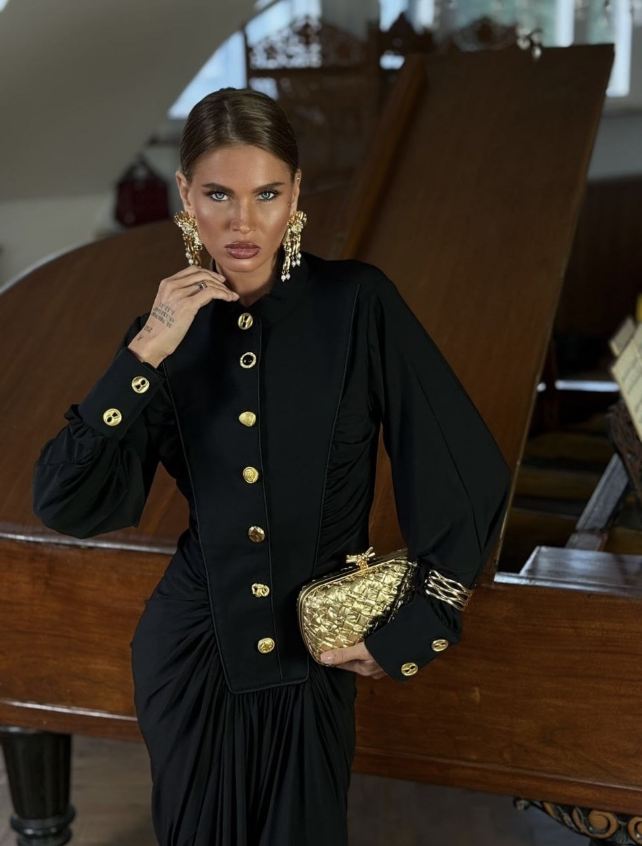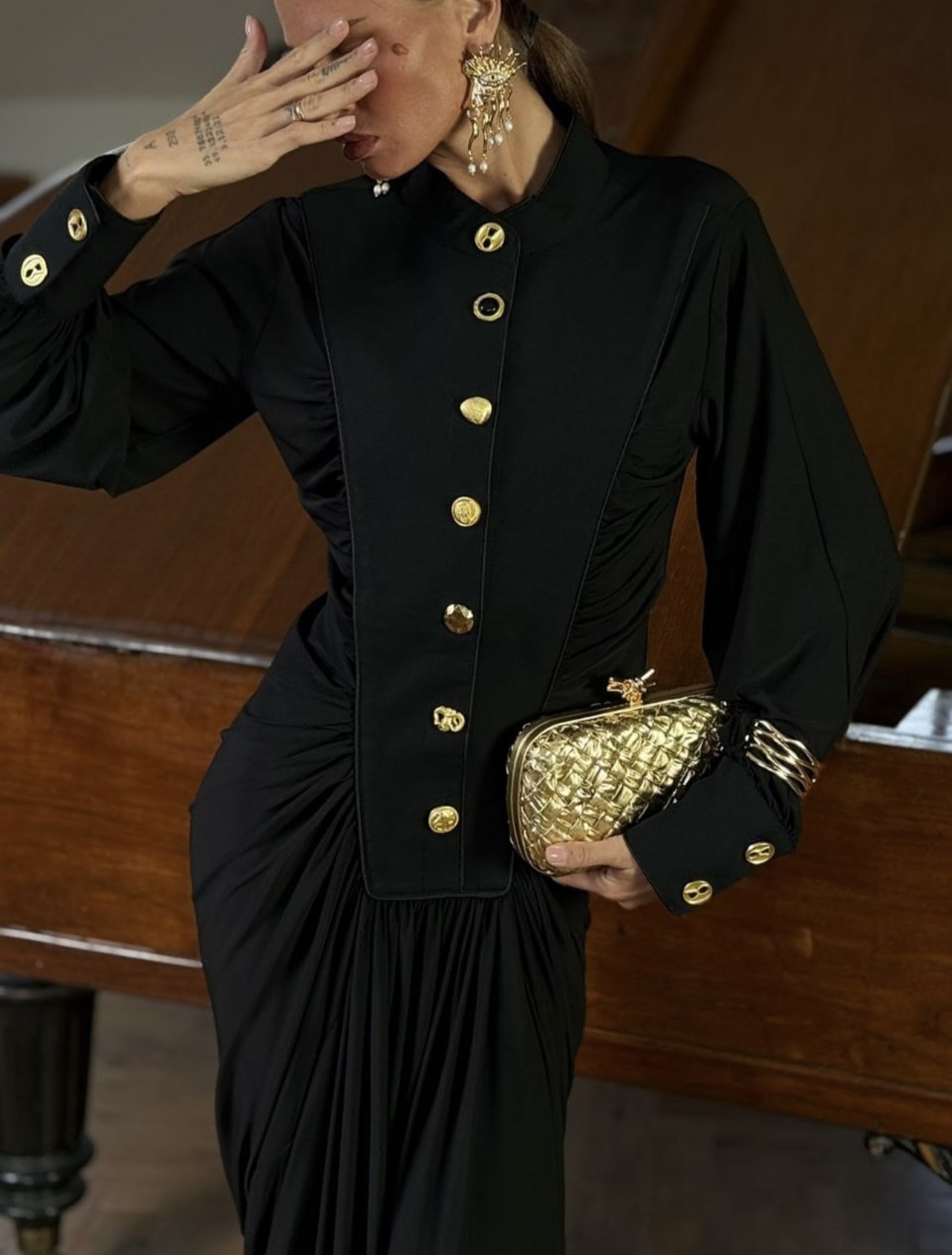 这款衣服是AAAAA 1:1 质量 (非常棒). 使用了和原版一模一样的材料. 商标部分也保持了和Schiaparelli一样. 图片拍摄是实物衣服拍摄, 您所收到的实物保证和我们图片一模一样.