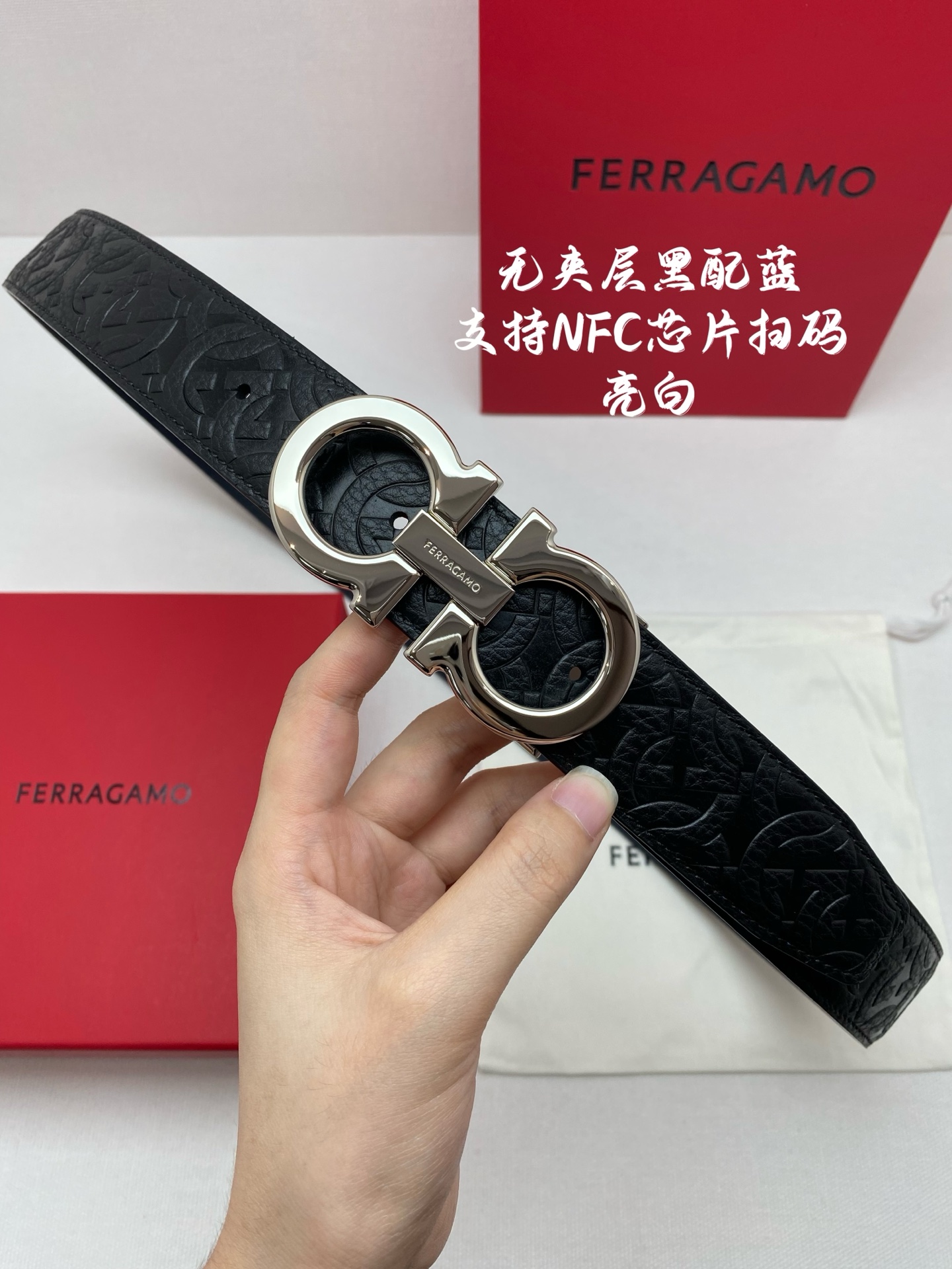 这款皮带是AAAAA 1:1 质量 (非常棒). 使用了和原版一模一样的材料. 商标部分也保持了和菲拉格慕/Salvatore Ferragamo一样. 图片拍摄是实物皮带拍摄, 您所收到的实物保证和我们图片一模一样.
