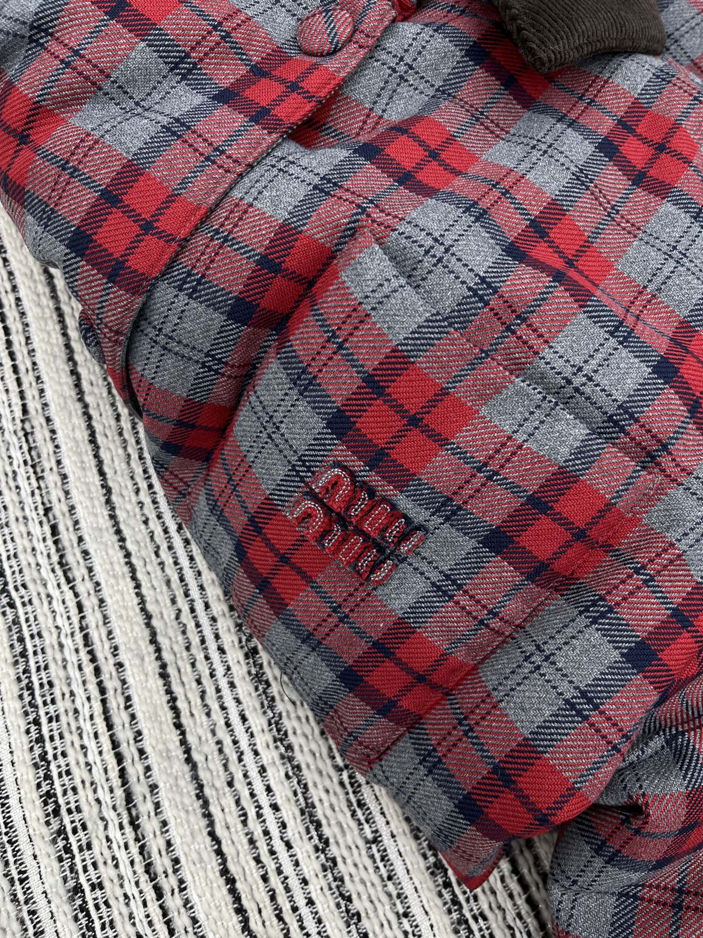这款衣服是AAAAA 1:1 质量 (非常棒). 使用了和原版一模一样的材料. 商标部分也保持了和缪缪/Miu Miu一样. 图片拍摄是实物衣服拍摄, 您所收到的实物保证和我们图片一模一样.