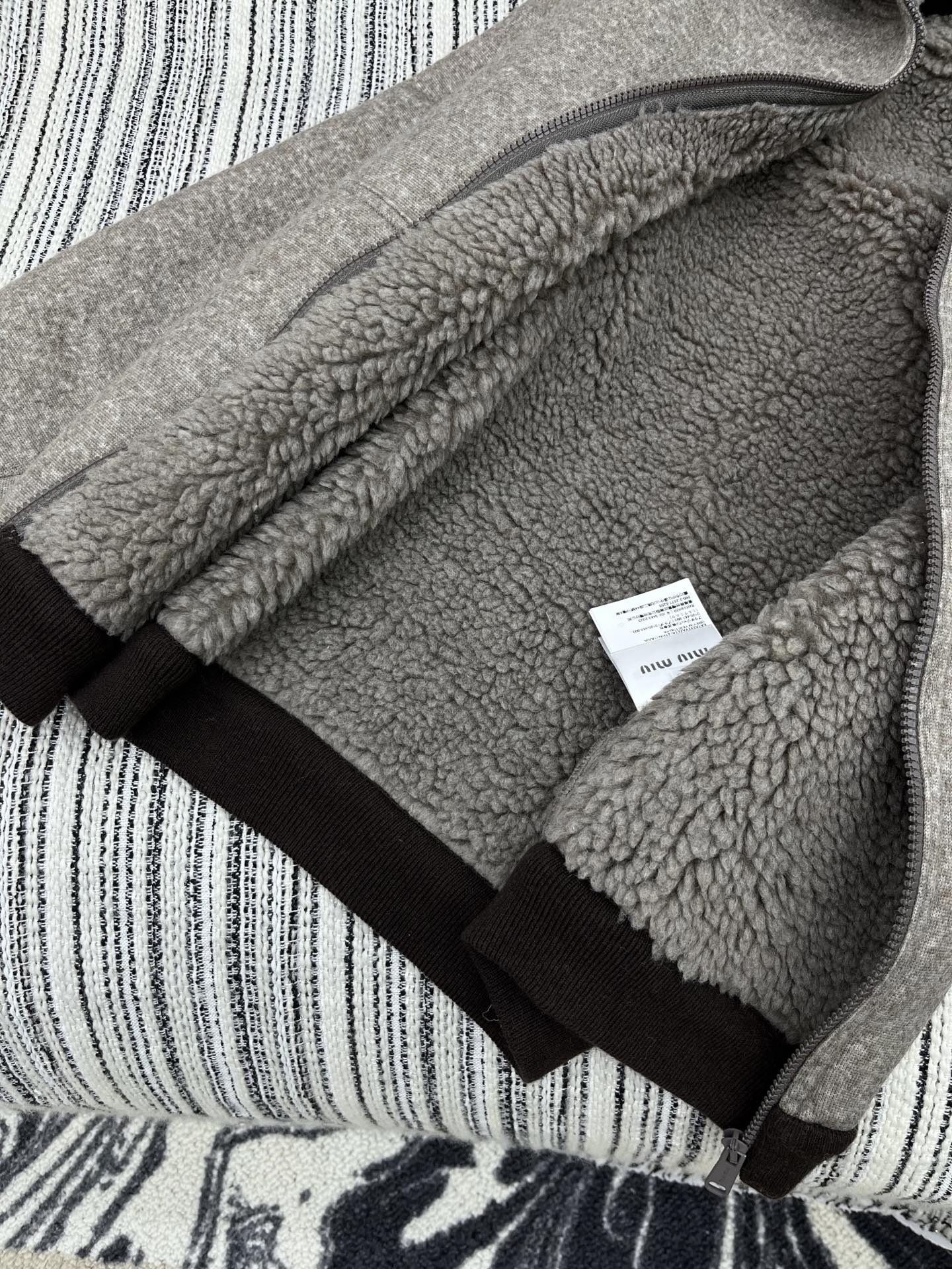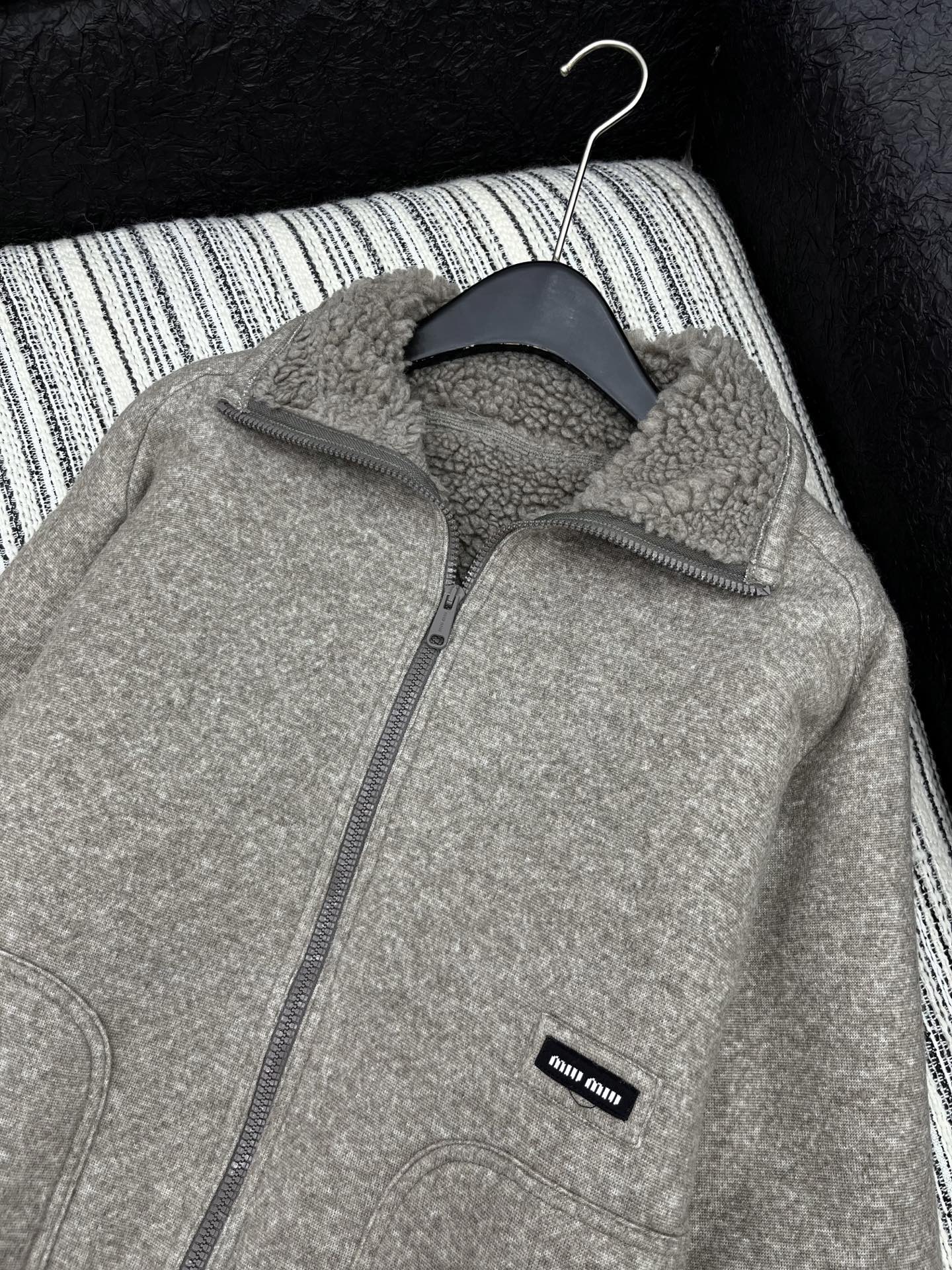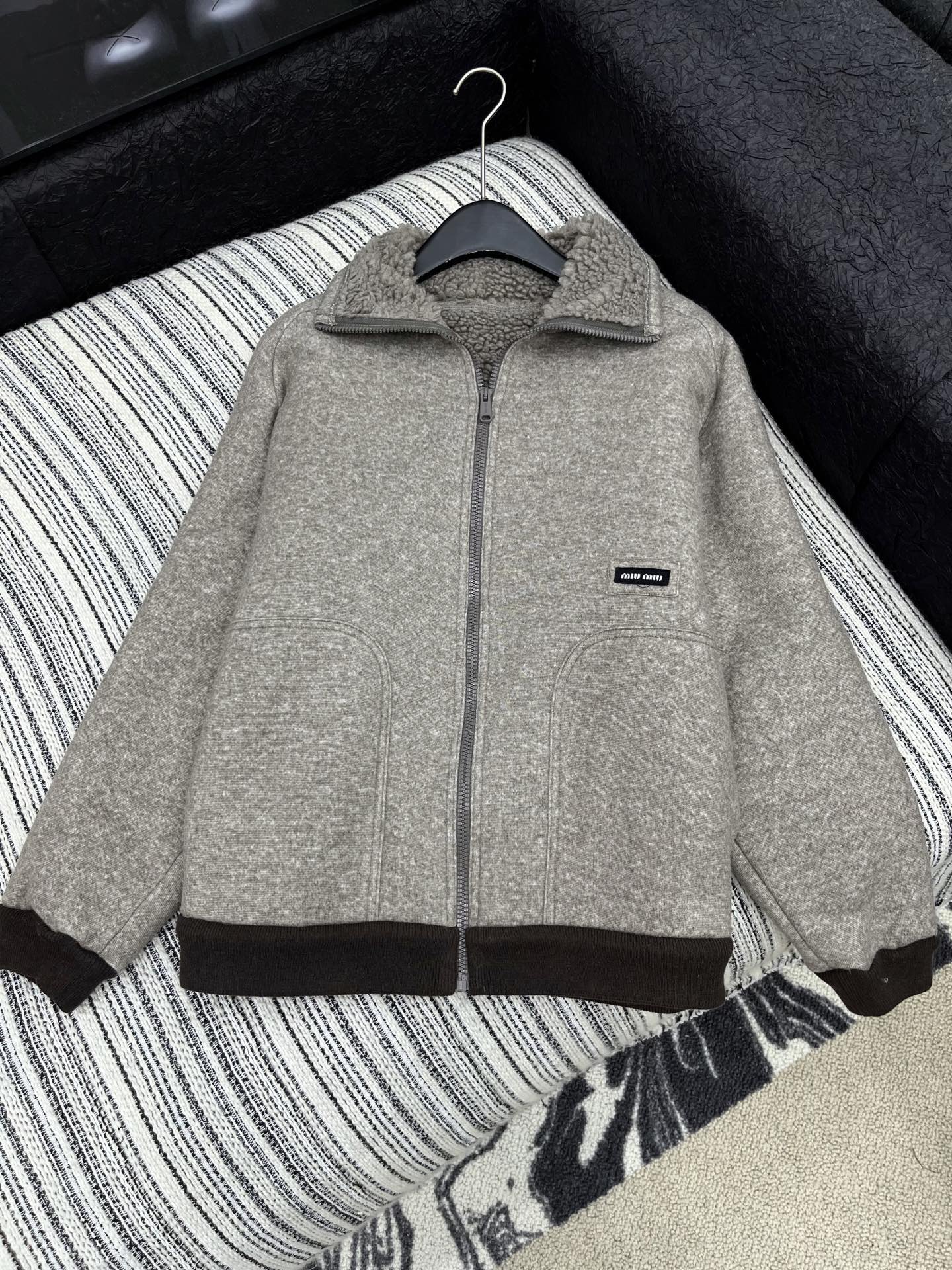这款衣服是AAAAA 1:1 质量 (非常棒). 使用了和原版一模一样的材料. 商标部分也保持了和缪缪/Miu Miu一样. 图片拍摄是实物衣服拍摄, 您所收到的实物保证和我们图片一模一样.