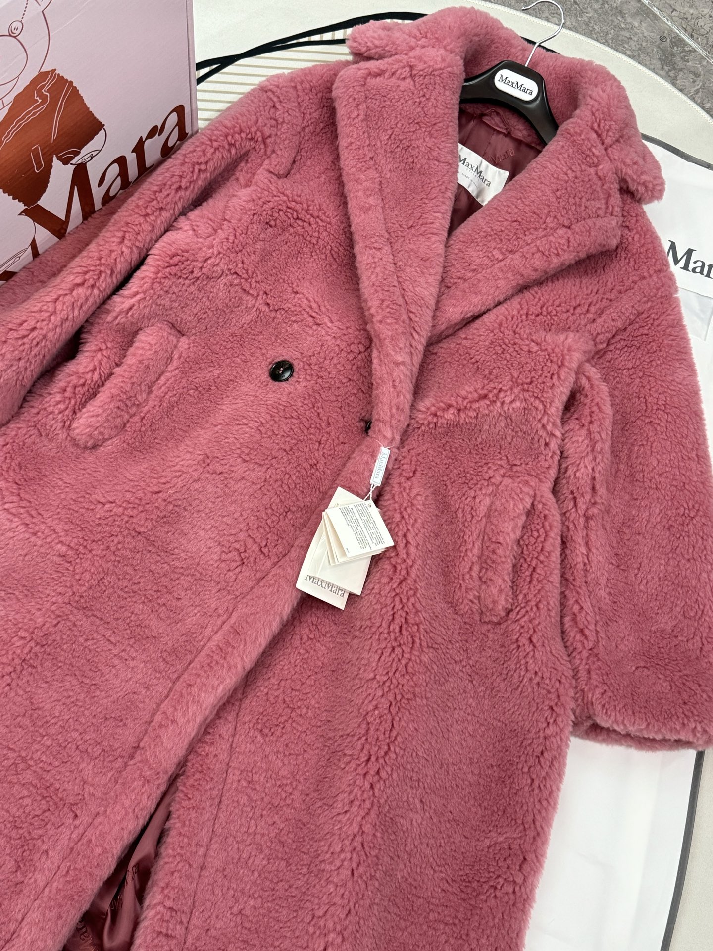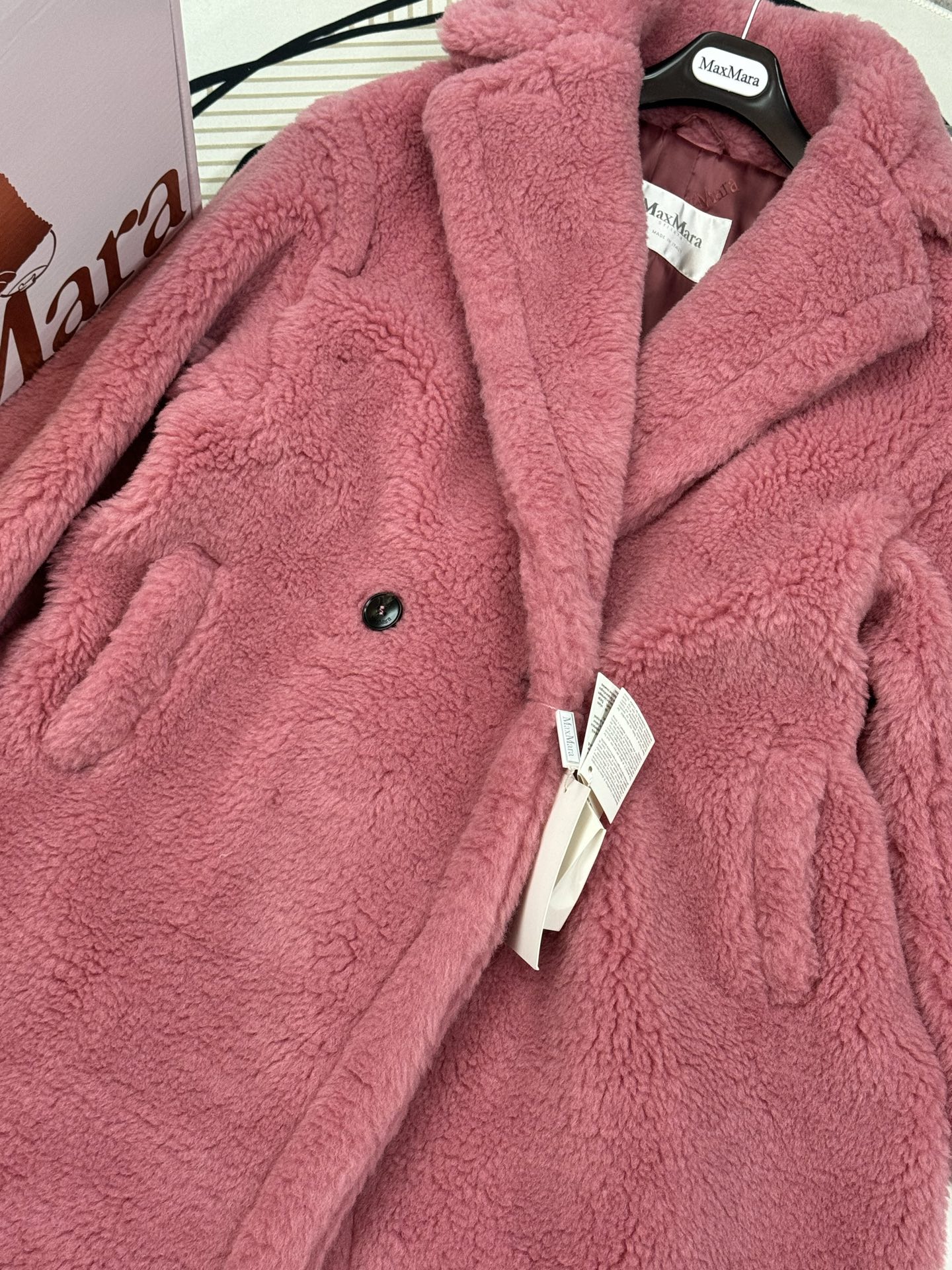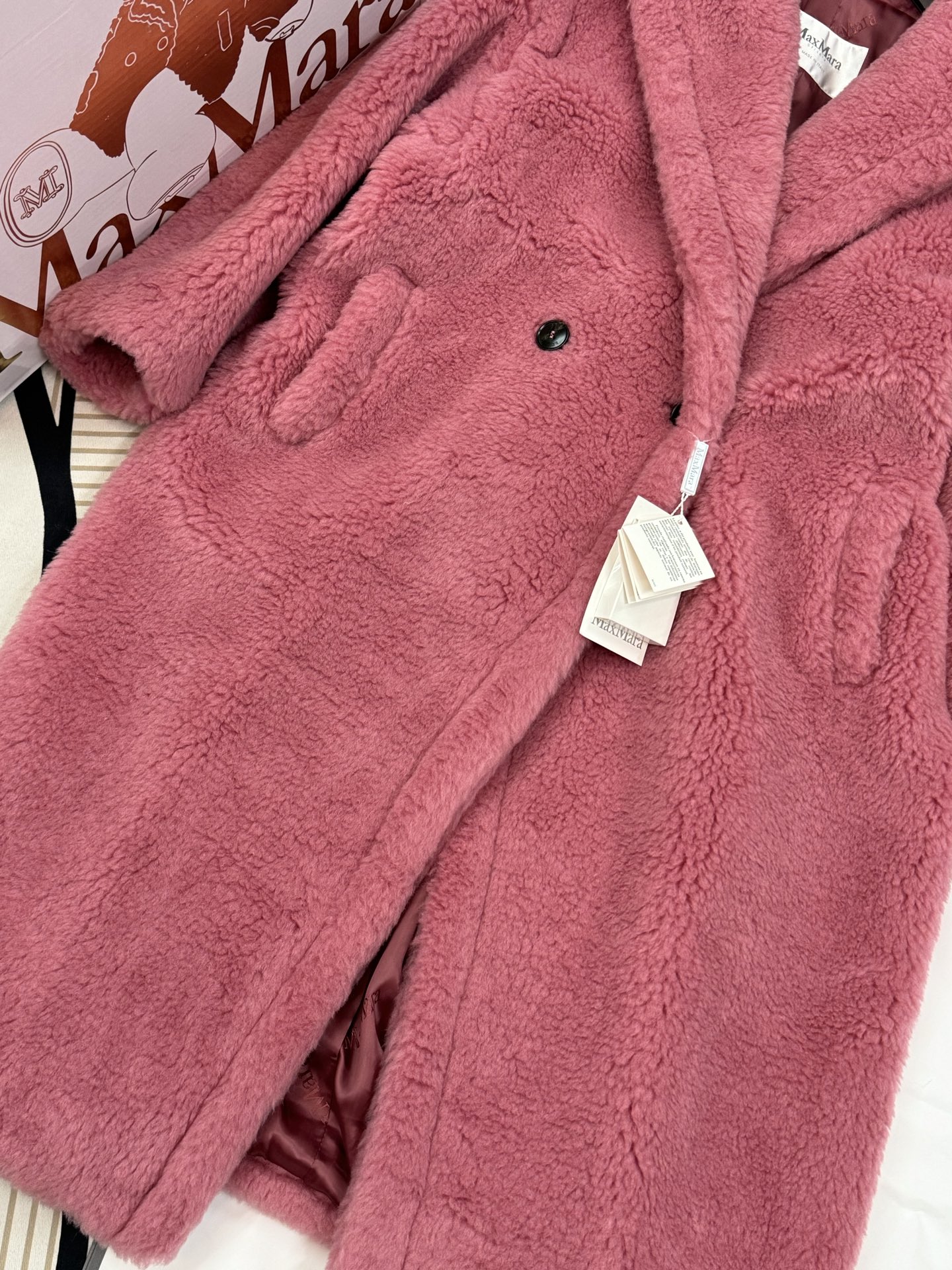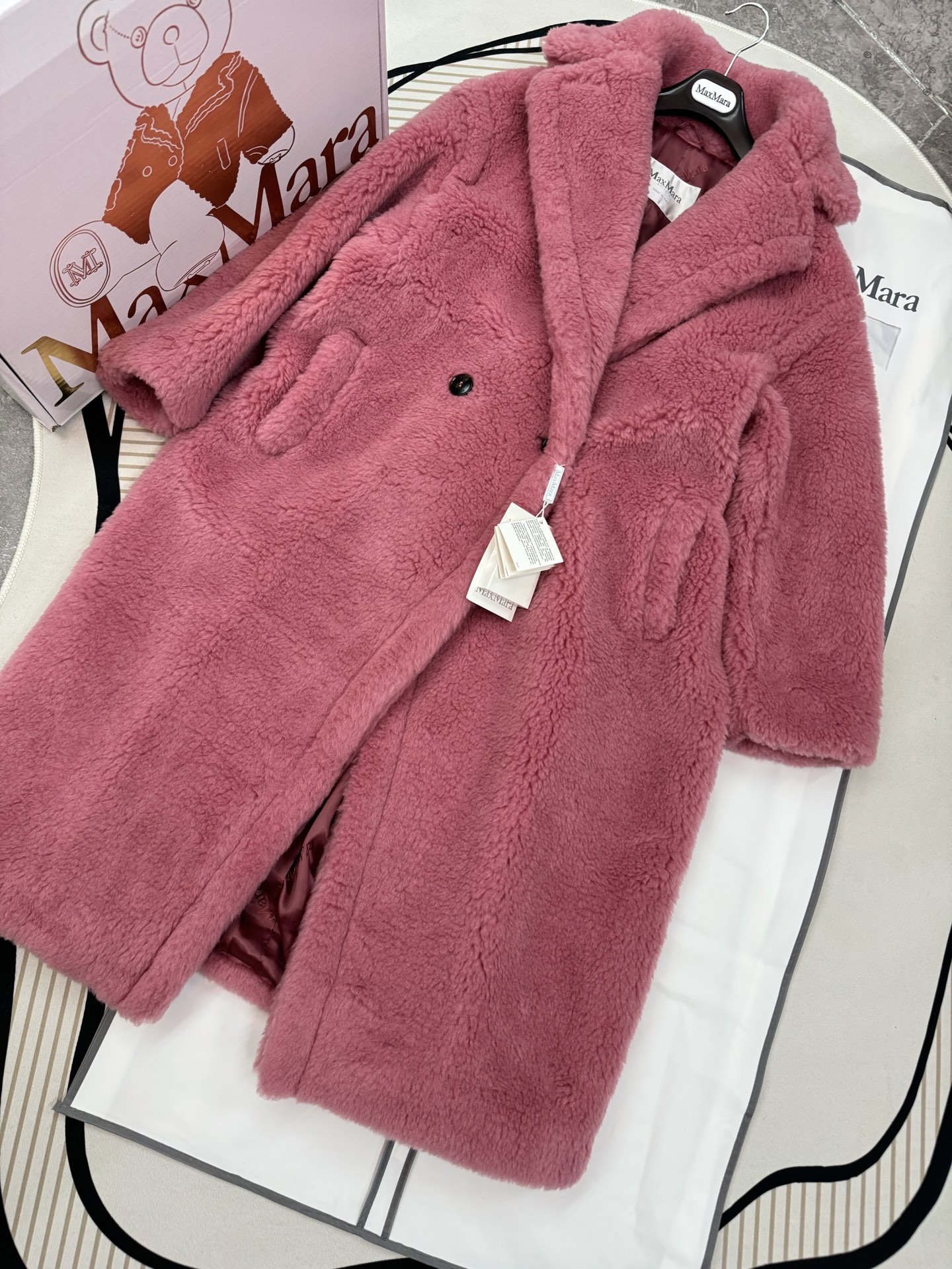 这款衣服是AAAAA 1:1 质量 (非常棒). 使用了和原版一模一样的材料. 商标部分也保持了和Max Mara一样. 图片拍摄是实物衣服拍摄, 您所收到的实物保证和我们图片一模一样.