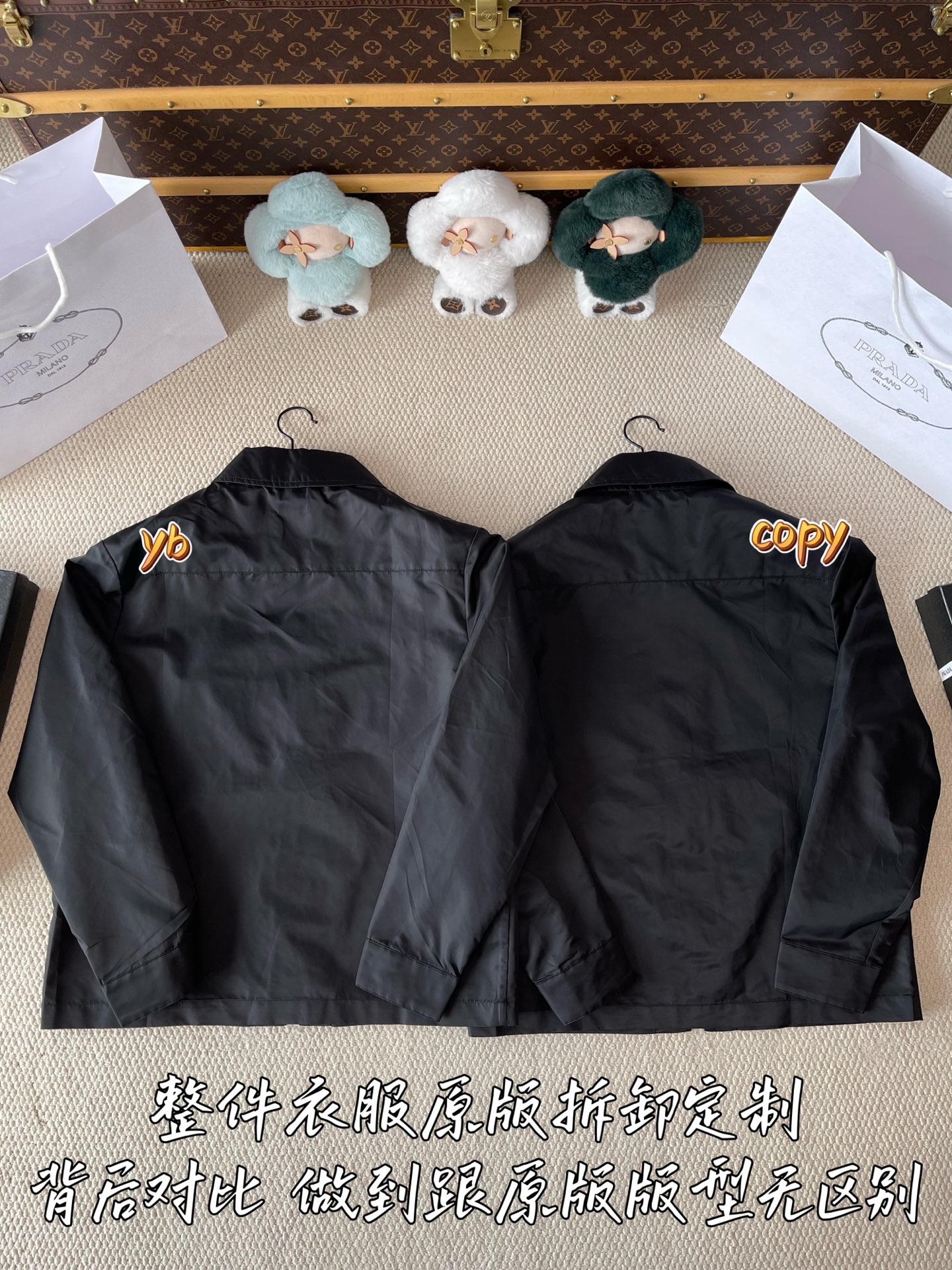 这款衣服是AAAAA 1:1 质量 (非常棒). 使用了和原版一模一样的材料. 商标部分也保持了和普拉达/Prada一样. 图片拍摄是实物衣服拍摄, 您所收到的实物保证和我们图片一模一样.