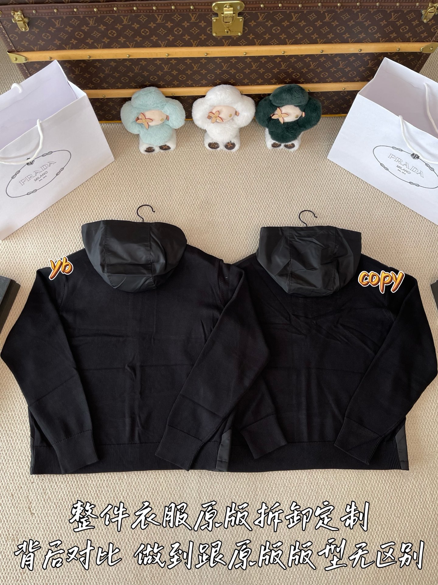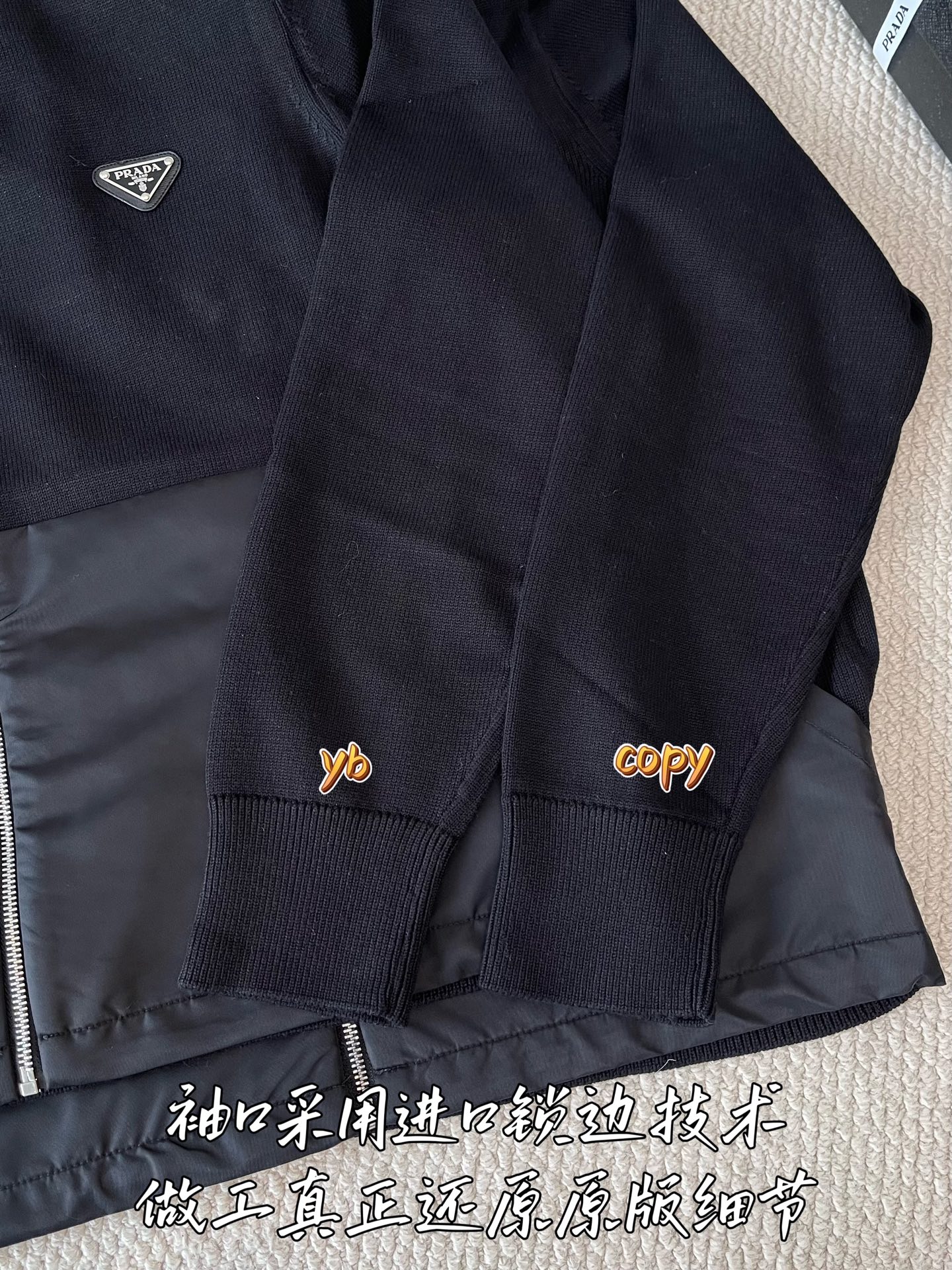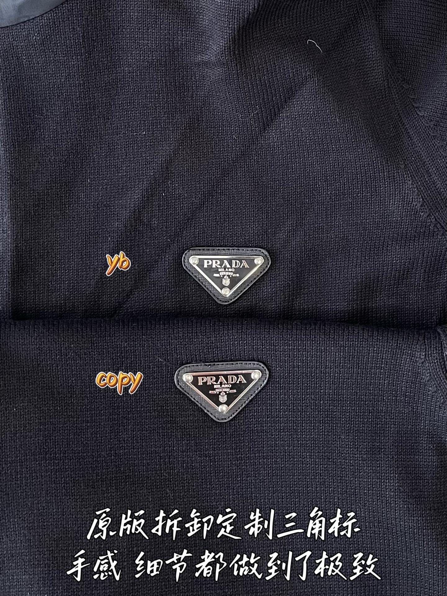 这款衣服是AAAAA 1:1 质量 (非常棒). 使用了和原版一模一样的材料. 商标部分也保持了和普拉达/Prada一样. 图片拍摄是实物衣服拍摄, 您所收到的实物保证和我们图片一模一样.