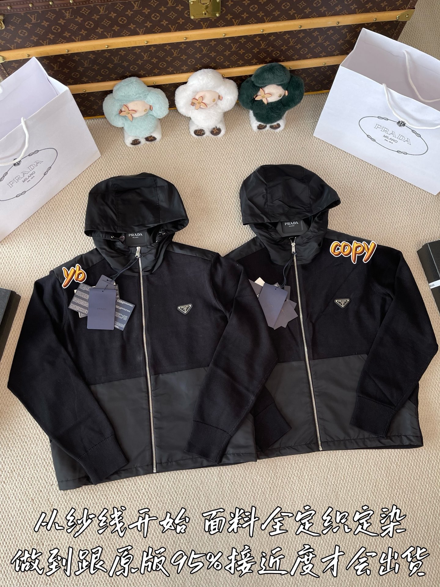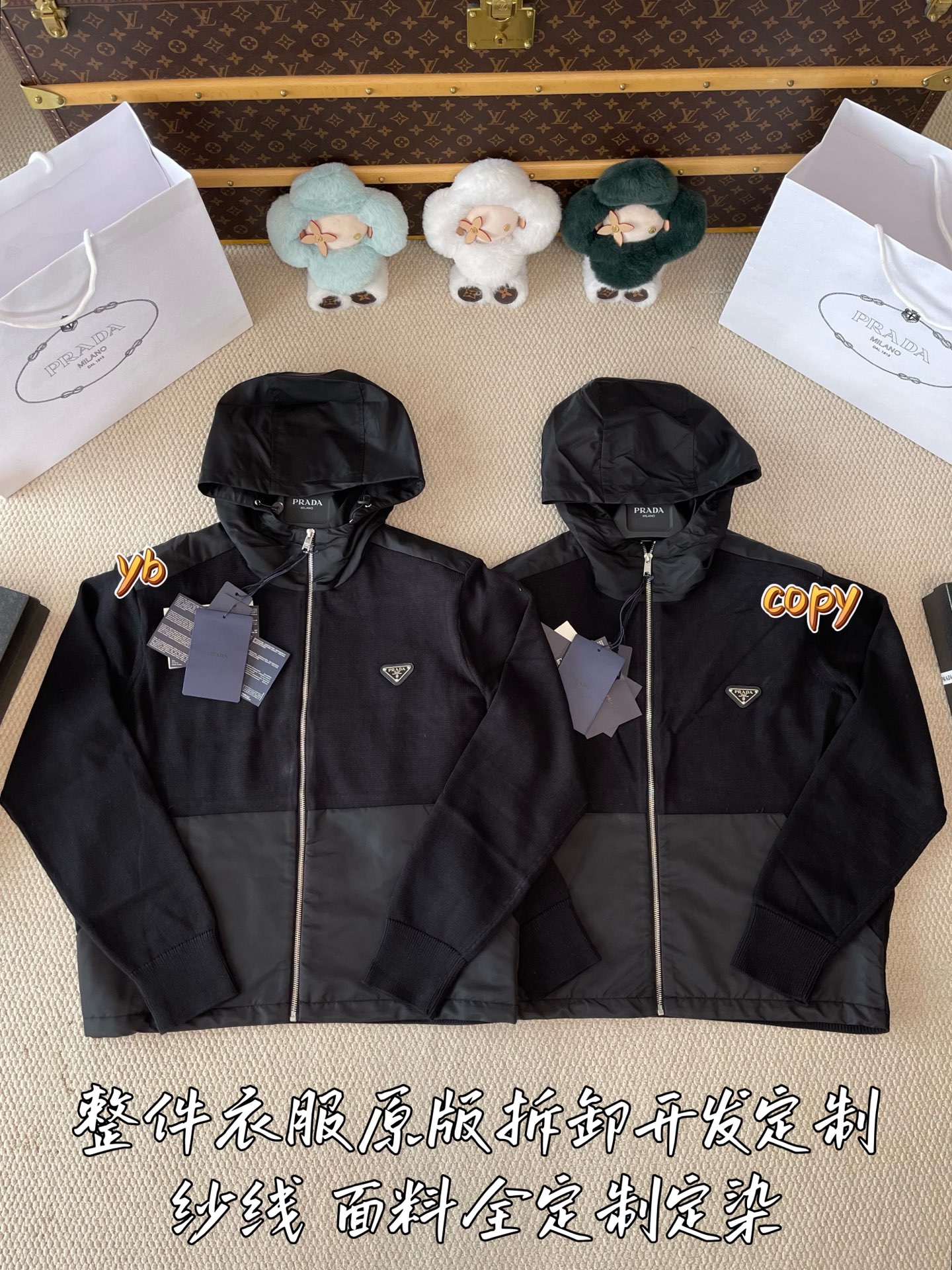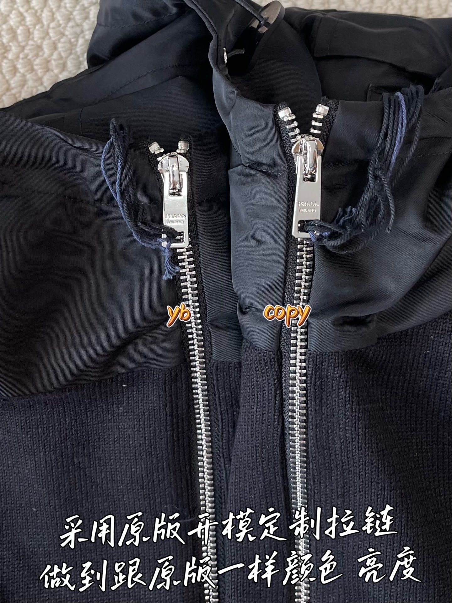 这款衣服是AAAAA 1:1 质量 (非常棒). 使用了和原版一模一样的材料. 商标部分也保持了和普拉达/Prada一样. 图片拍摄是实物衣服拍摄, 您所收到的实物保证和我们图片一模一样.