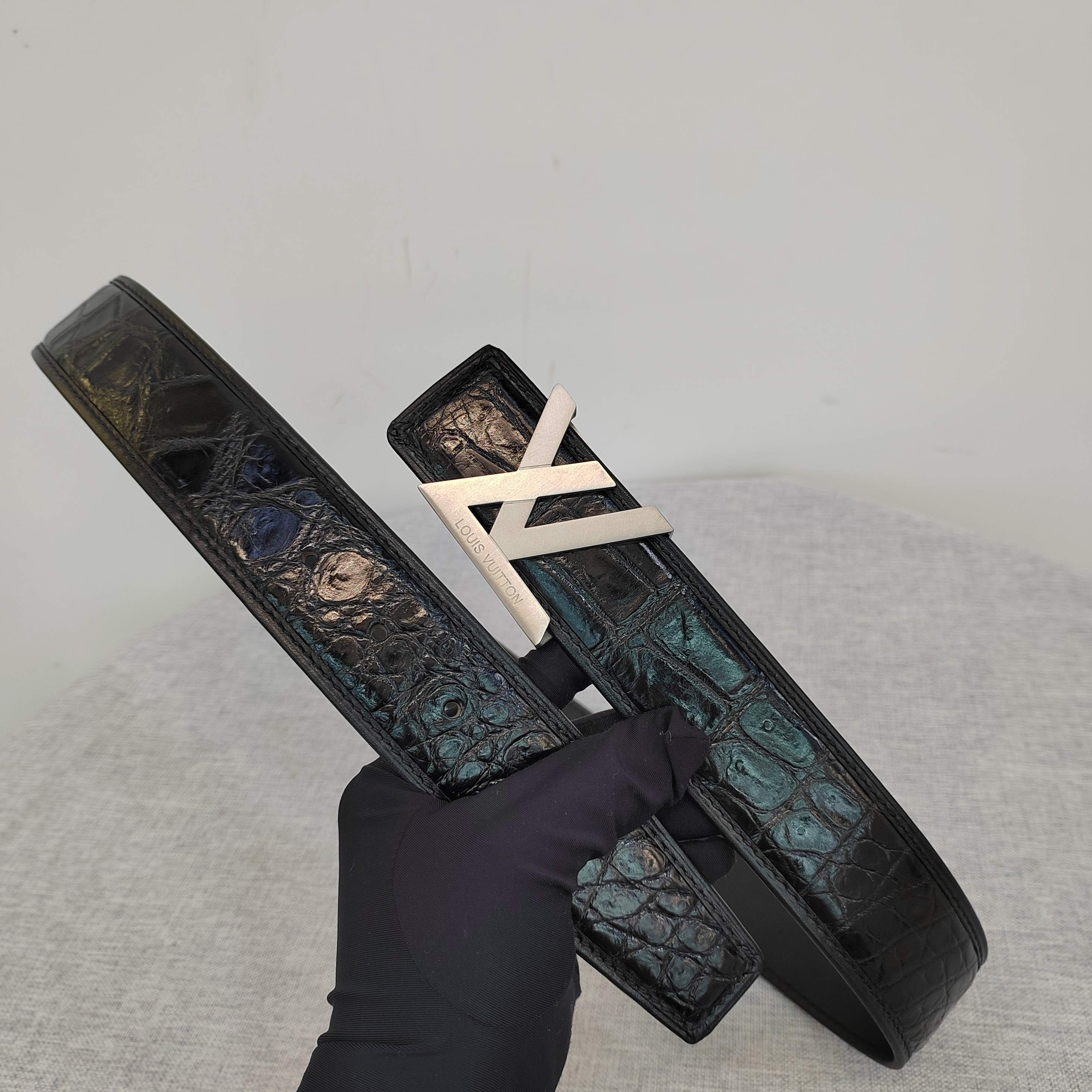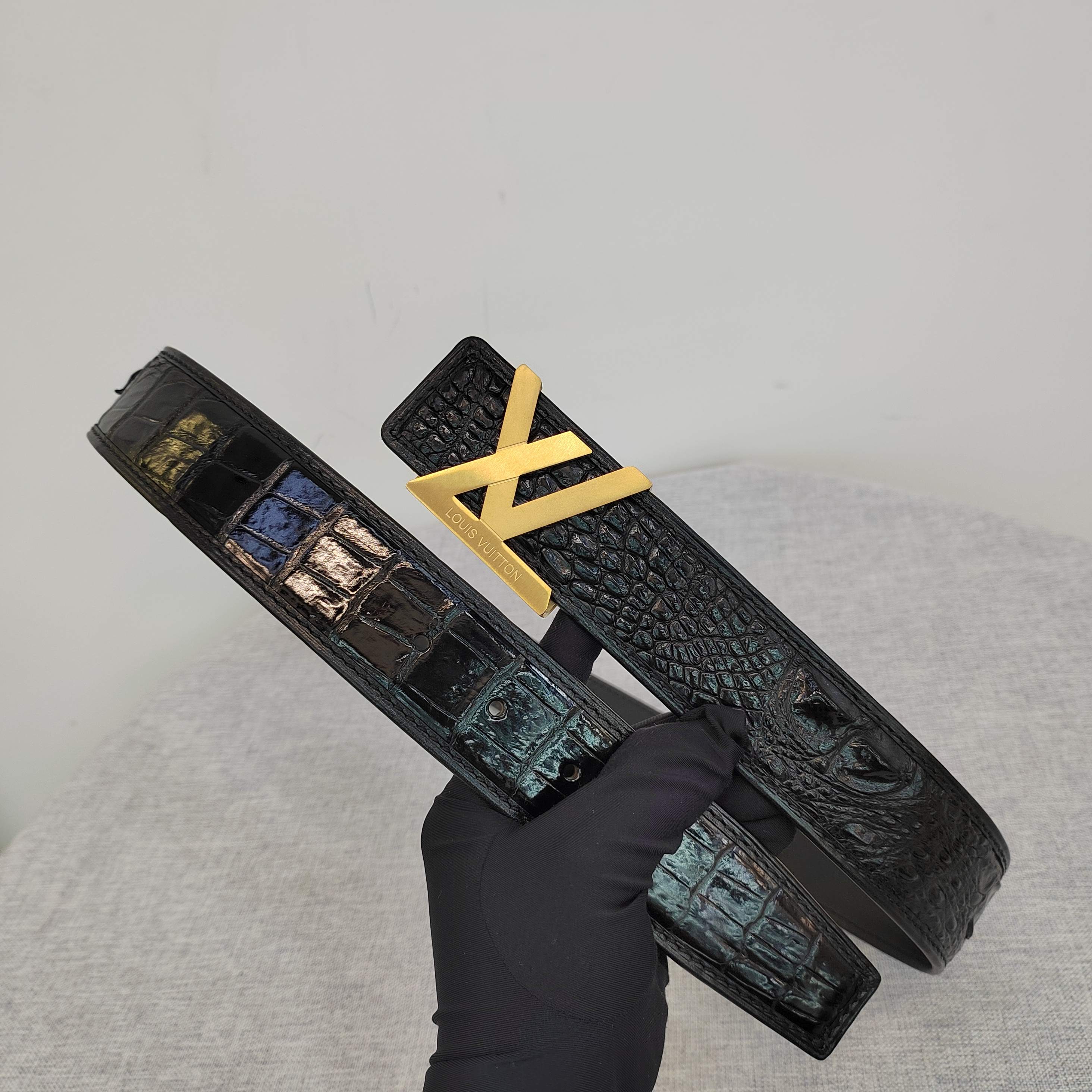这款皮带是AAAAA 1:1 质量 (非常棒). 使用了和原版一模一样的材料. 商标部分也保持了和路易威登/Louis Vuitton一样. 图片拍摄是实物皮带拍摄, 您所收到的实物保证和我们图片一模一样.