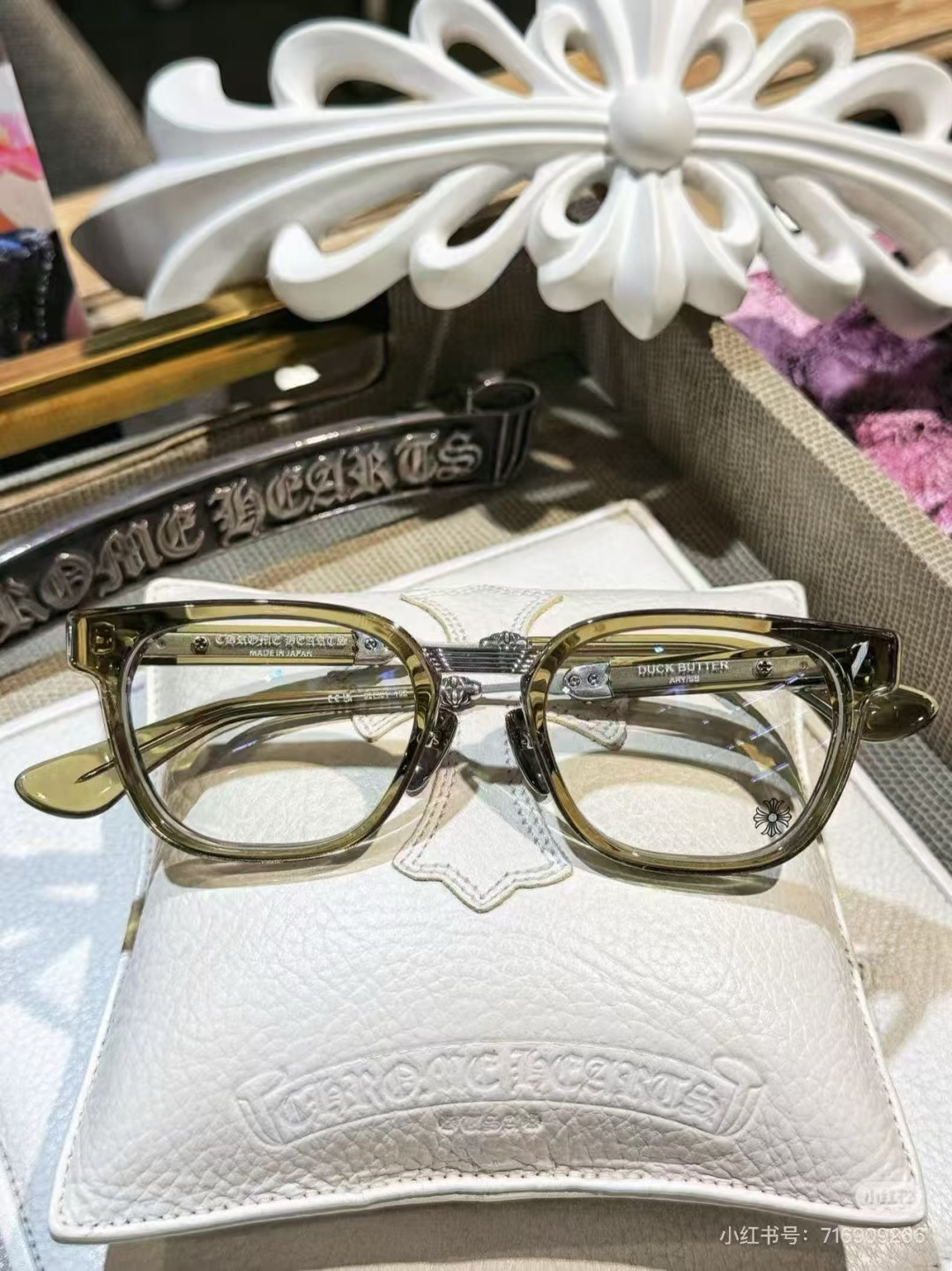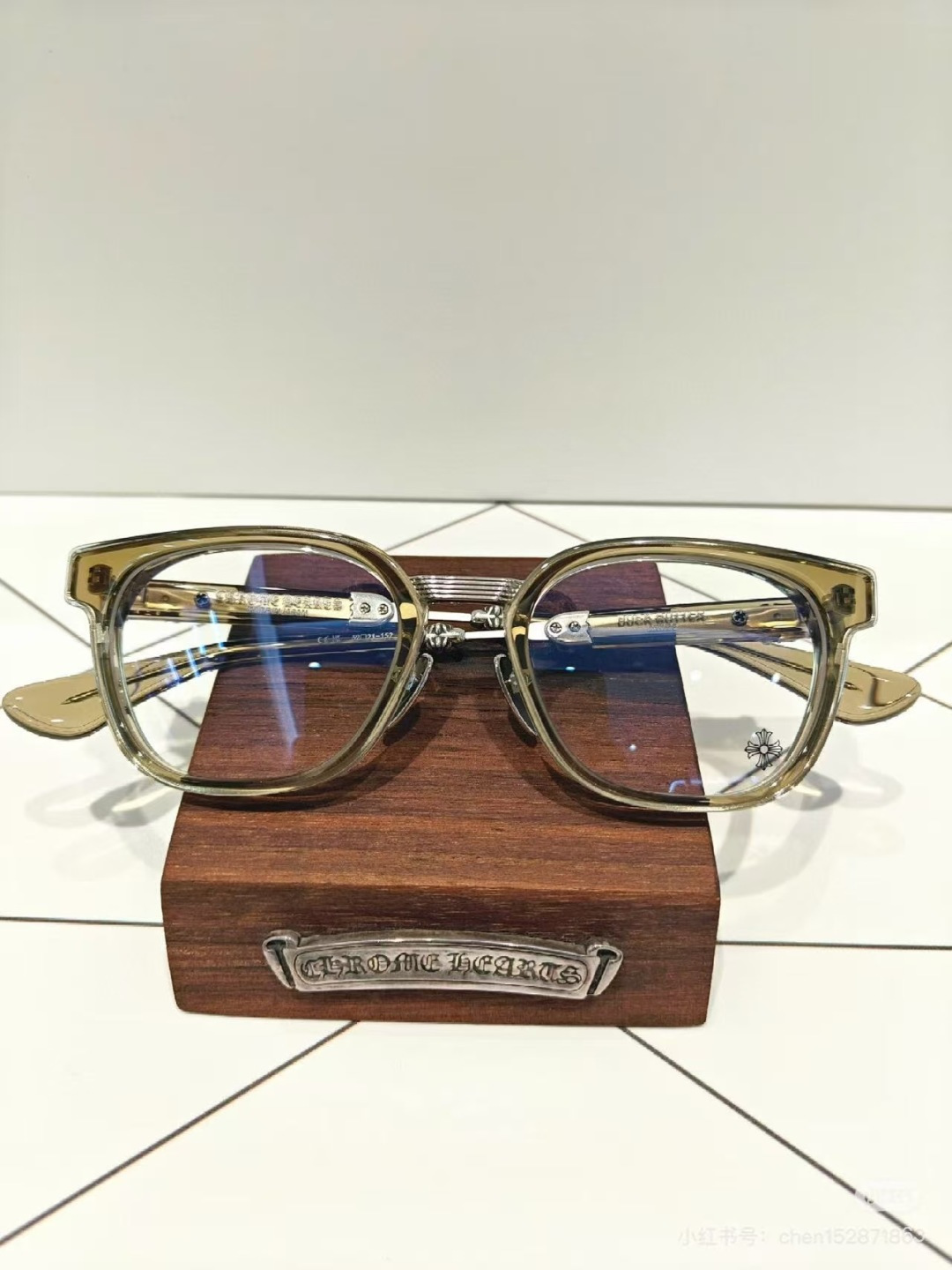 这款太阳眼镜是AAAAA 1:1 质量 (非常棒). 使用了和原版一模一样的材料. 商标部分也保持了和克罗心/Chrome Hearts一样. 图片拍摄是实物太阳眼镜拍摄, 您所收到的实物保证和我们图片一模一样.