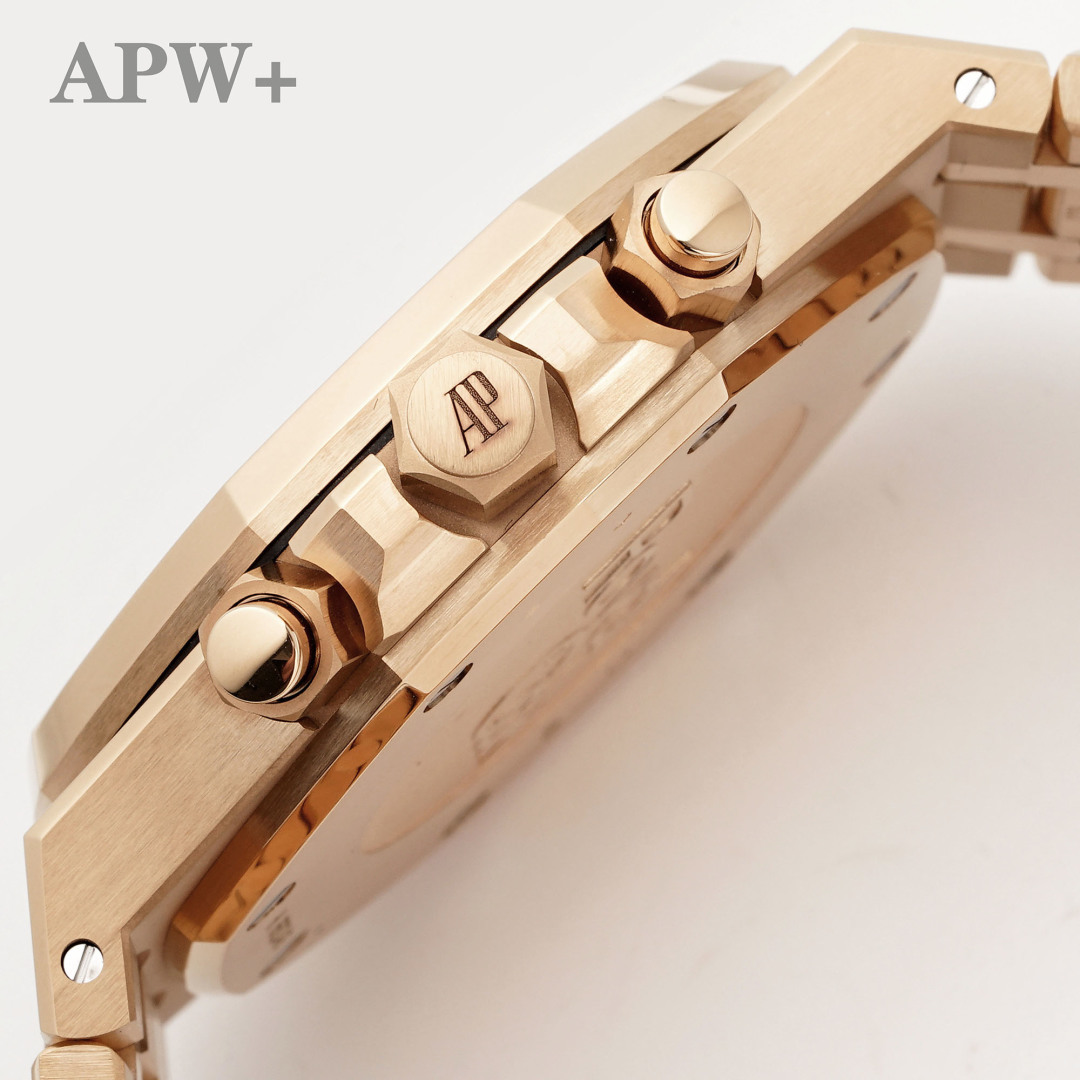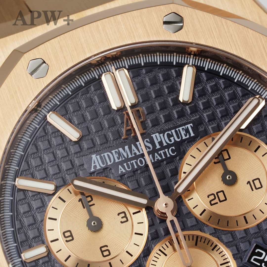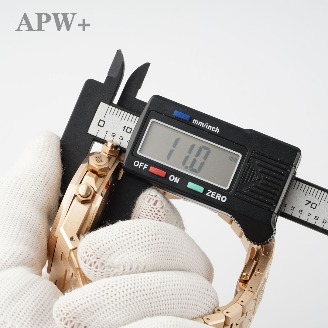 这款手表是AAAAA 1:1 质量 (非常棒). 使用了和原版一模一样的材料. 商标部分也保持了和爱彼/Audemars Piguet一样. 图片拍摄是实物手表拍摄, 您所收到的实物保证和我们图片一模一样.